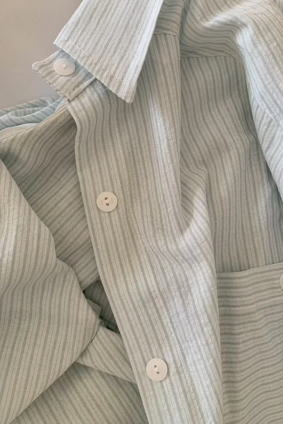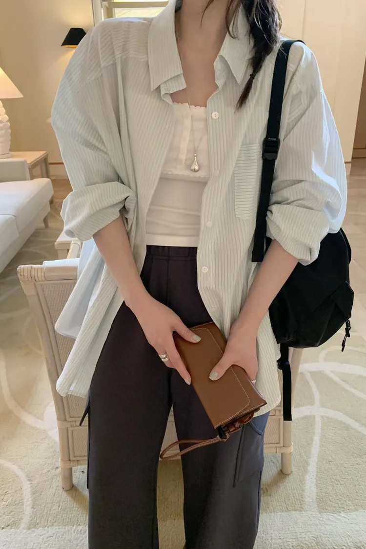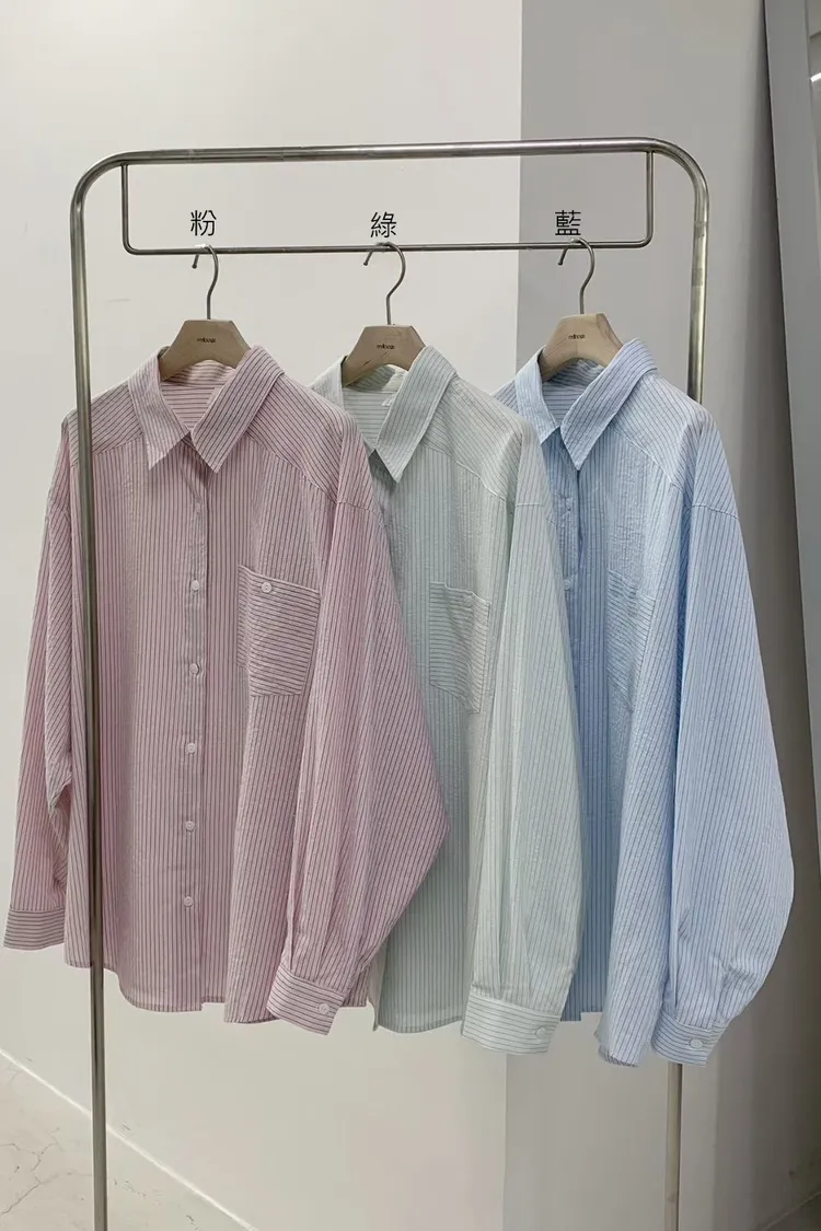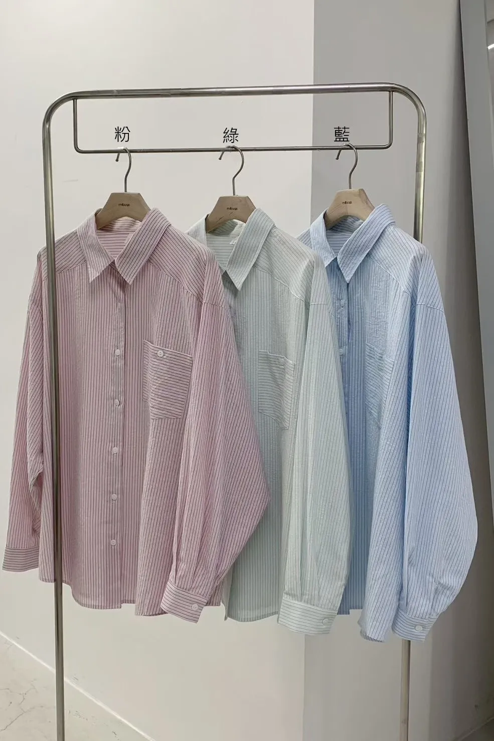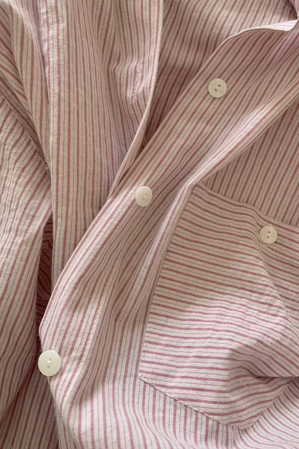 棉+聚酯 舒適透氣 胸前單口袋 直條紋 寬鬆舒適 可襯衫可外套