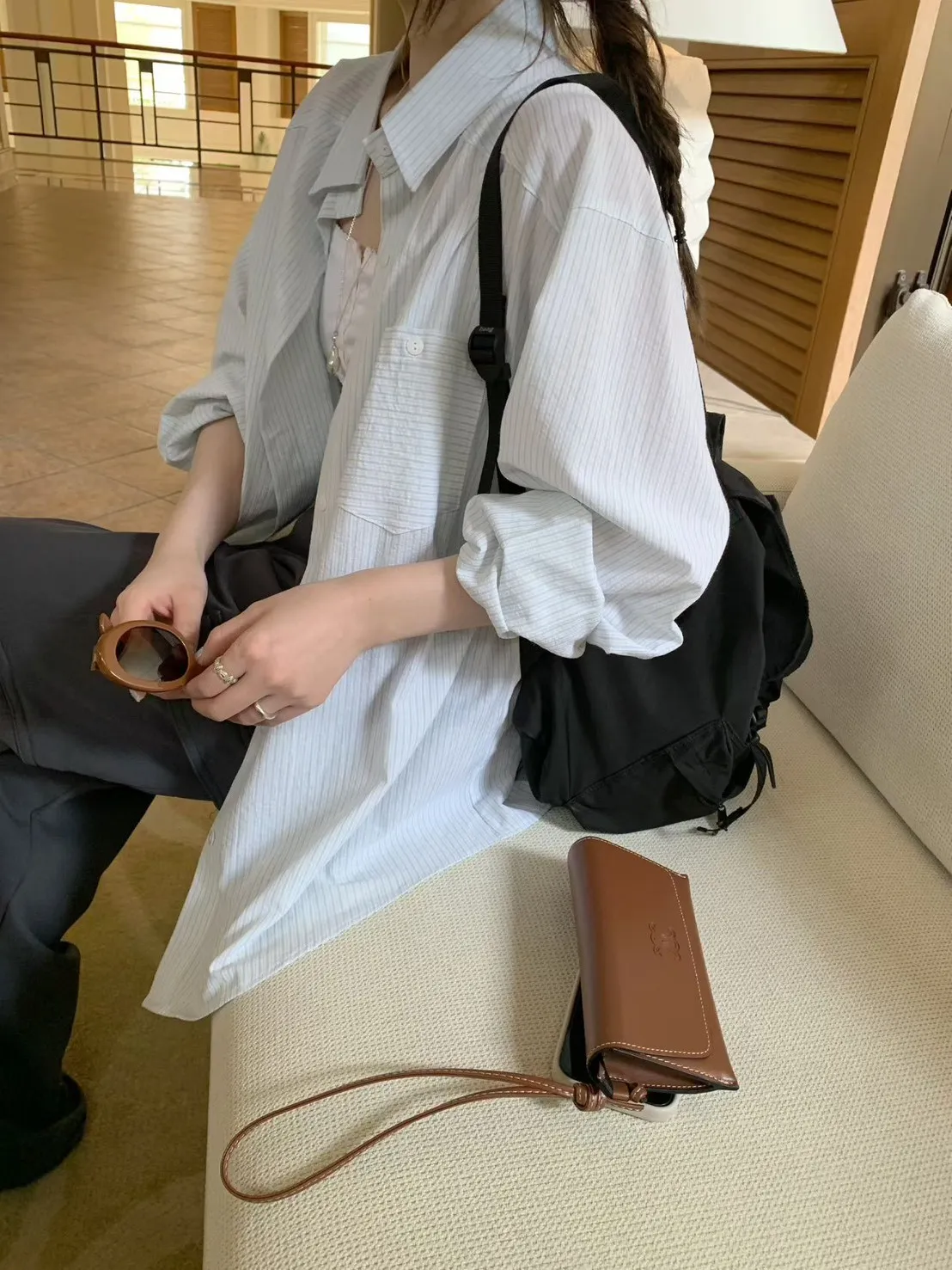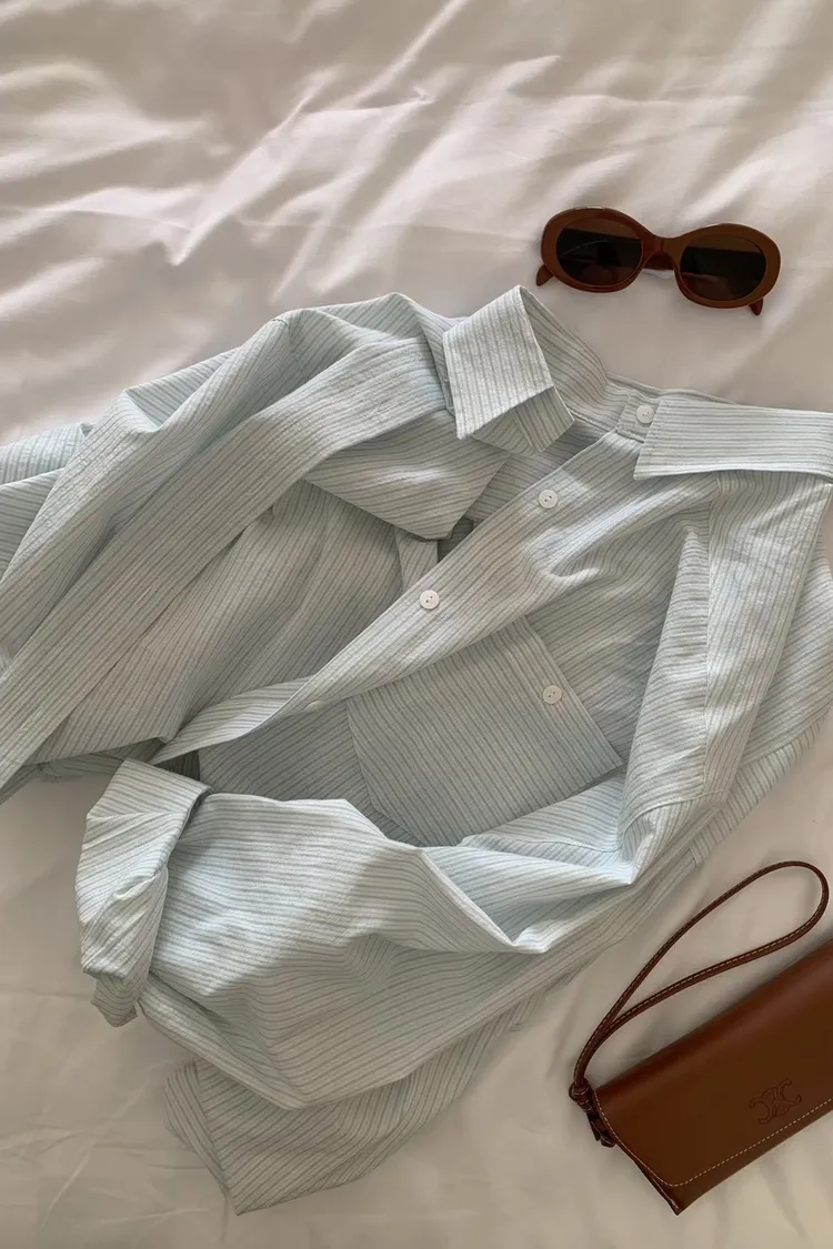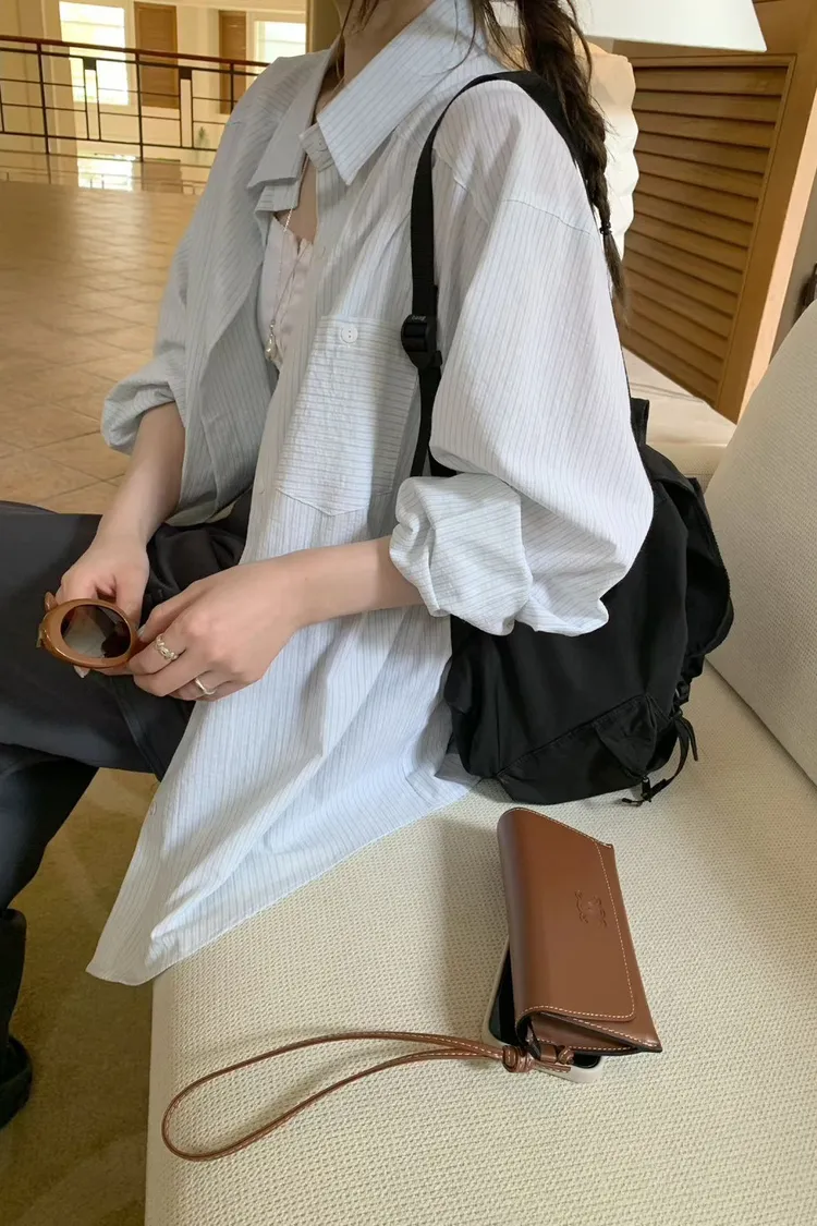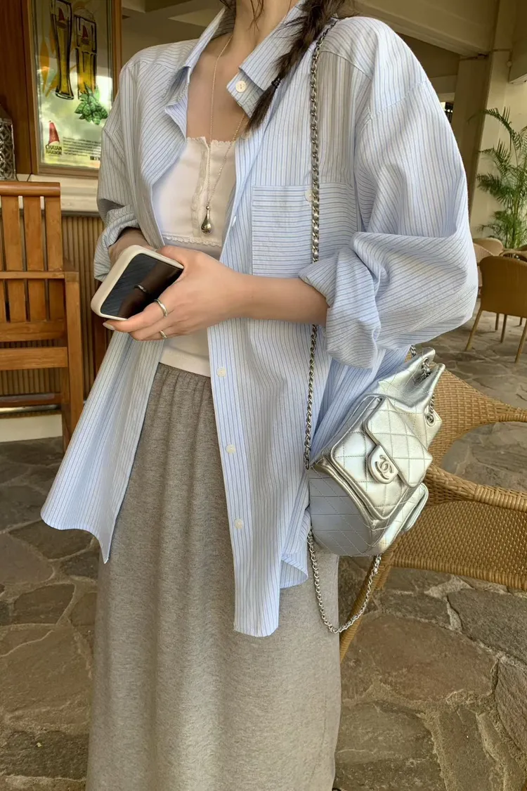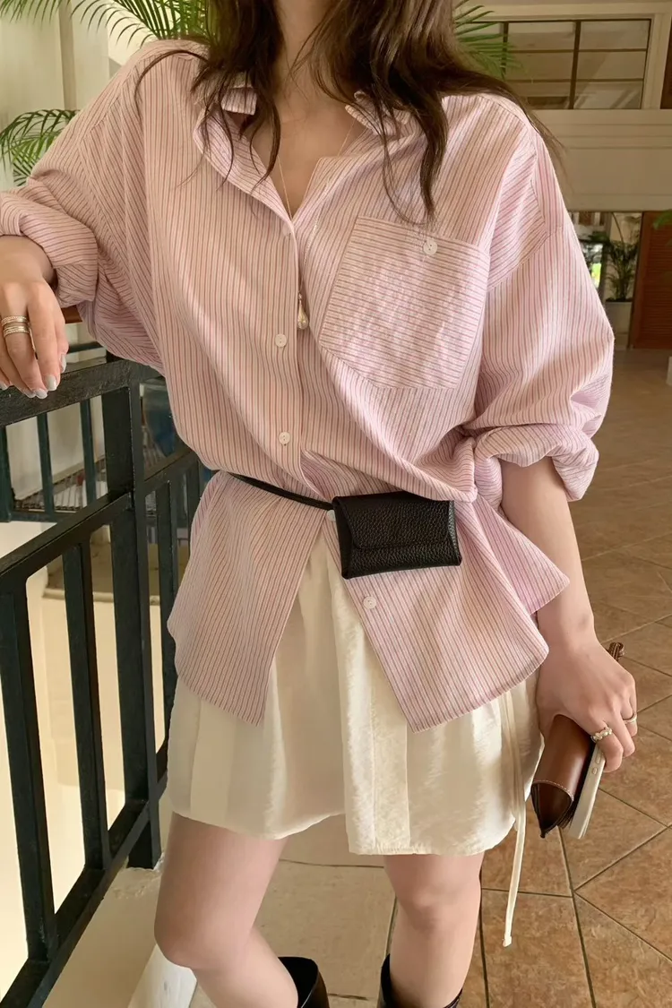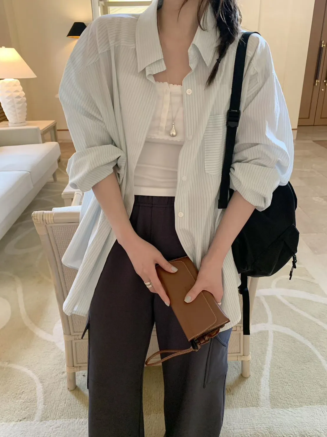 棉+聚酯 舒適透氣 胸前單口袋 直條紋 寬鬆舒適 可襯衫可外套