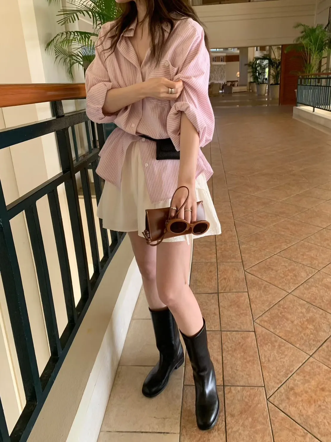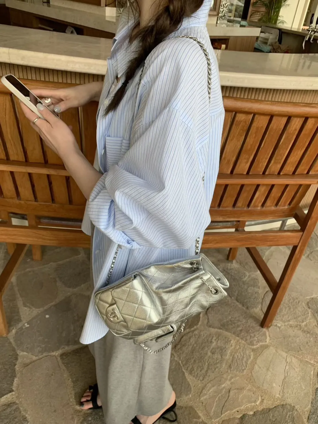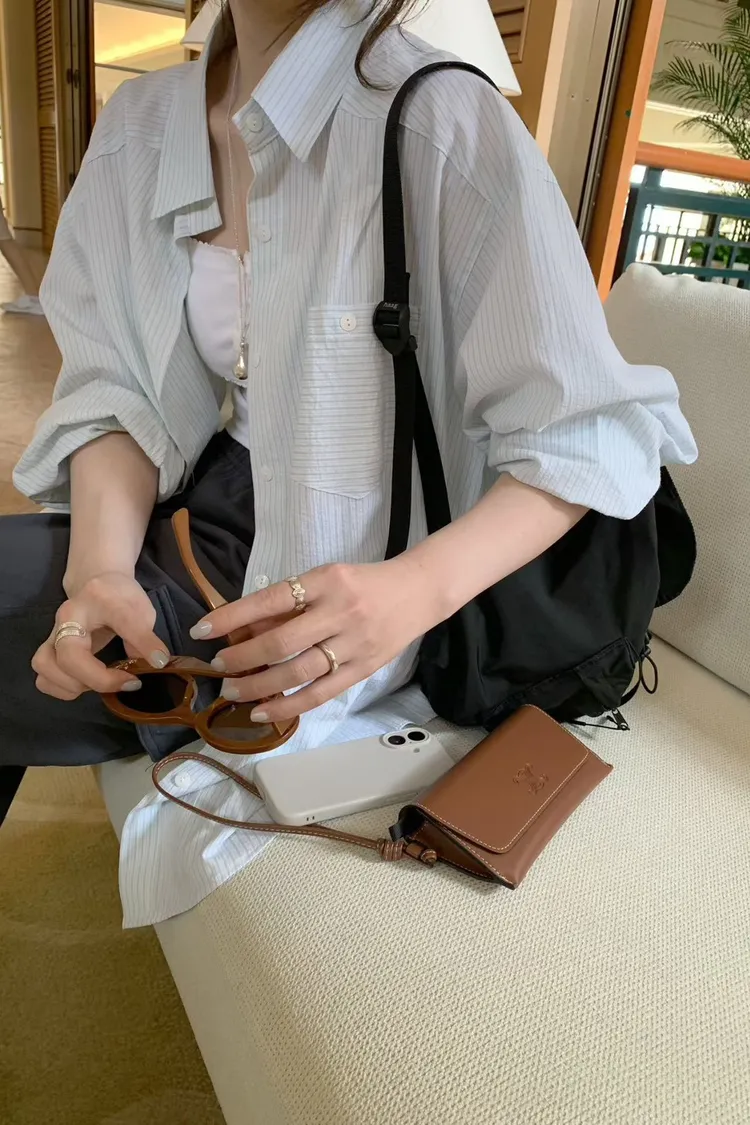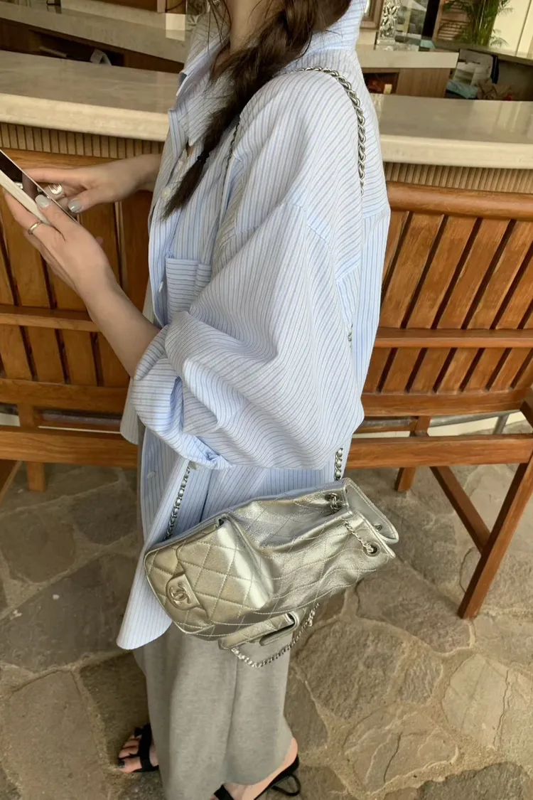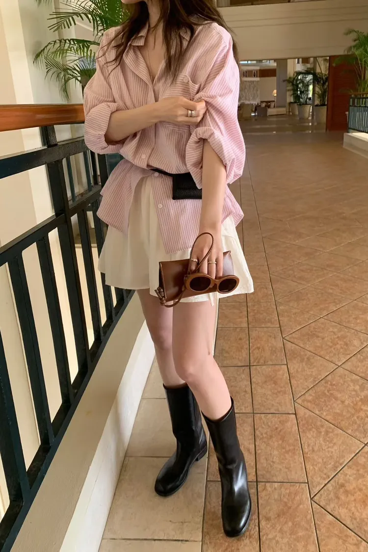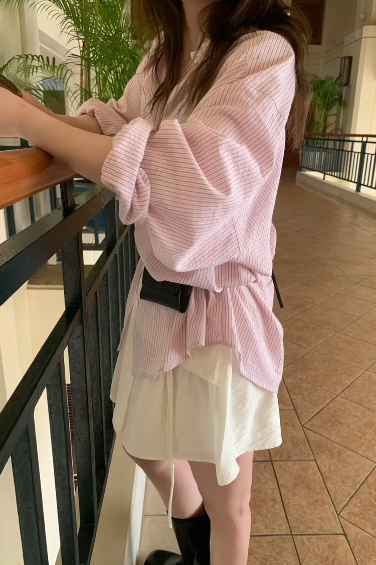 棉+聚酯 舒適透氣 胸前單口袋 直條紋 寬鬆舒適 可襯衫可外套
