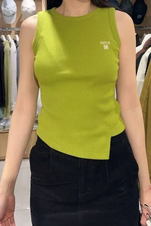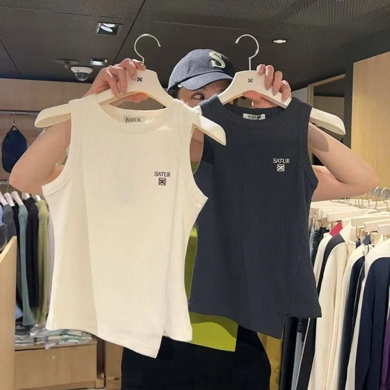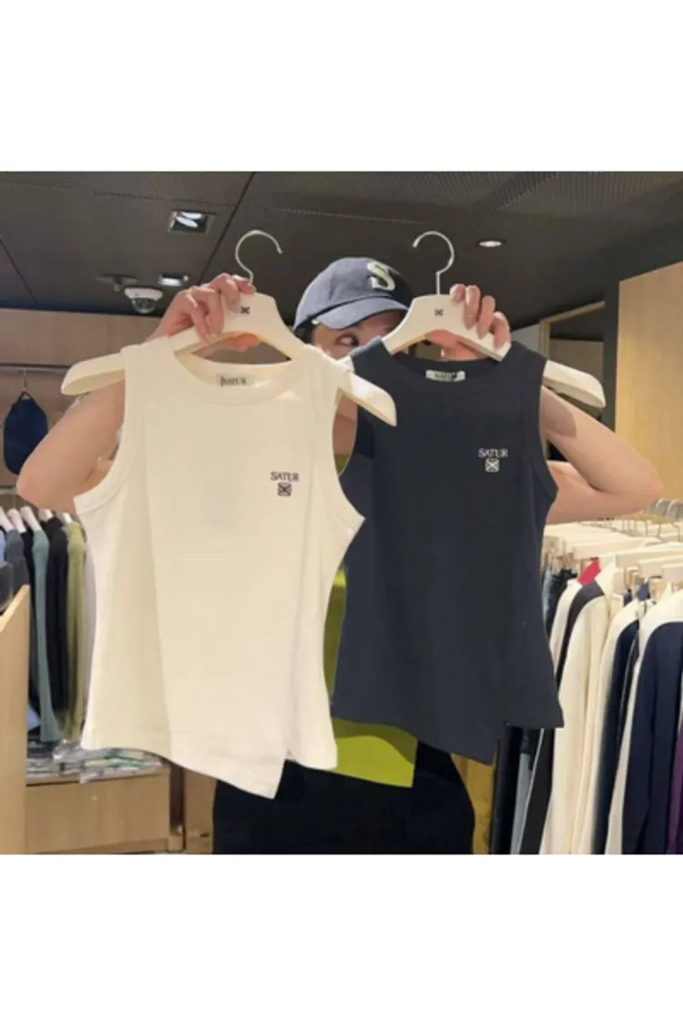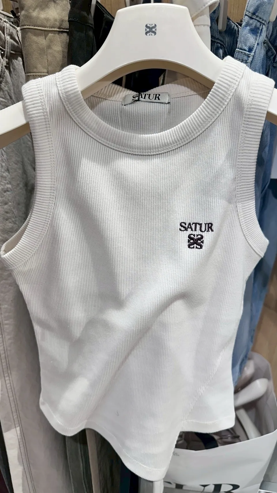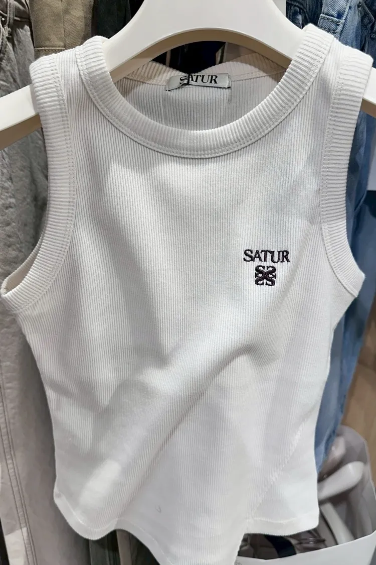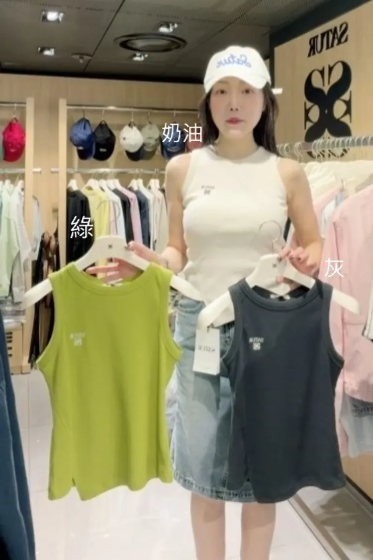 QB417女款刺繡Satur小Logo背心 綠 灰 奶油 XS S M官網價$1280 線上價$1250