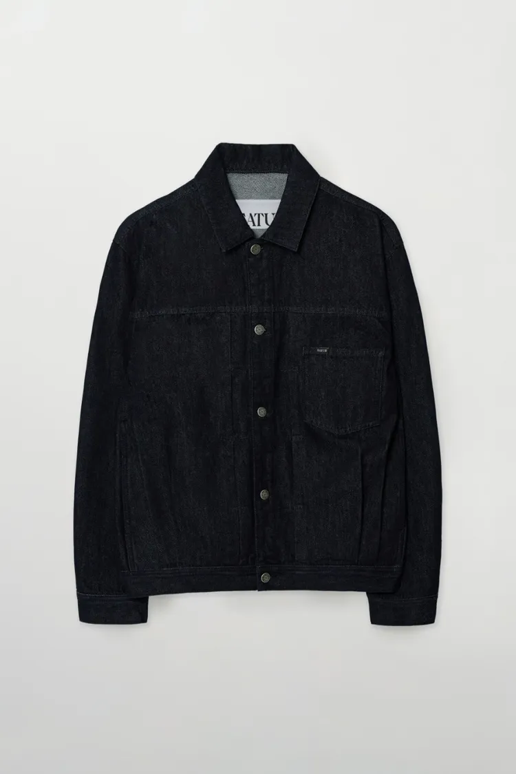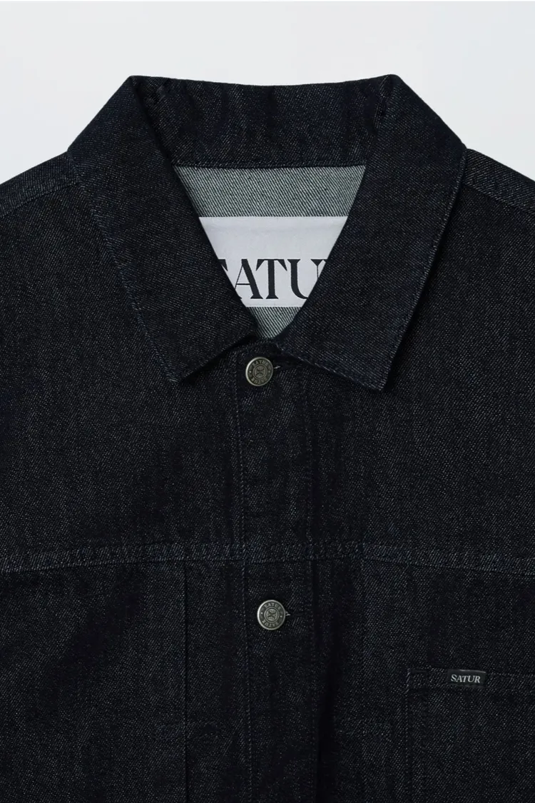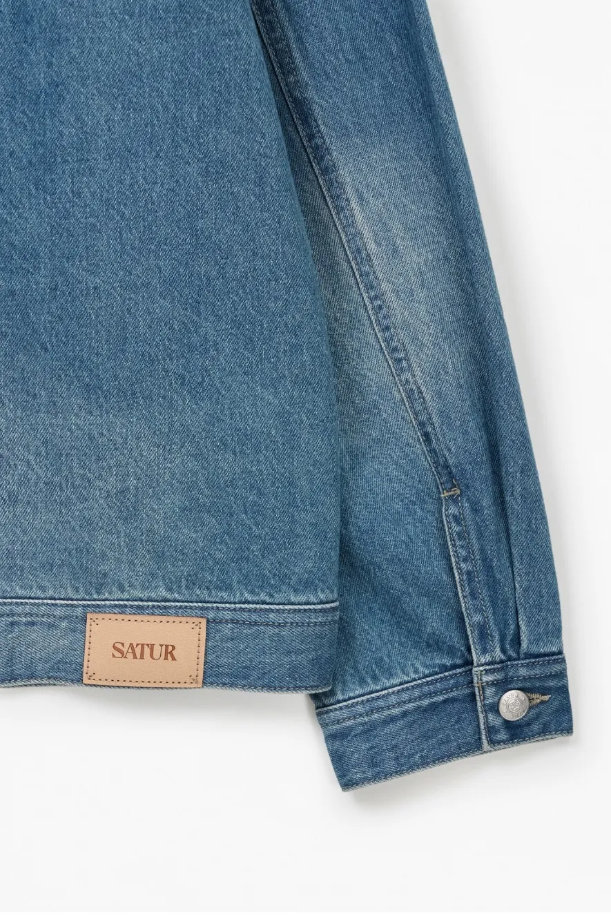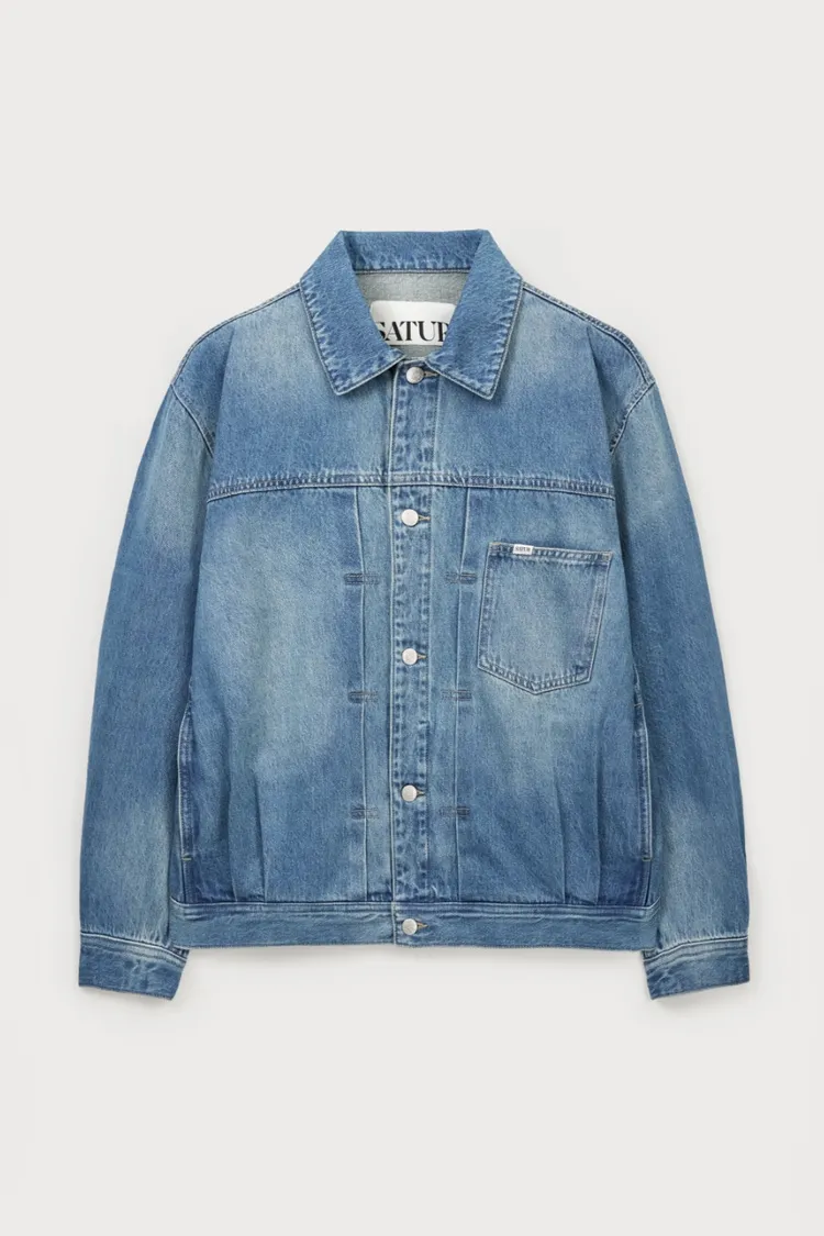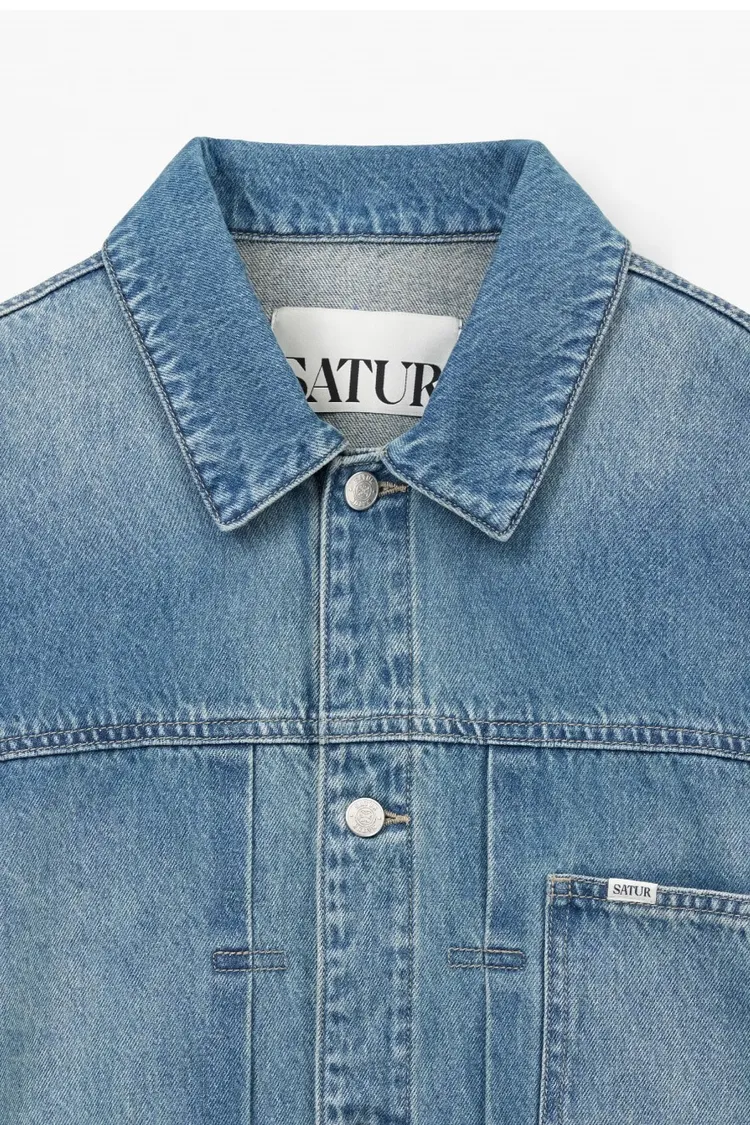 寬鬆復古牛仔卡車司機夾克,LOGO使用皮革紋理