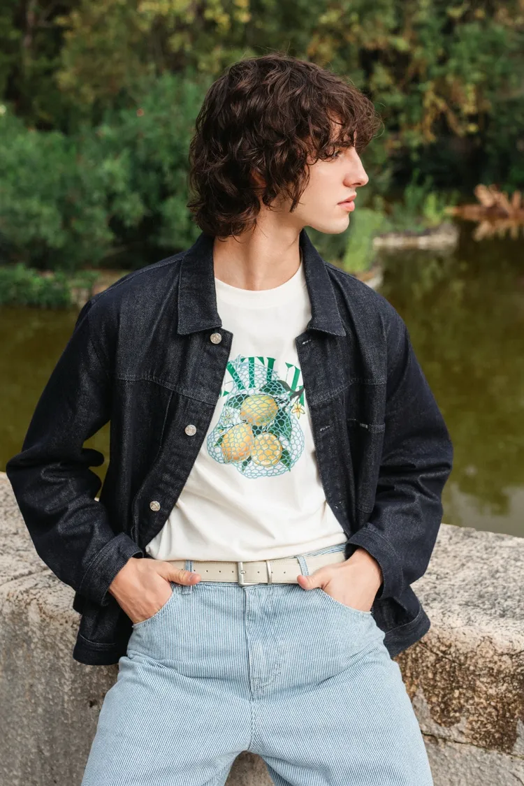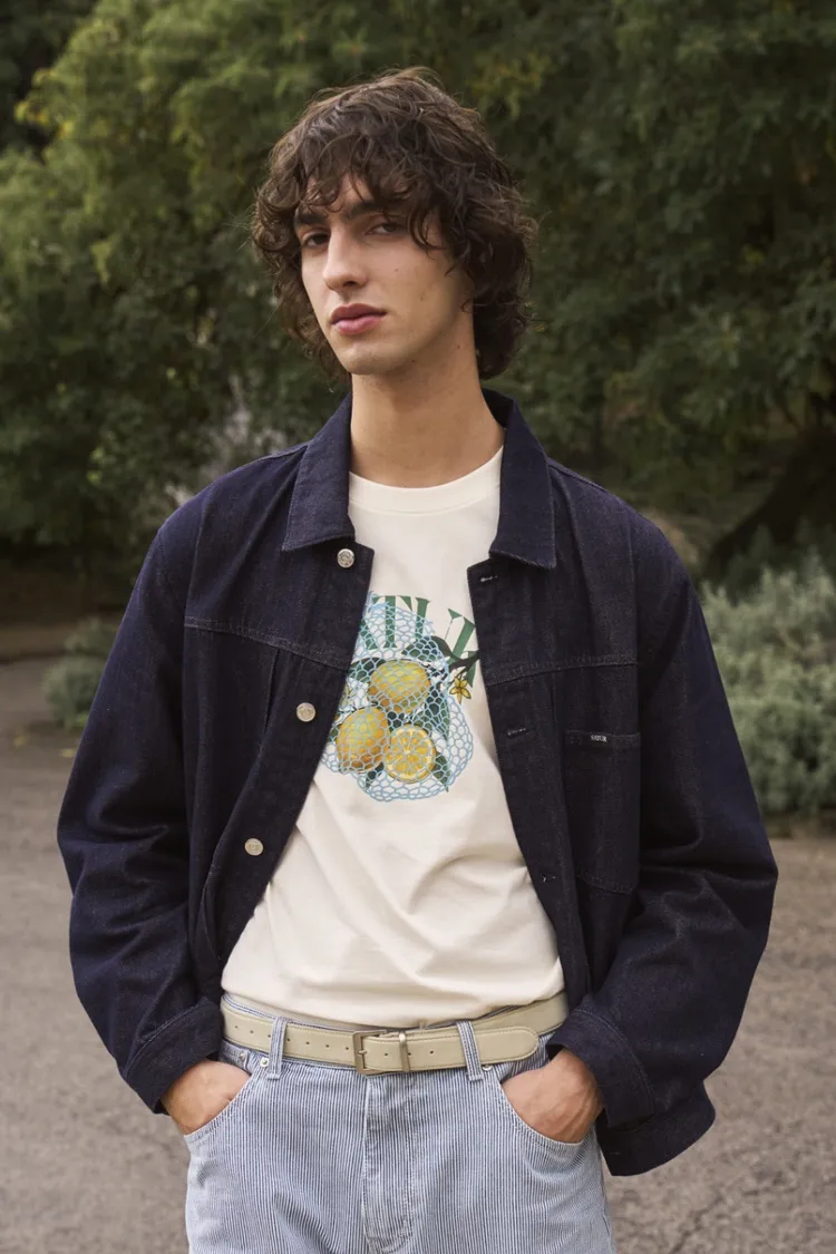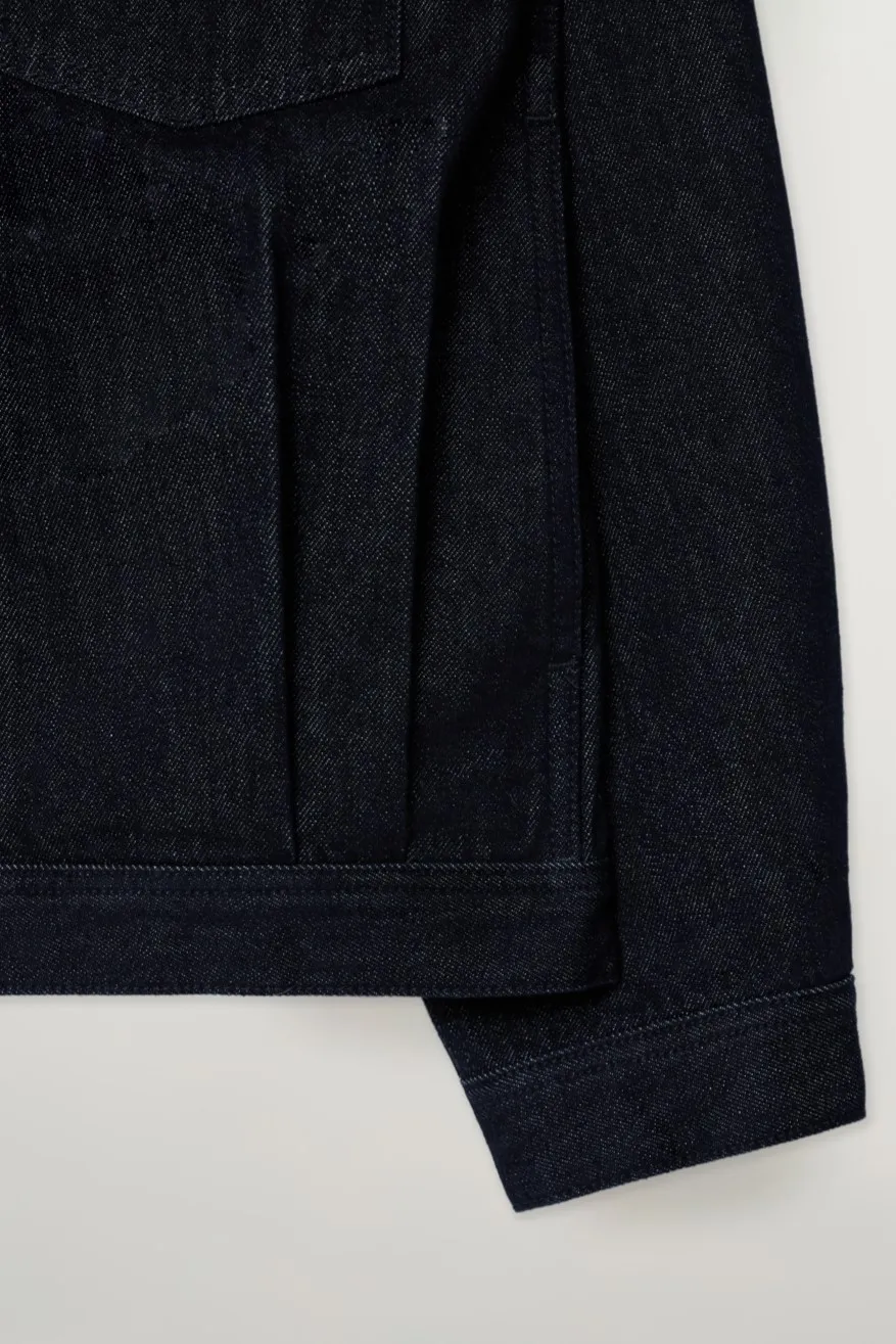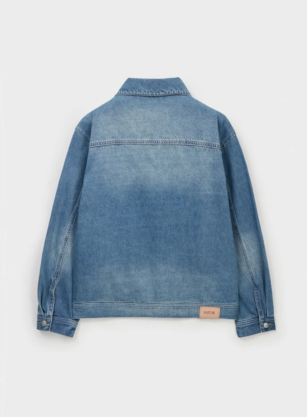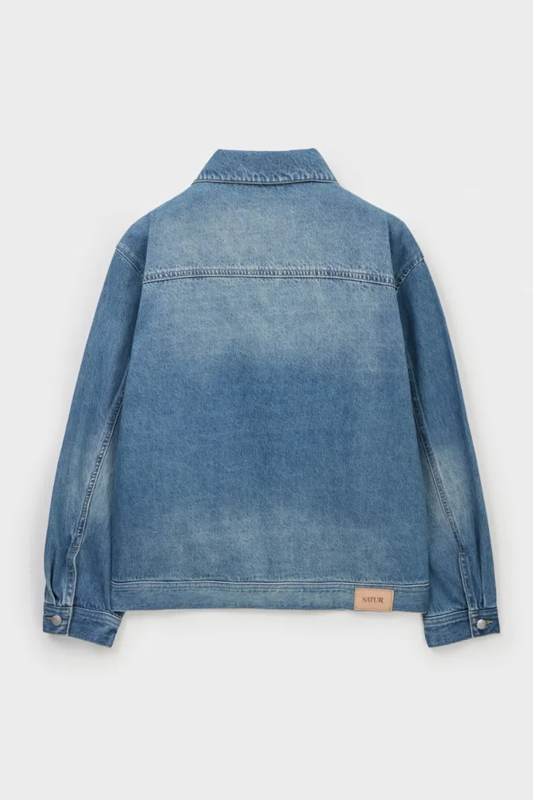 寬鬆復古牛仔卡車司機夾克,LOGO使用皮革紋理