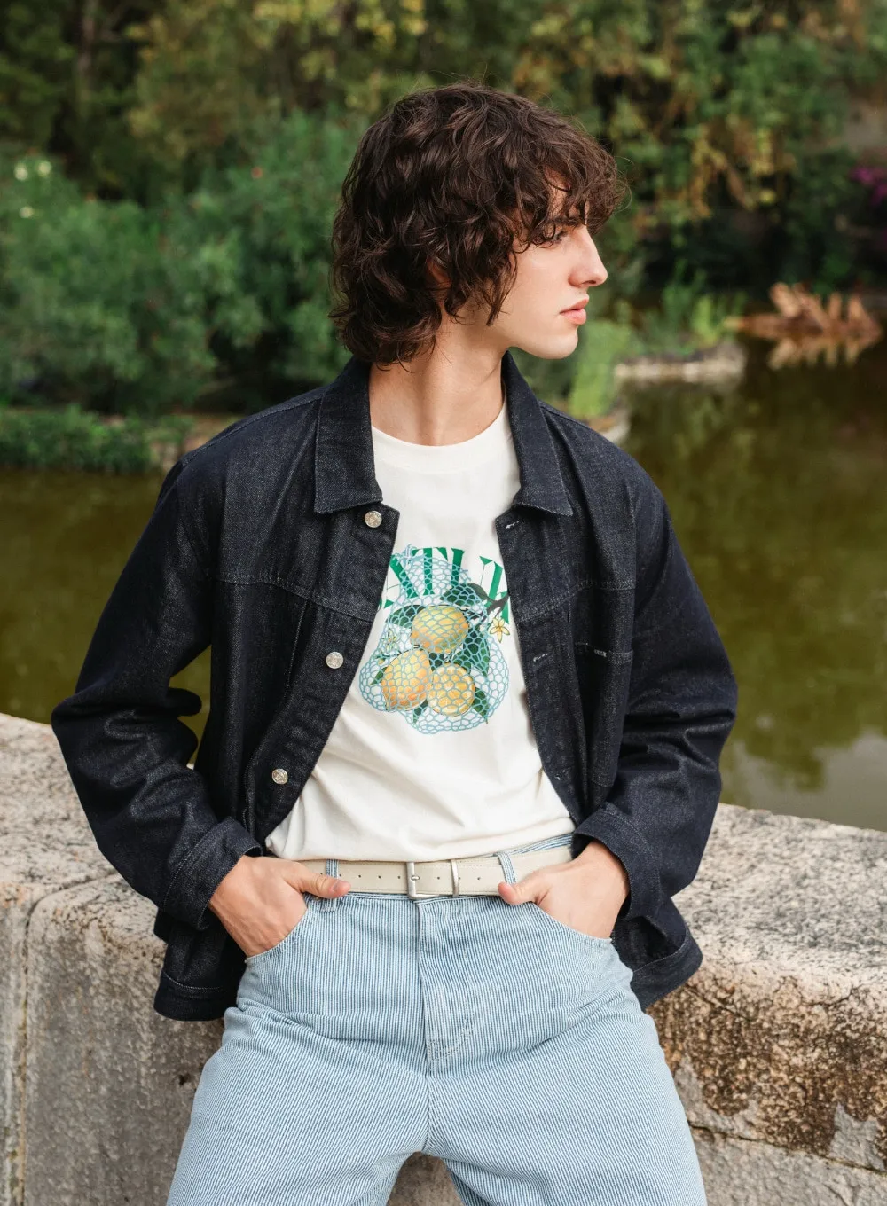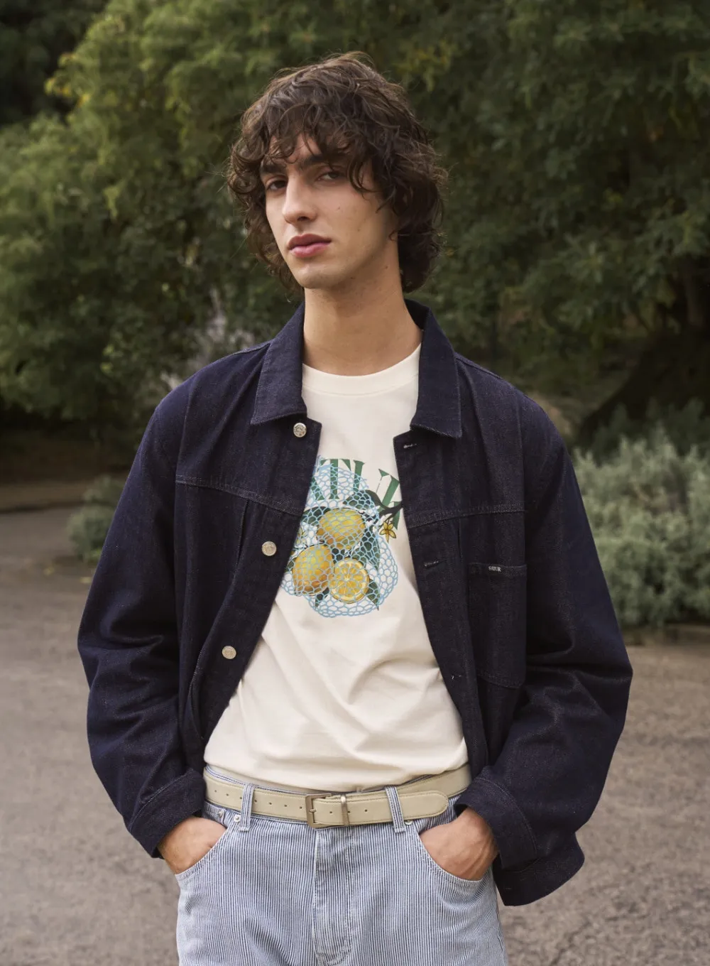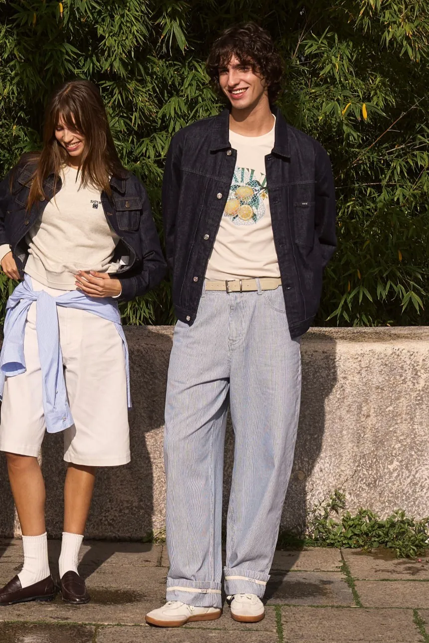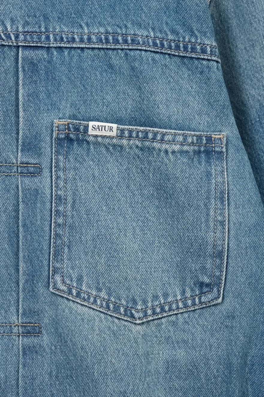 寬鬆復古牛仔卡車司機夾克,LOGO使用皮革紋理