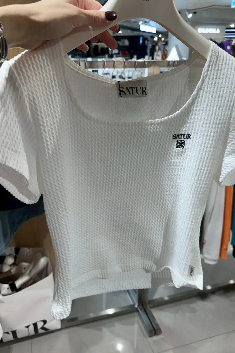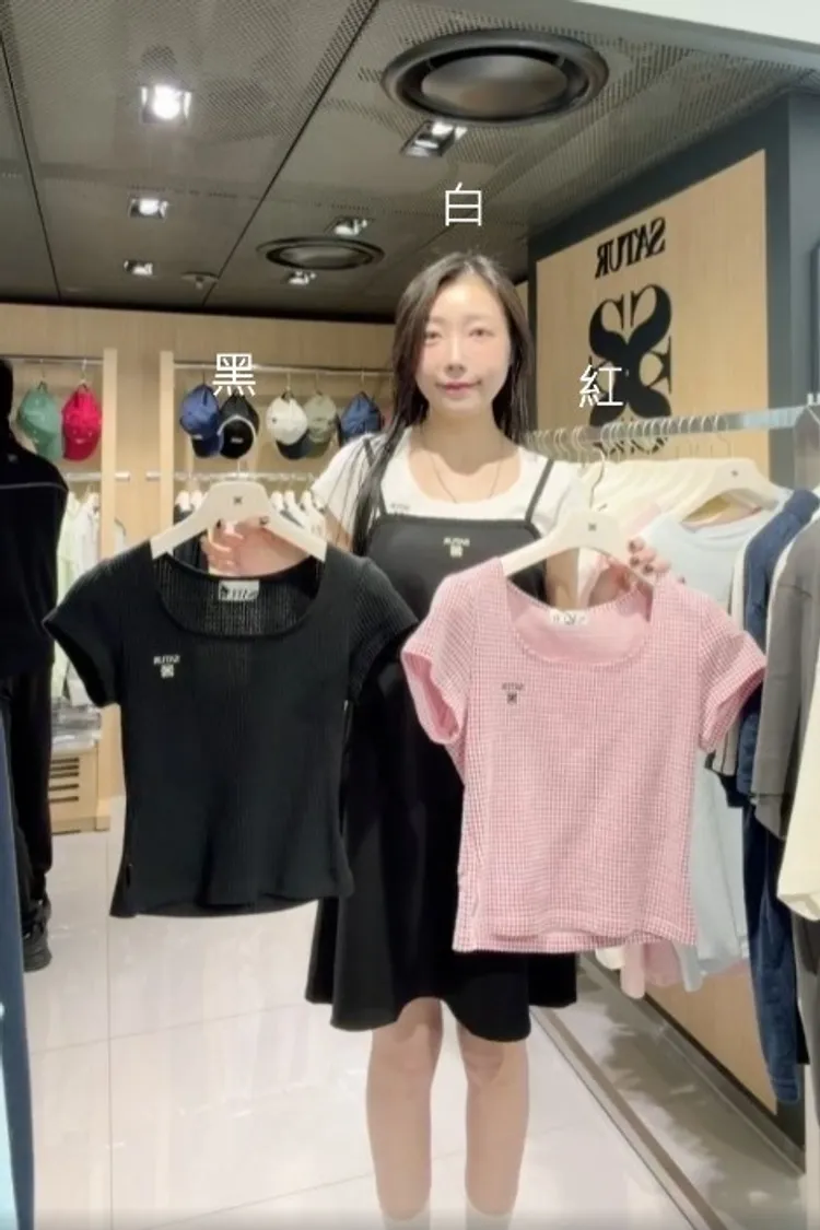 QB429寬U領Satur細格紋Tshirt 白 紅 黑 XS S M 官網價$1450 線上價$1420