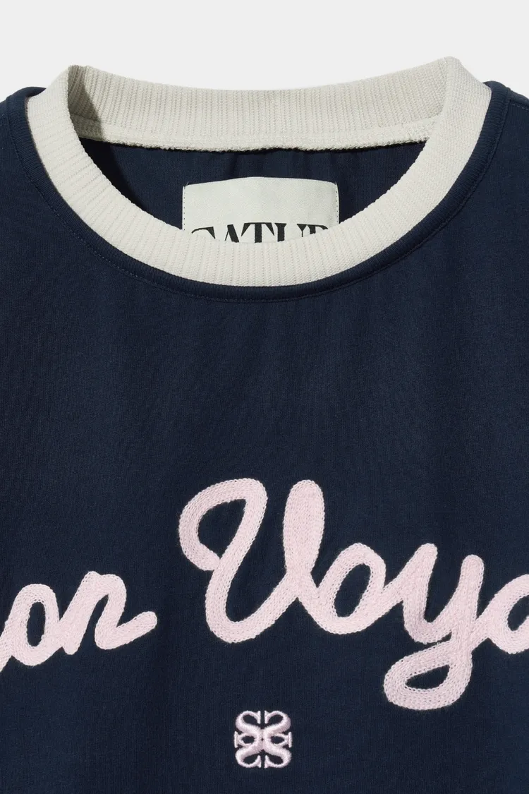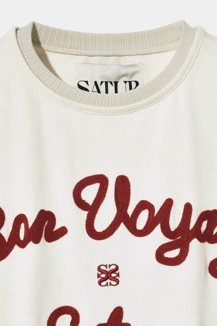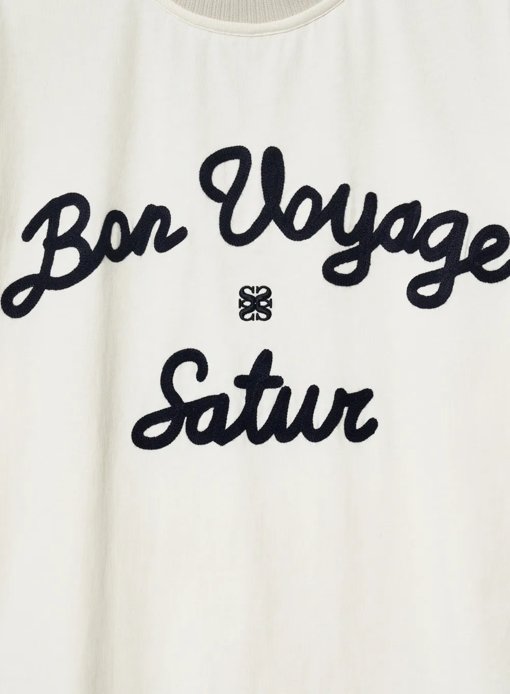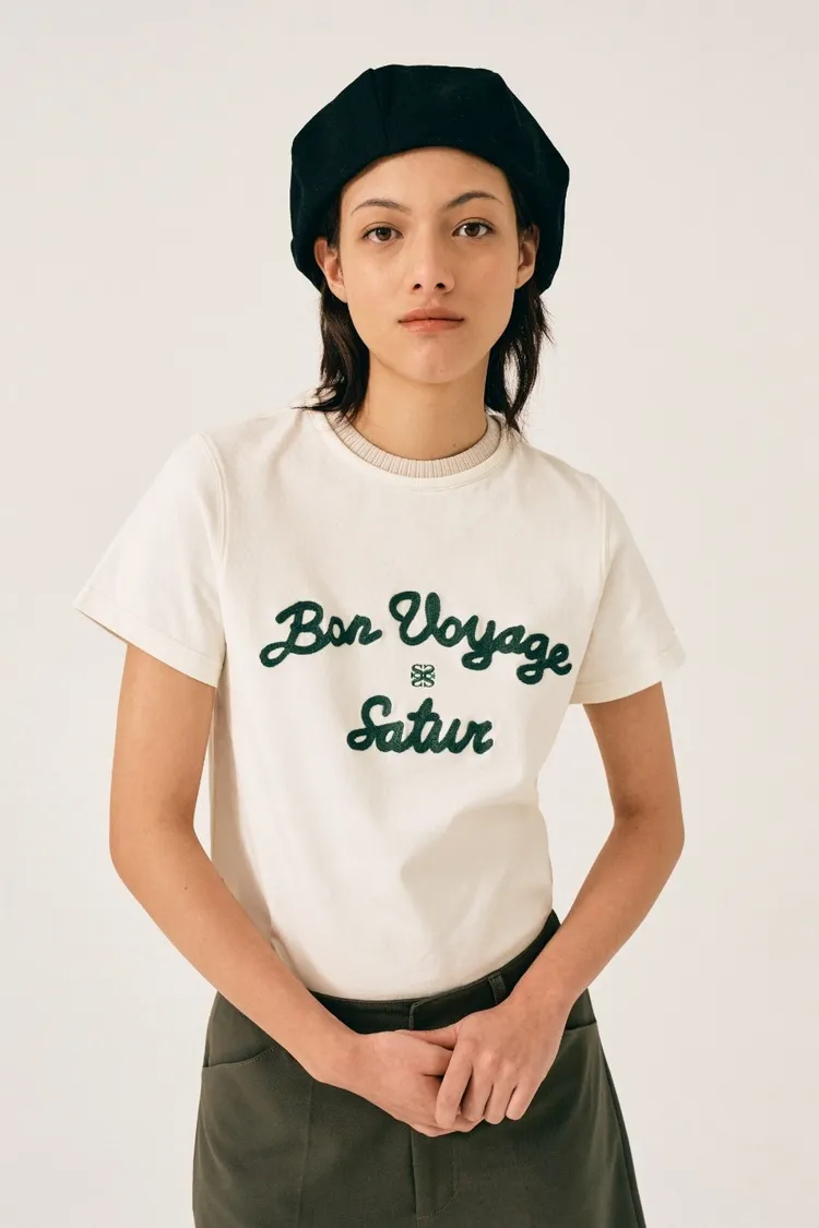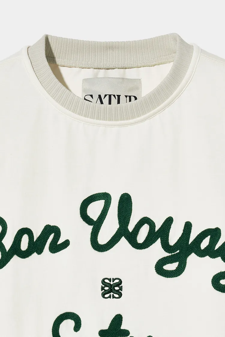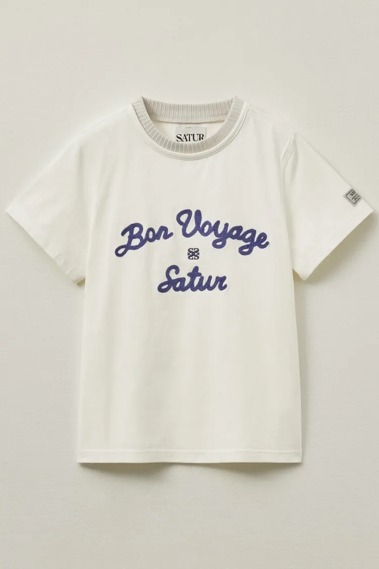 "BON VOYAGE" 字母圖案以精緻的鍊式刺繡工藝呈現增添高級感