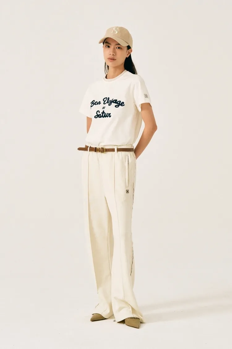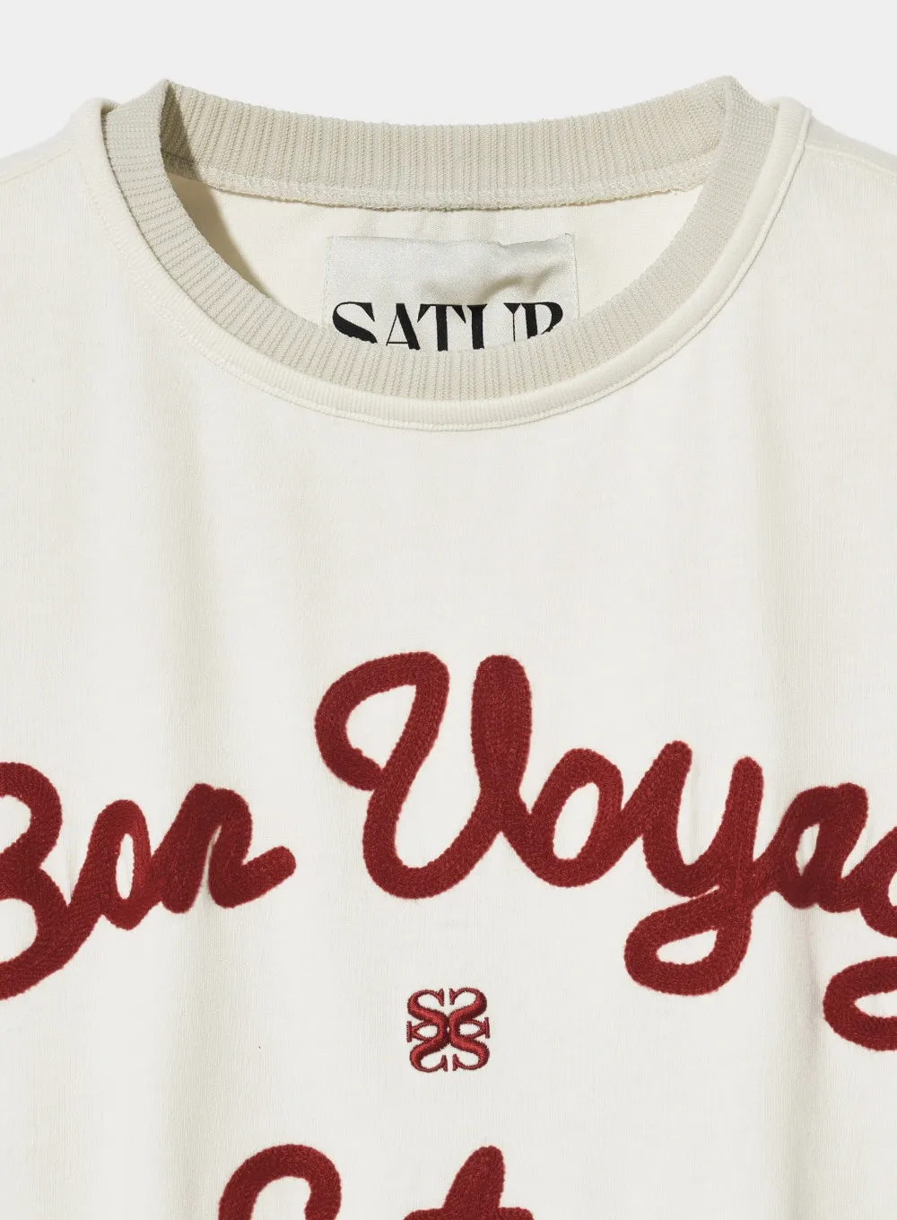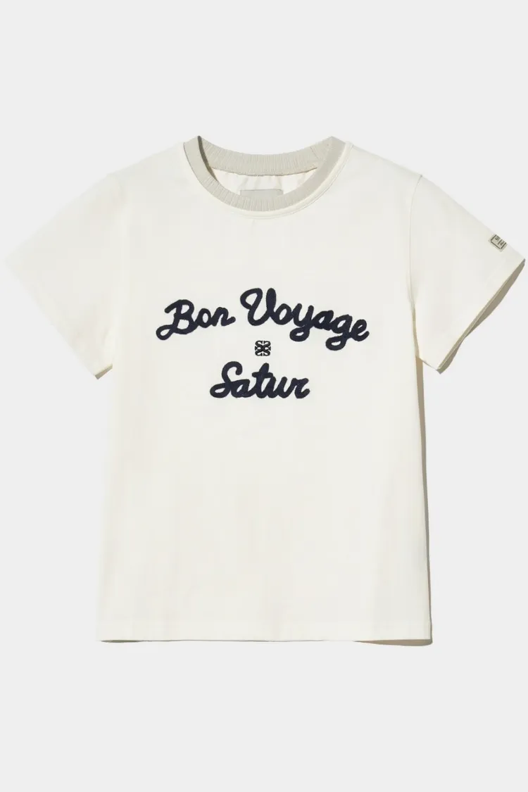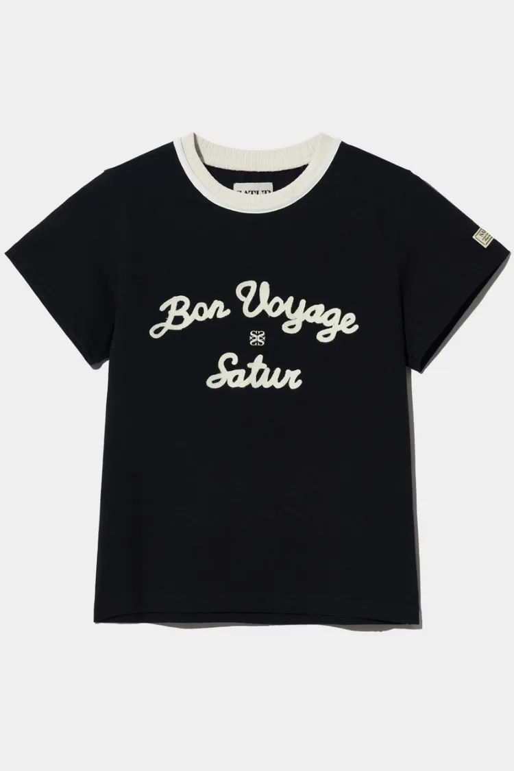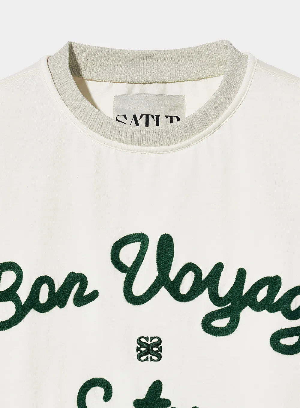 "BON VOYAGE" 字母圖案以精緻的鍊式刺繡工藝呈現增添高級感