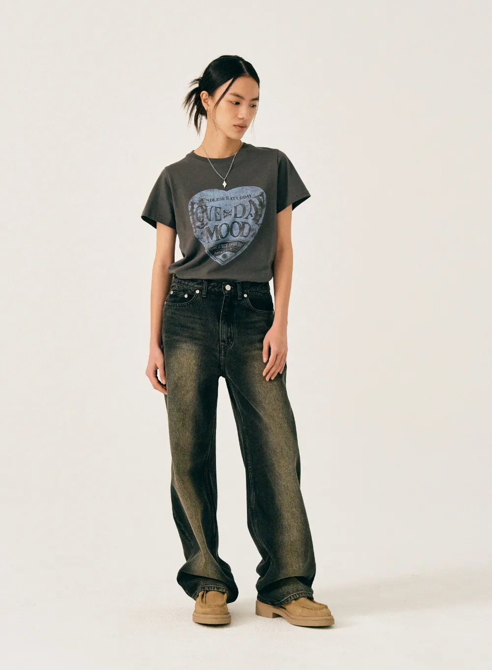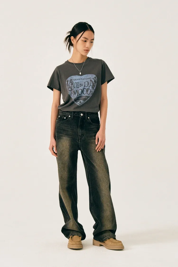 QB436特價女款洗舊愛心Tshirt 灰 奶油 XS S M 原價$1480 線上價$980