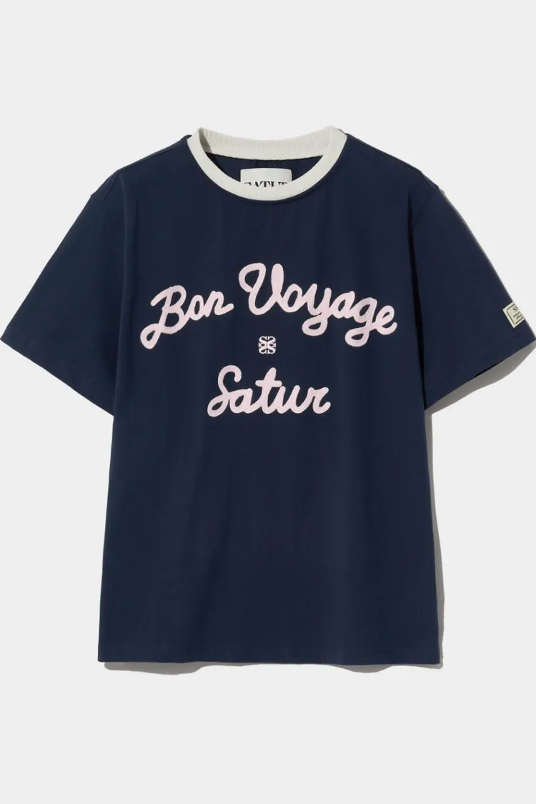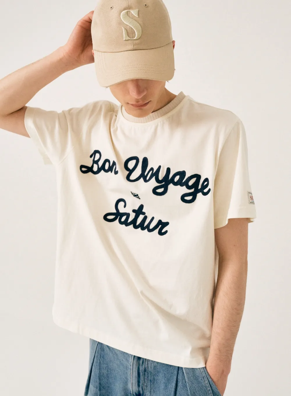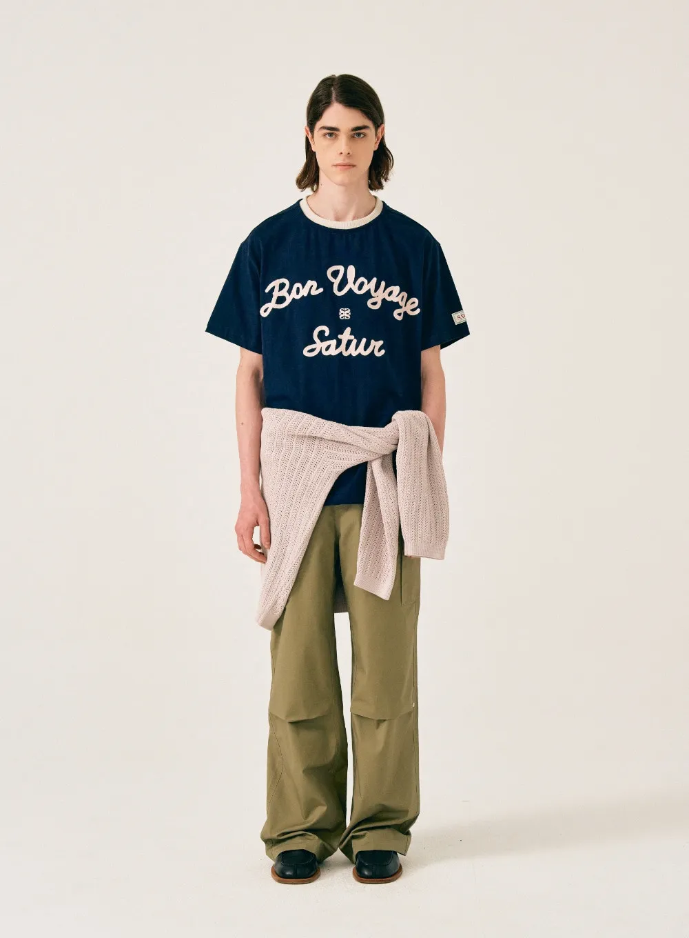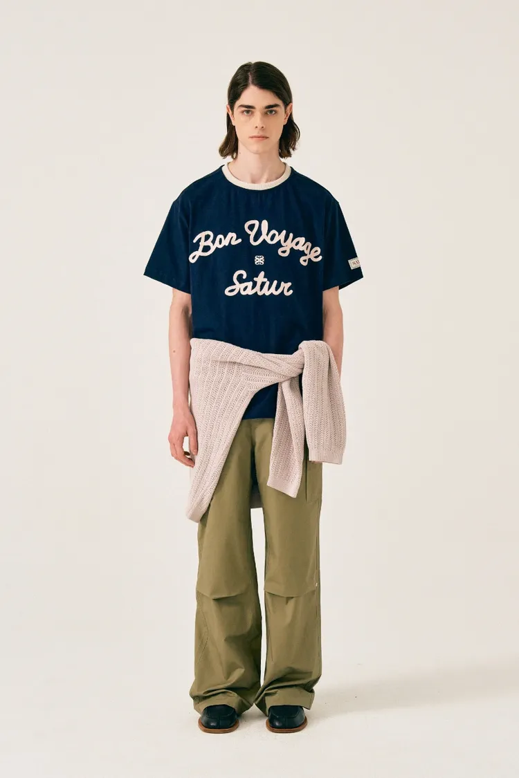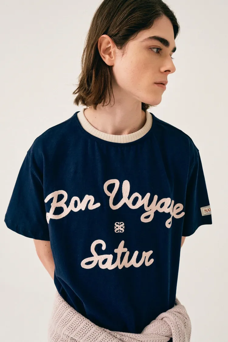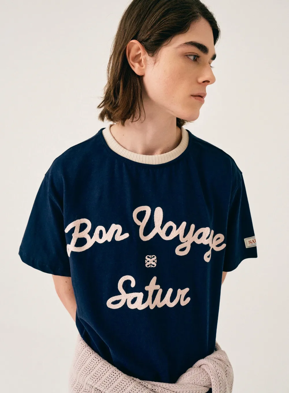 QB437特價男款Satur英文草寫Tshirt 藍 綠 紅 紫 滾邊深藍 M L XL 原價$2000 特價$980