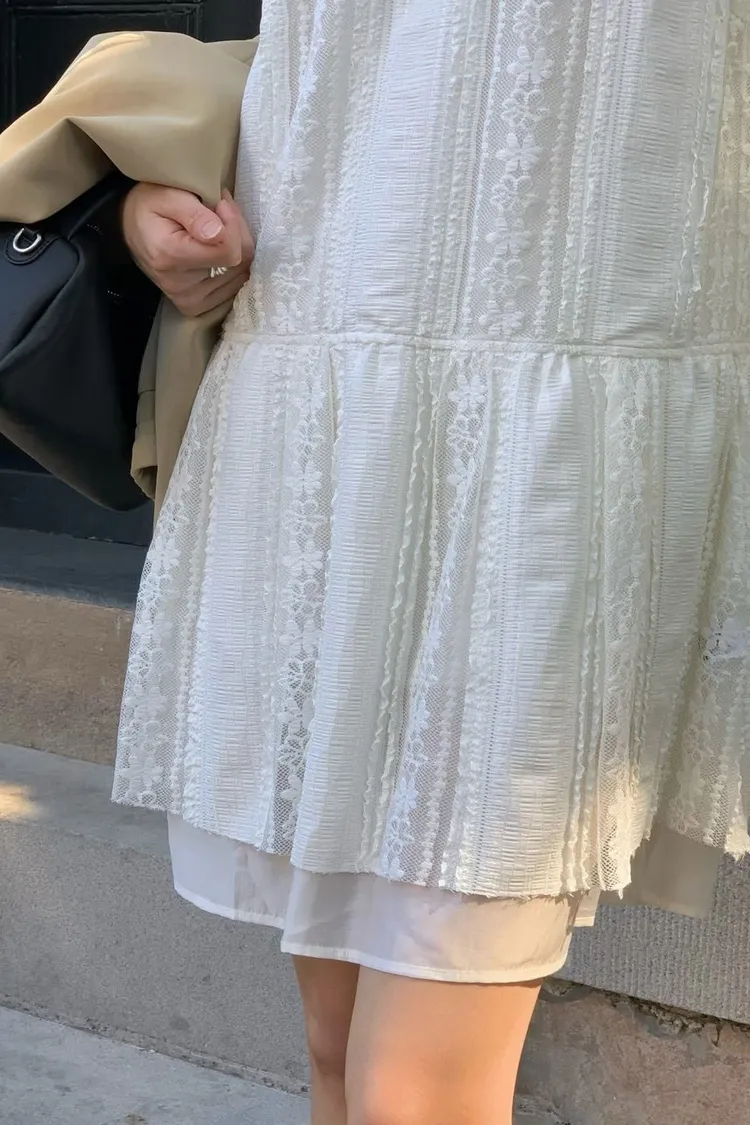 棉+聚酯 層次花朵蕾絲 薄款微透 有內裡 透光層次下擺