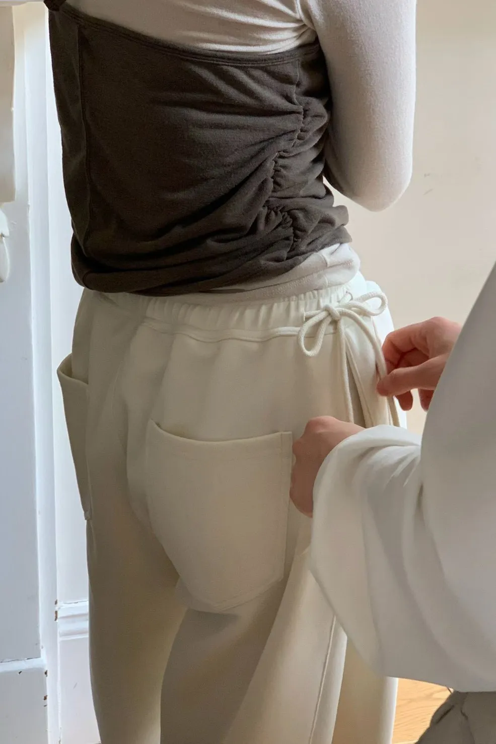 棉 舒適面料 內襯滑順 全腰鬆緊側綁帶 有口袋 寬鬆舒適 褲管底釦 L號友善