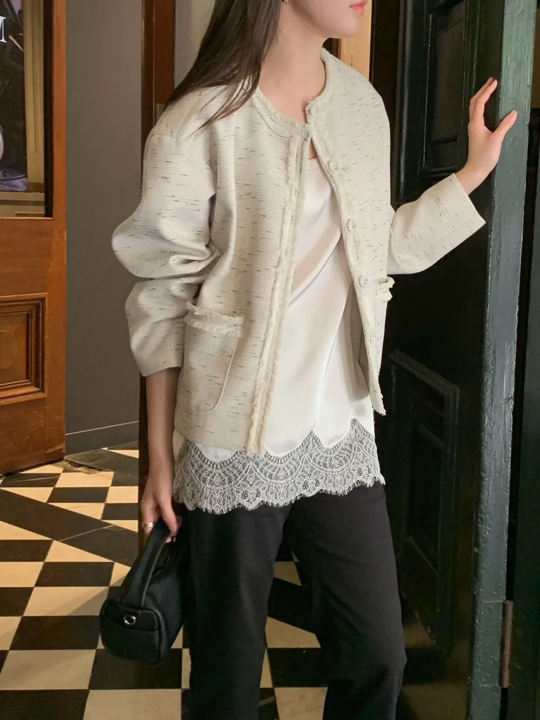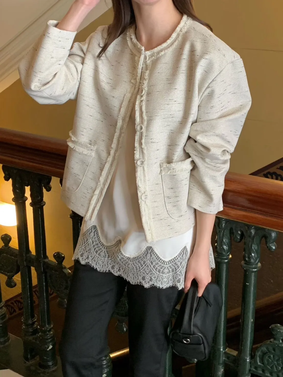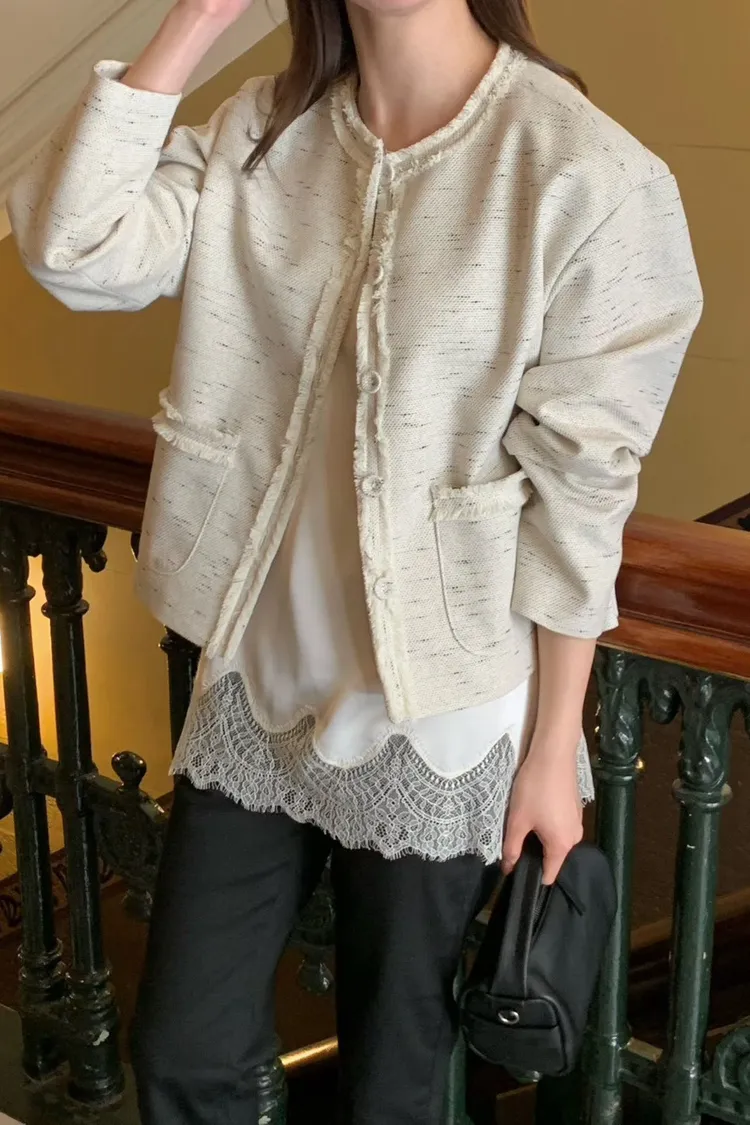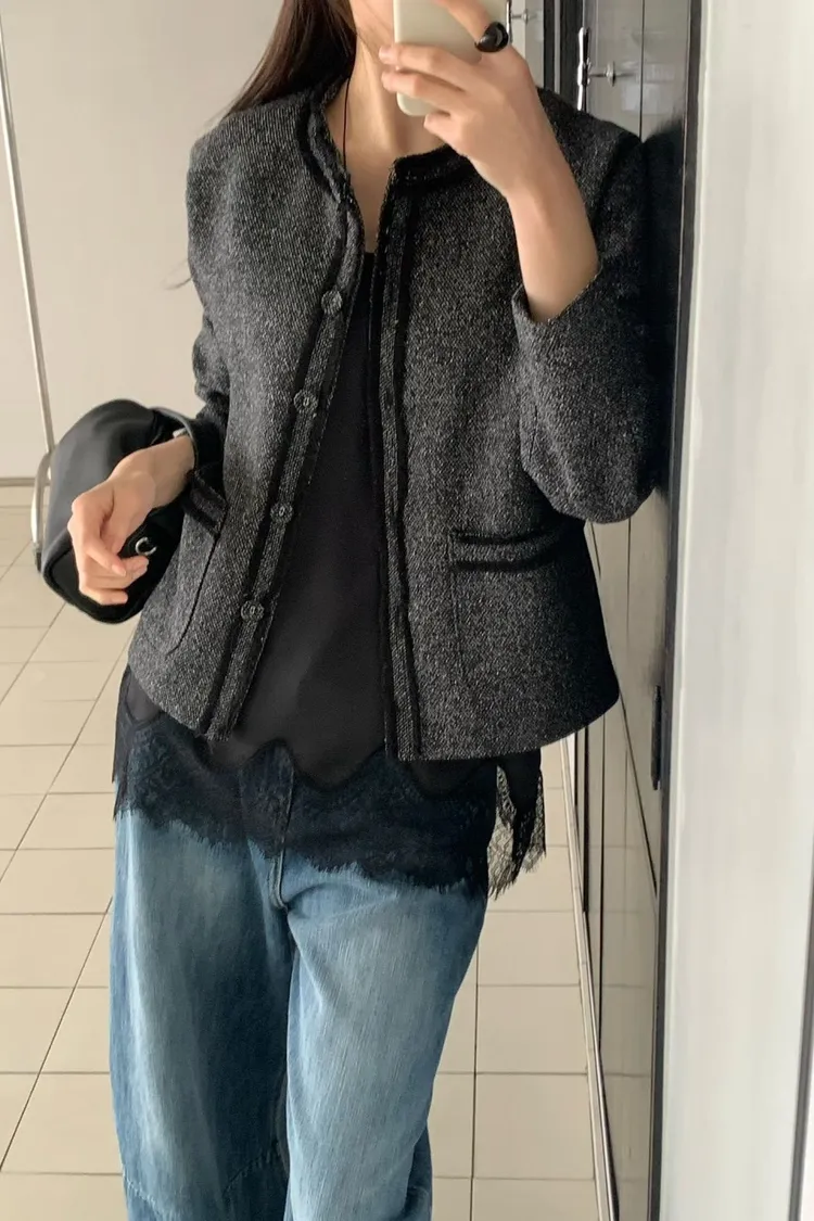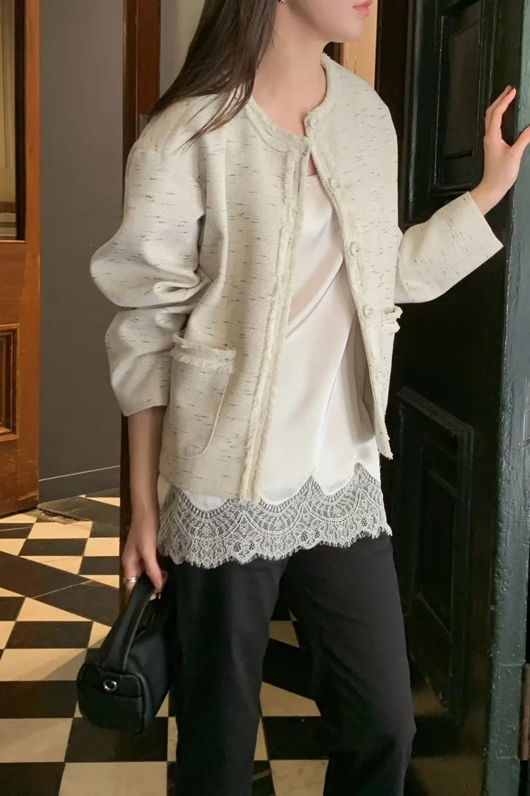 棉+麻+縲縈+尼龍 薄款混織小香面料 有口袋 有內裡