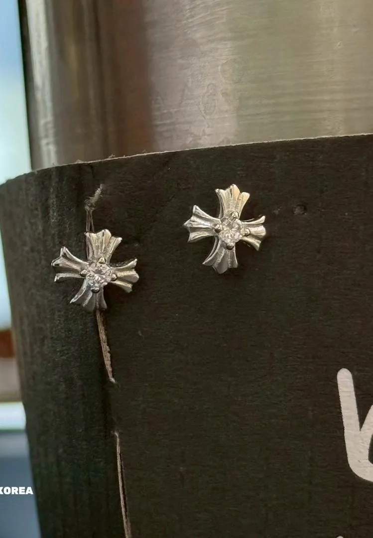 QH013小小十字亮銀克羅星純銀925耳環 官網價$280 永恆甜甜價$250