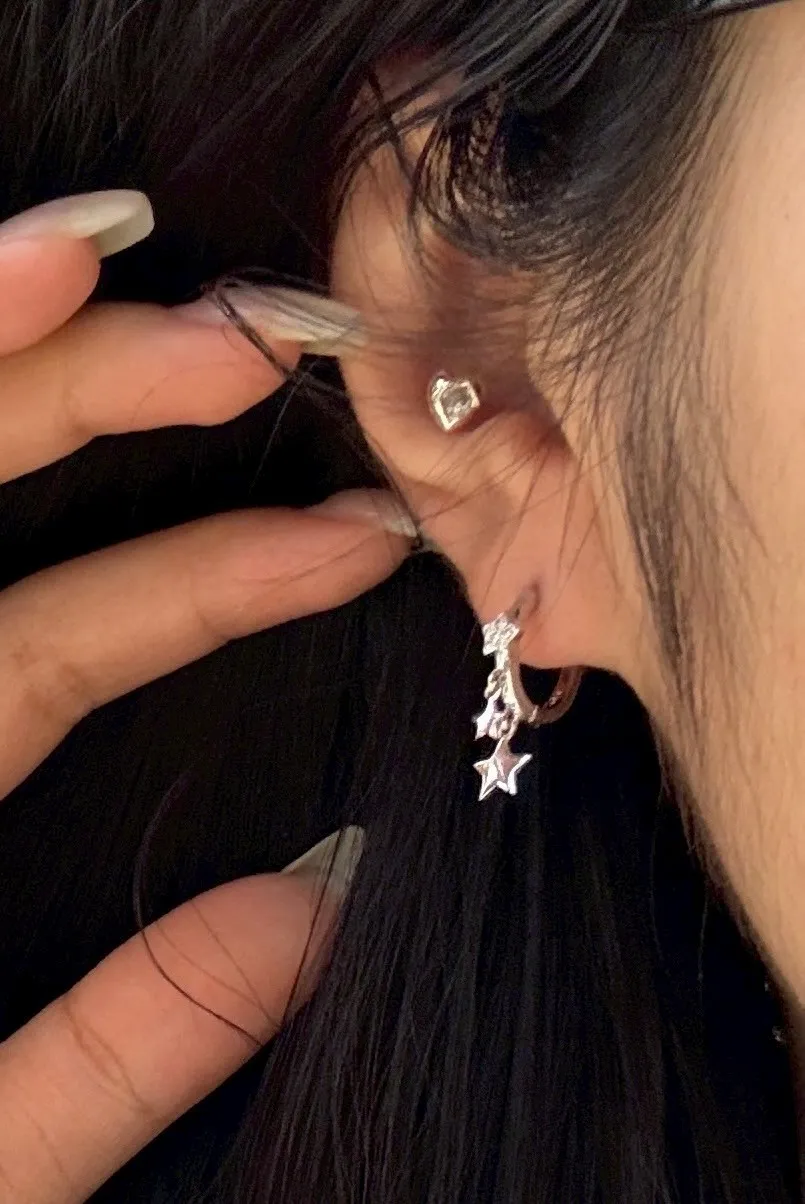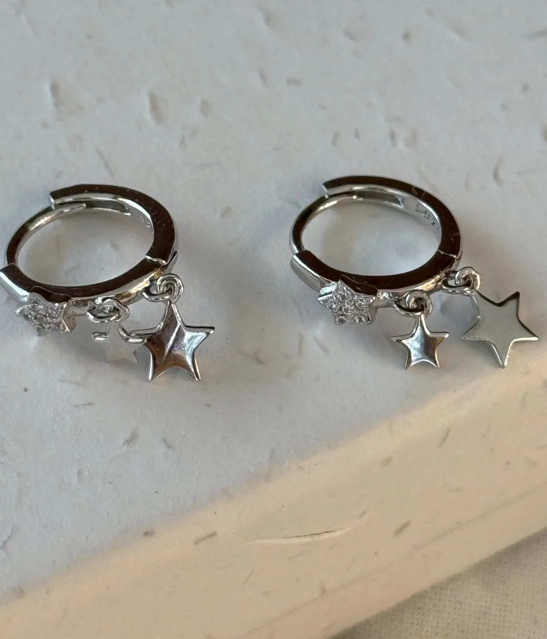 QH023精緻搖曳小星星純銀925耳扣式耳環