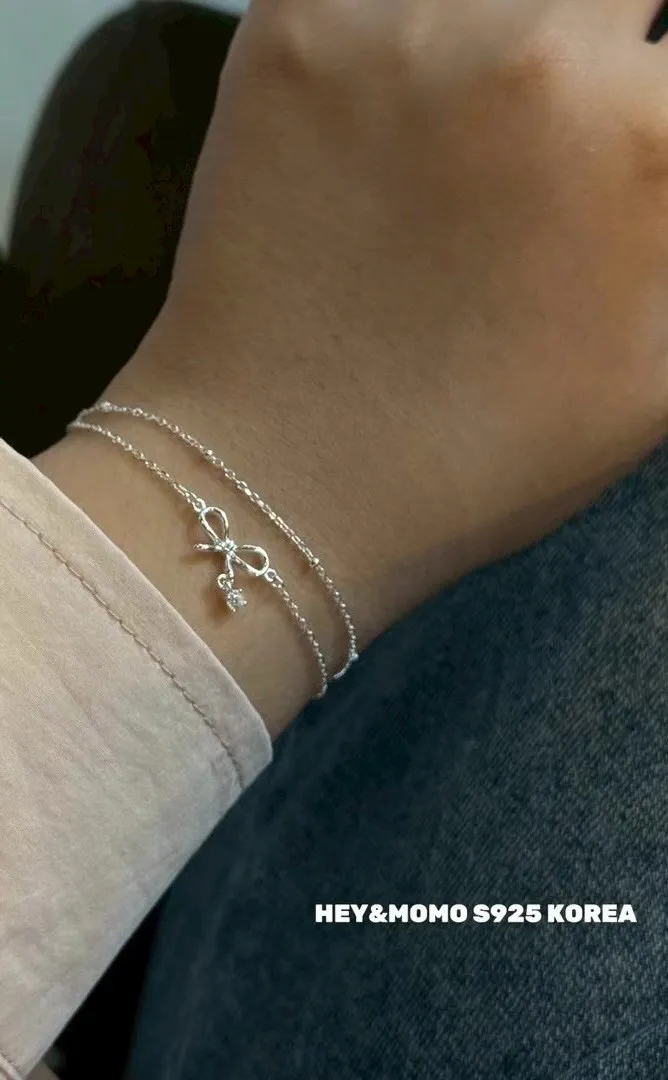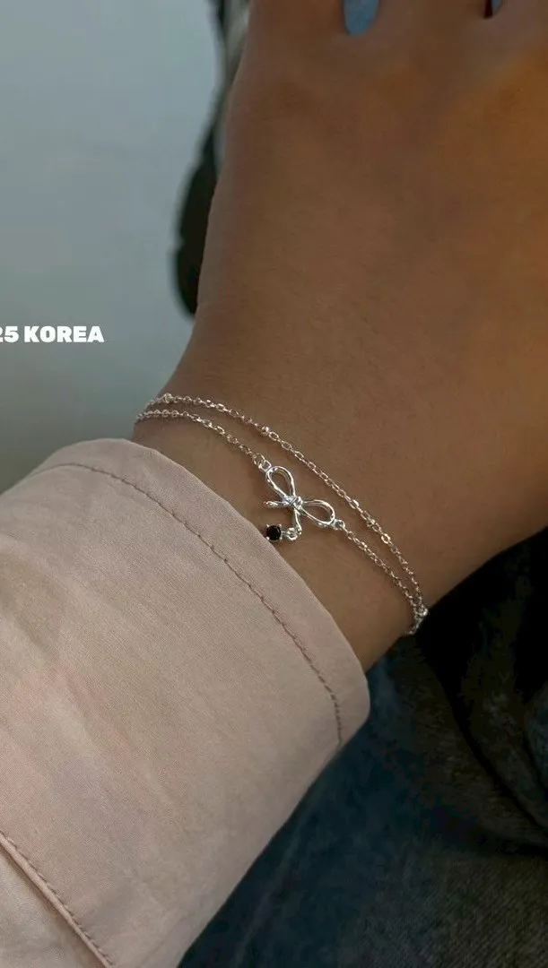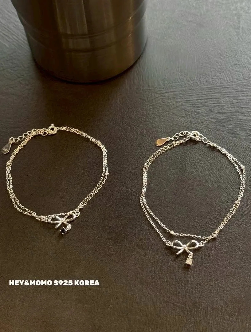 QH025蝴蝶結細鑽純銀925雙鍊手鍊 白鑽 黑鑽 官網價$480 永恆甜甜價$450