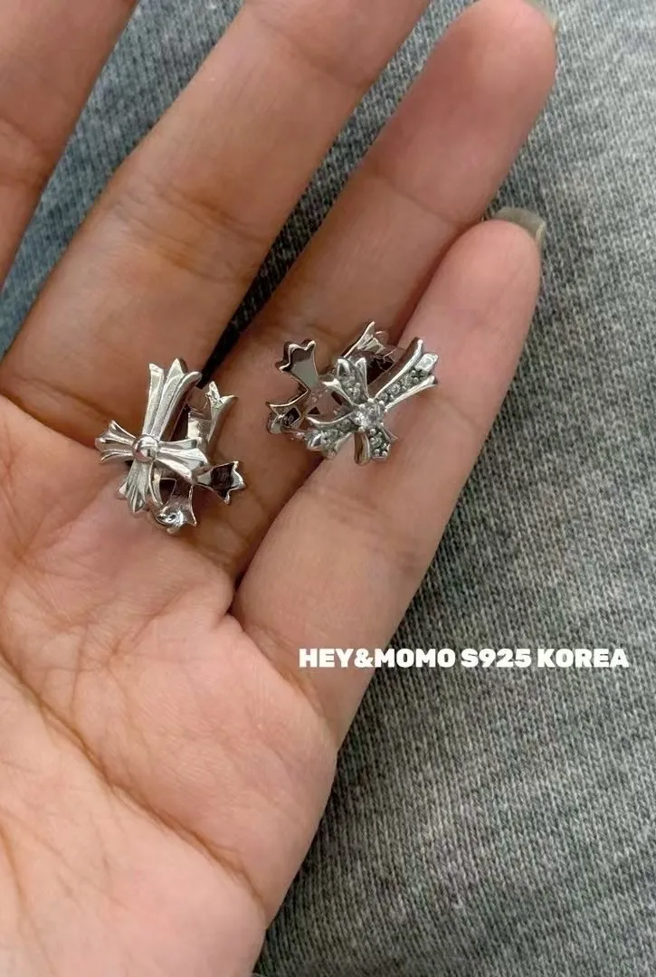 QH034立體雙十字克羅星純銀925耳扣耳環 官網價$890 永恆甜甜價$860