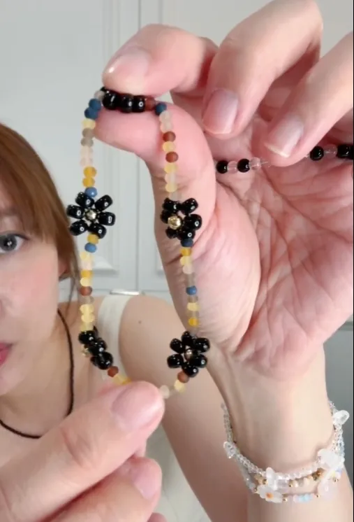 QH137黑色小花金蕊手鍊 官網價$250 永恆甜甜價$220