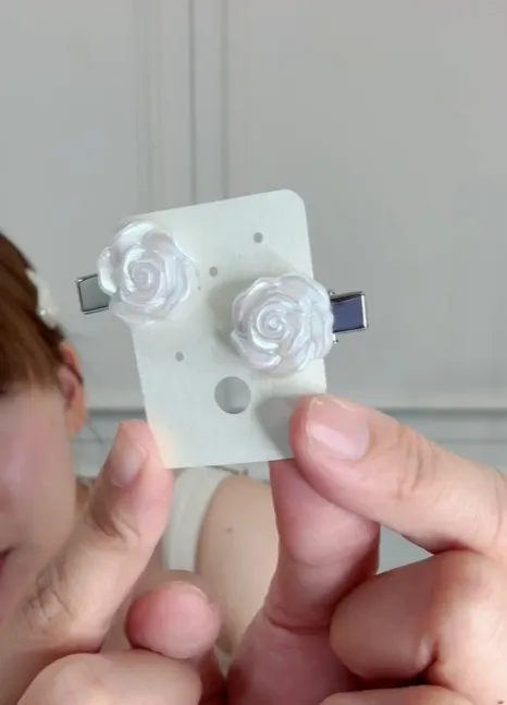 QH144韓系純白玫瑰髮夾(單個)