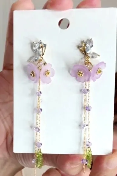QH171美鑽蝶翅紫花垂墜耳環 耳針 耳夾(矽) 官網價$360 永恆甜甜價$330
