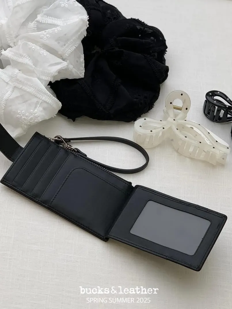 牛皮 實體質感很好 拉環皮繩 拉鍊閉合 卡片夾層