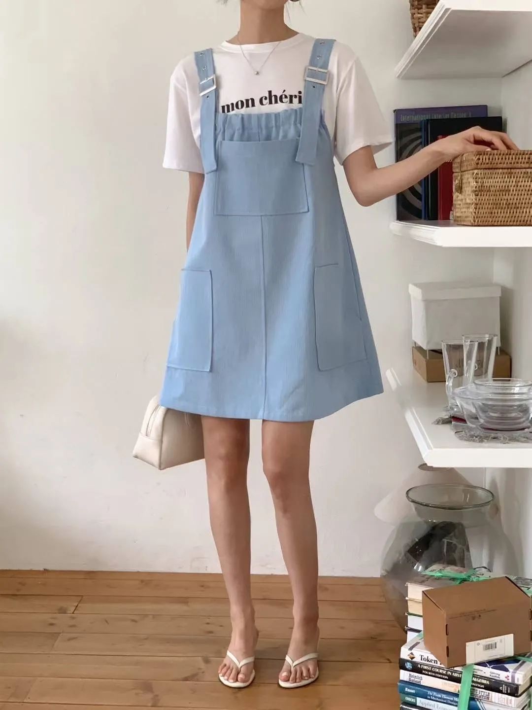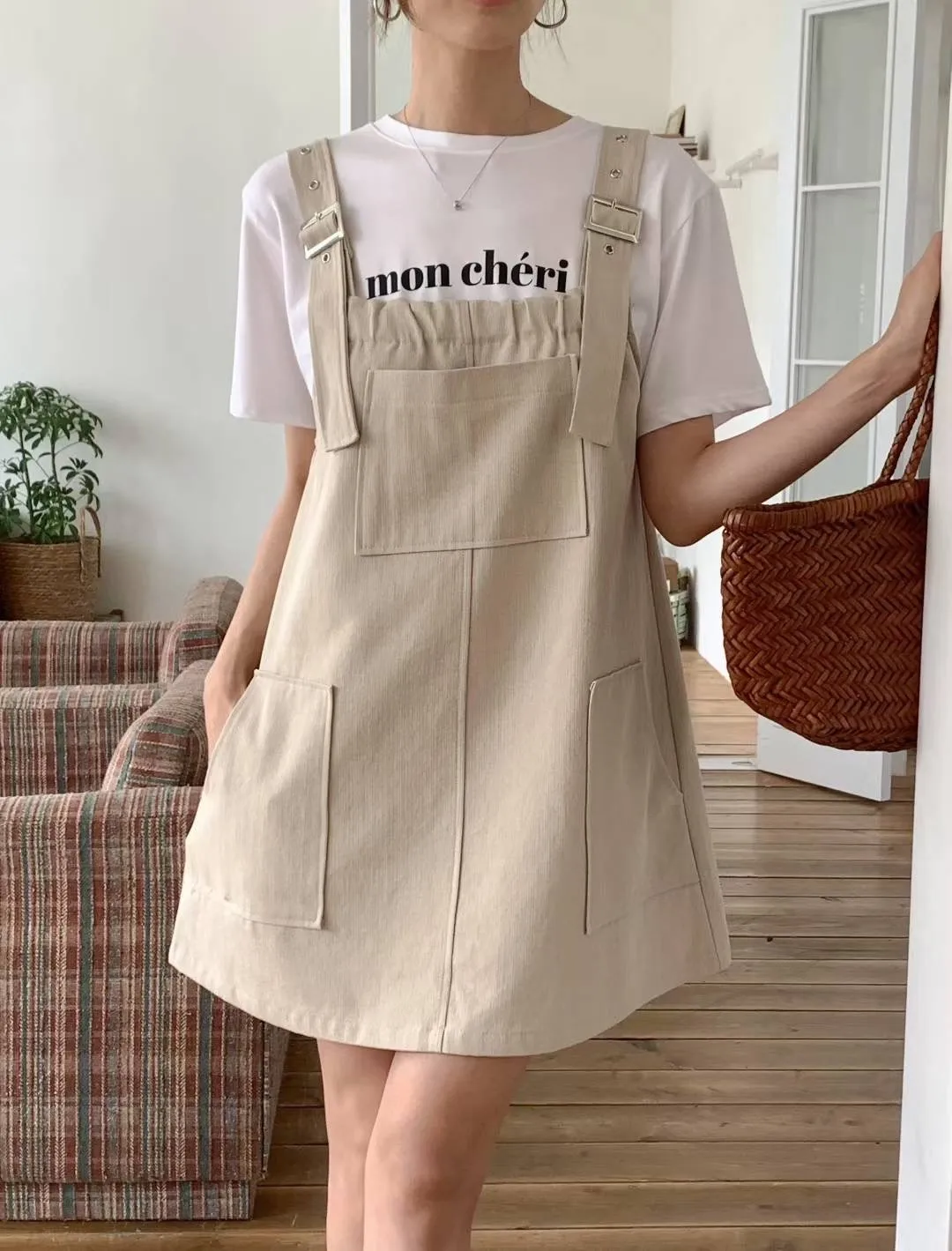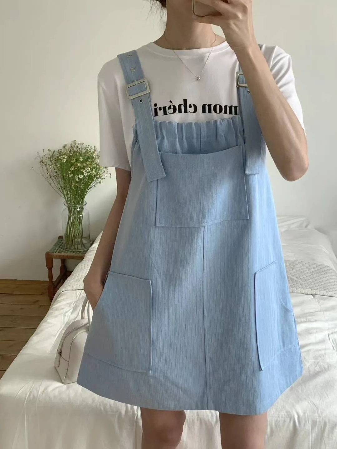 棉 非常薄款 透氣舒適 肩帶可調 有口袋 Aline順身顯瘦 可愛胸前大口袋