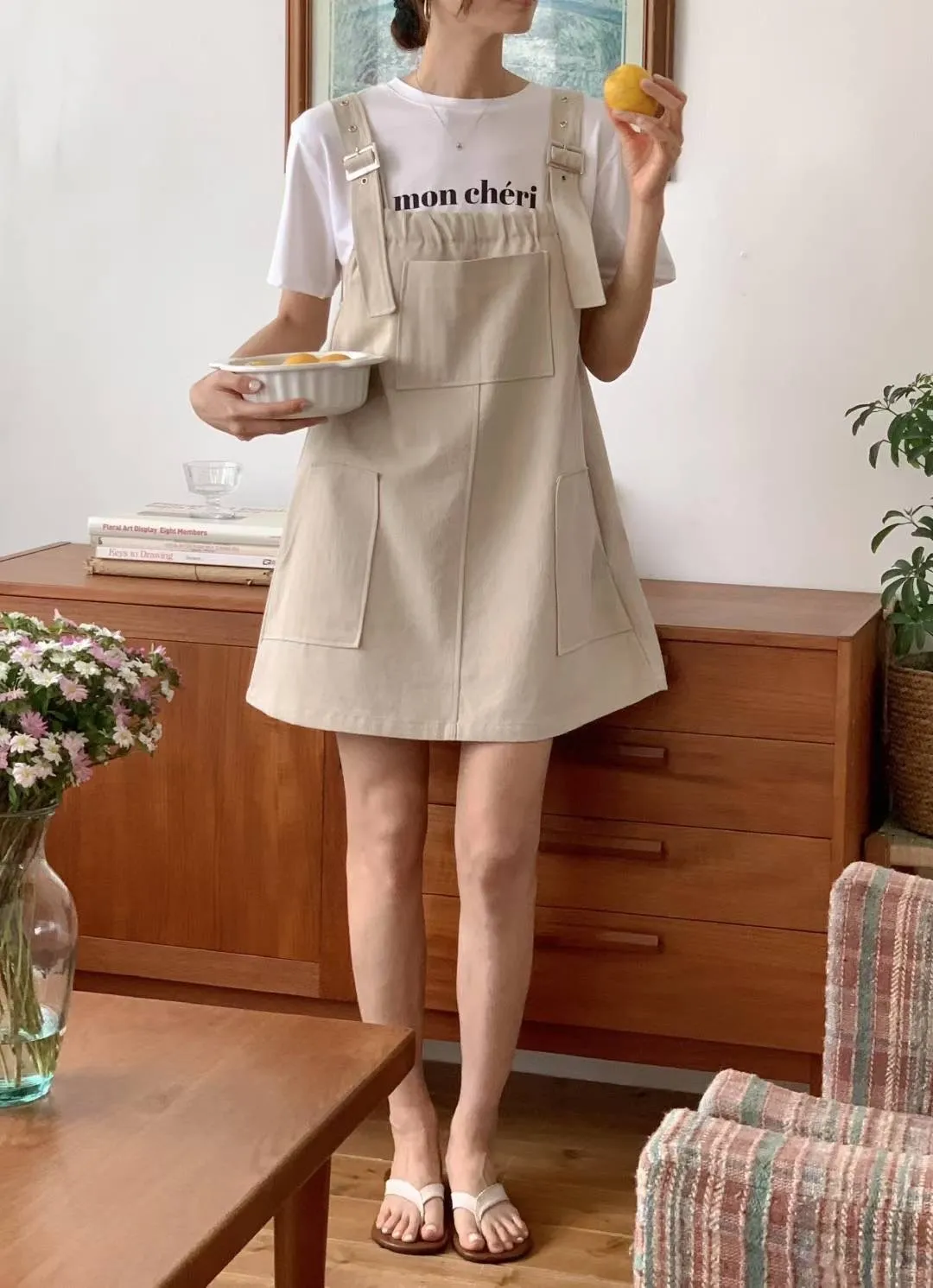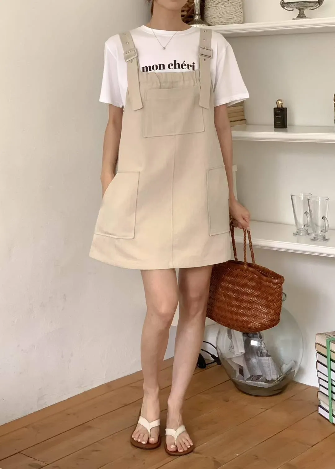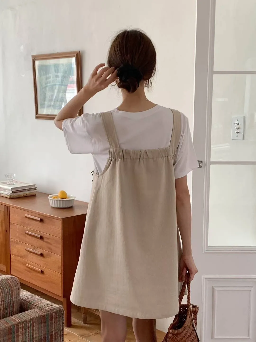 棉 非常薄款 透氣舒適 肩帶可調 有口袋 Aline順身顯瘦 可愛胸前大口袋