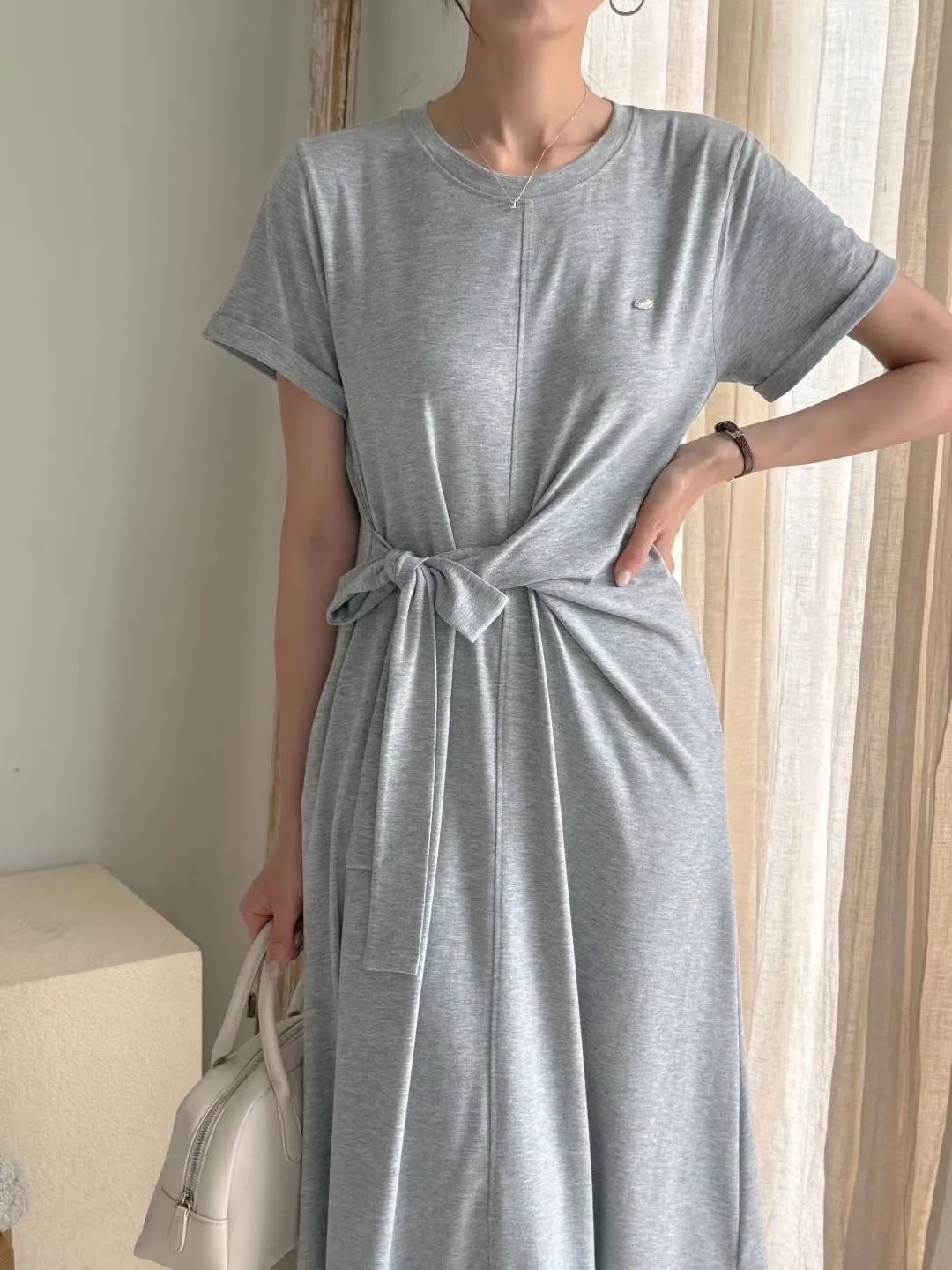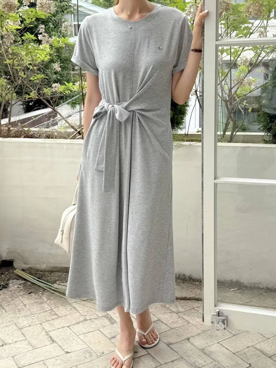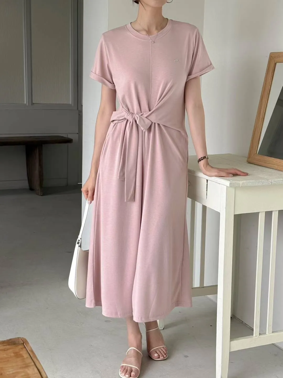 棉+聚酯+彈力 親膚舒適 有口袋 細腰造型扭結綁帶 彈性舒適 不貼身