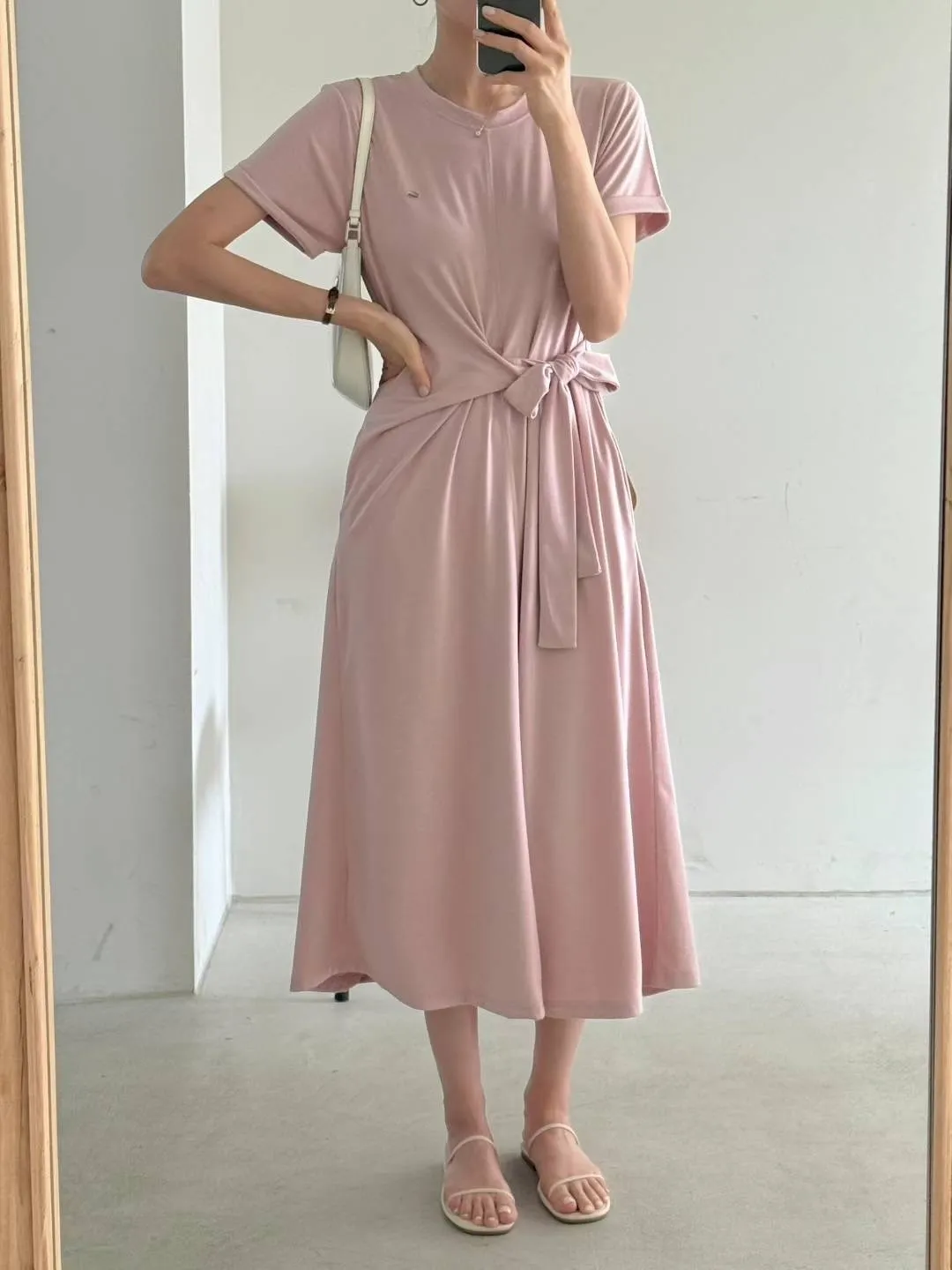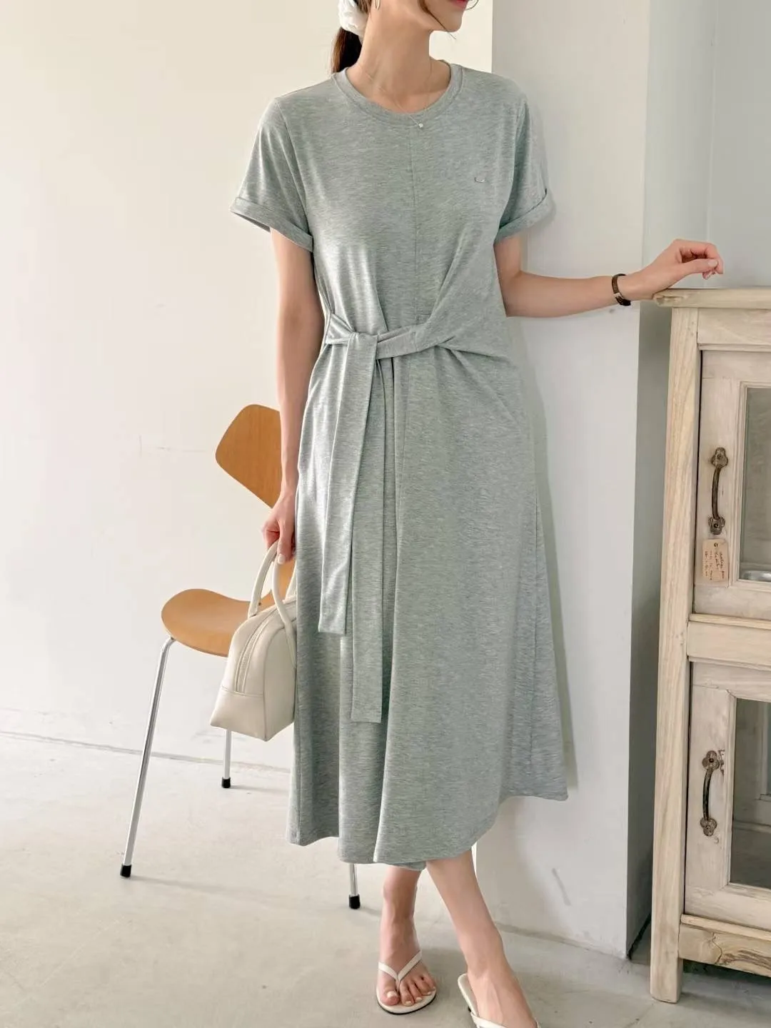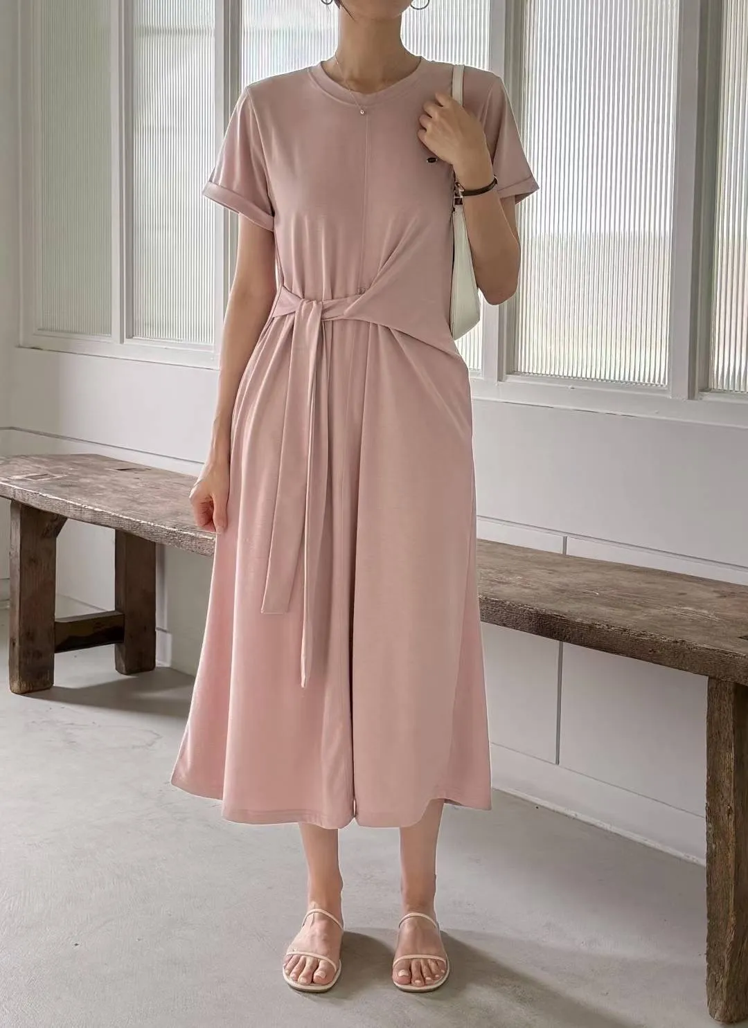 棉+聚酯+彈力 親膚舒適 有口袋 細腰造型扭結綁帶 彈性舒適 不貼身