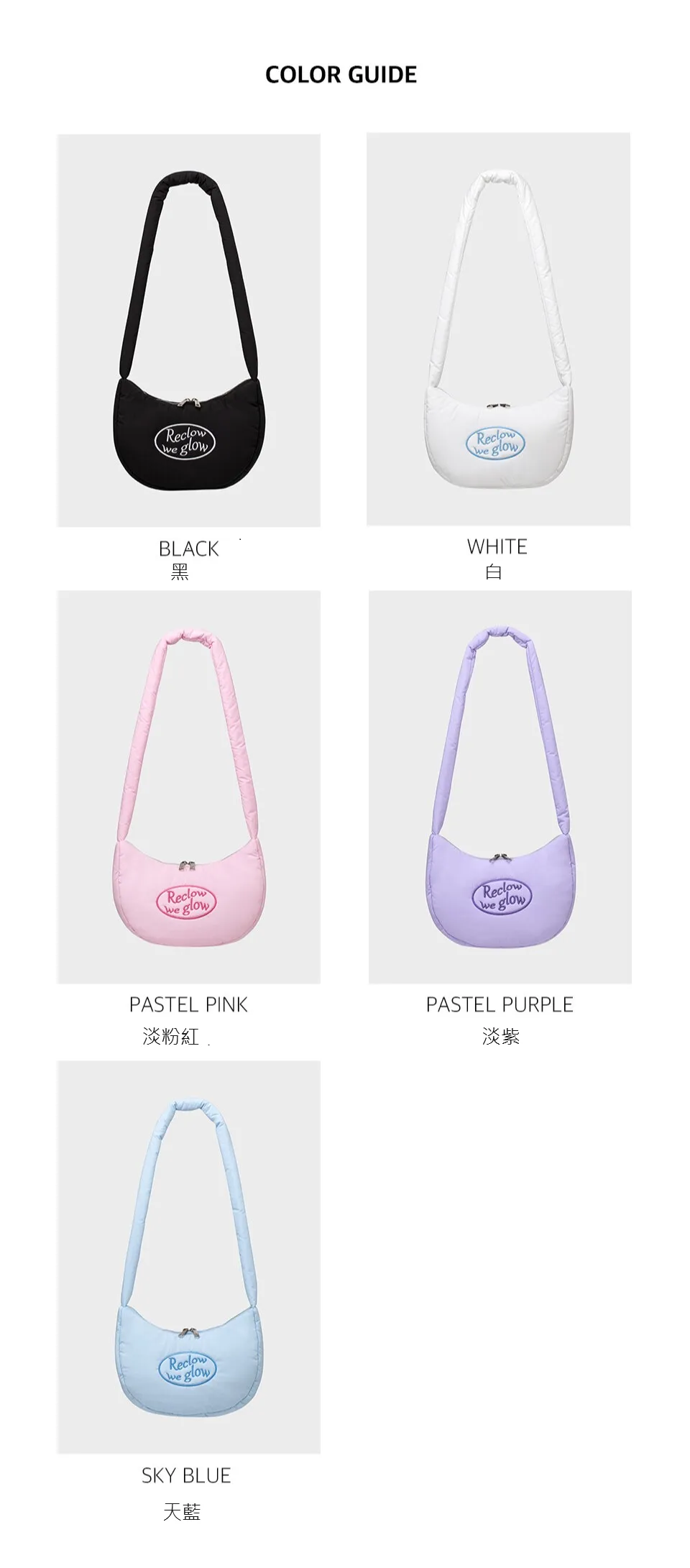 RECLOW001糖果半月包淡粉紅色 天藍色 淡紫色 白色 黑色 售價$2380