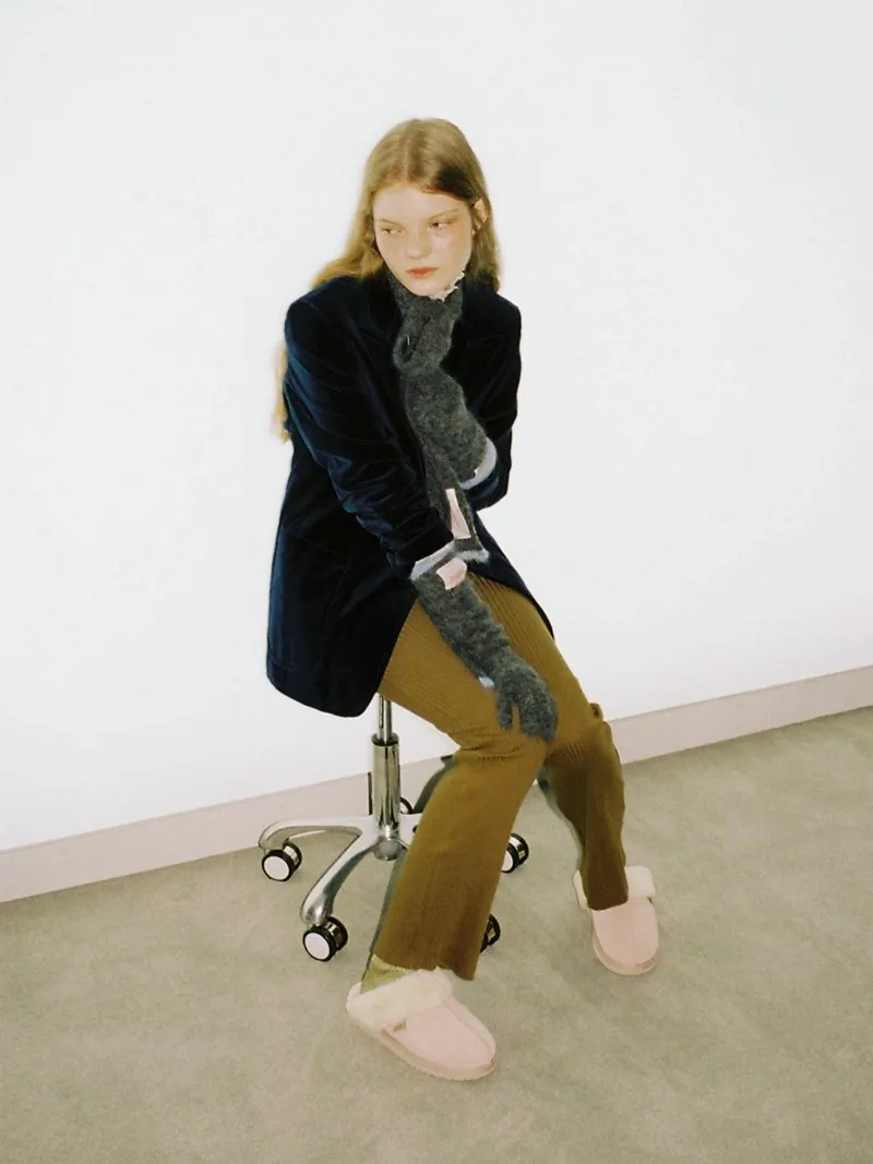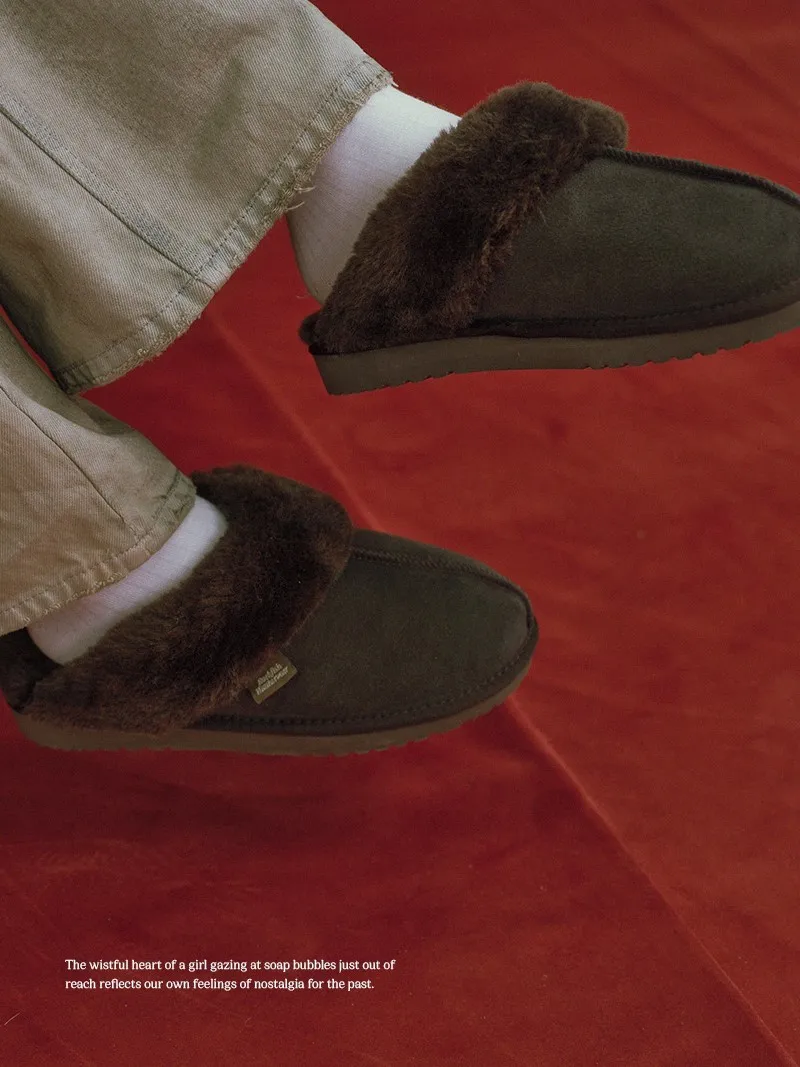 擁有精緻縫線細節經典設計的毛拖鞋產品,