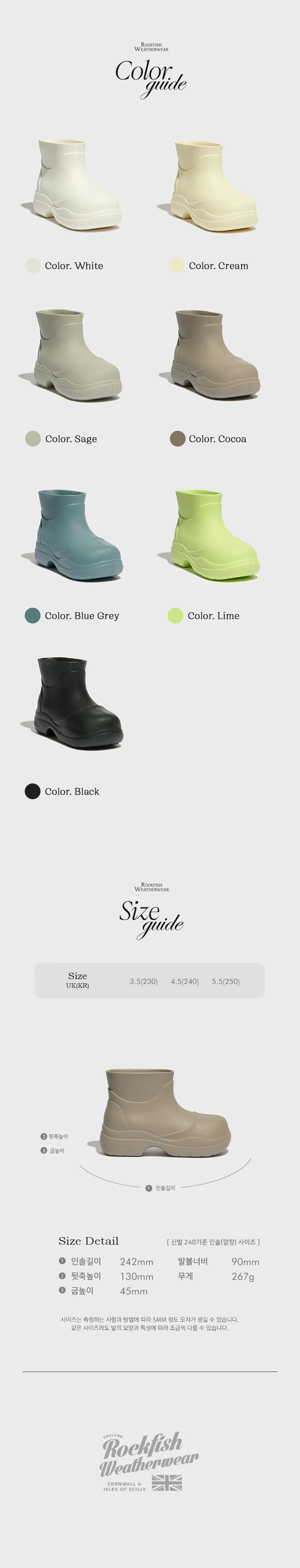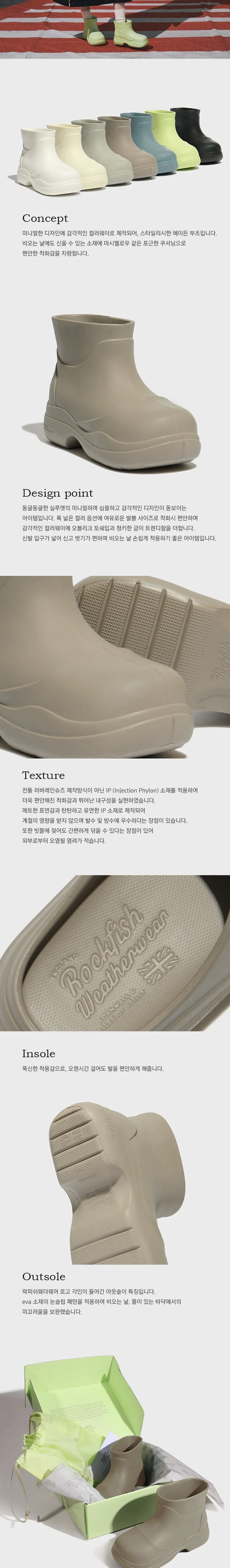 rockfish015簡約HAYDEN雨靴 白 黑 米白 萊姆 藍灰 可可亞 卡其綠 230-250(無半號)簡約的設計配以感性的彩繪製成,時尚的海登靴下雨天也可以穿上的棉花糖般的柔軟鞋墊展示舒適的穿著感鞋口較寬,穿脫方便即使被雨水浸濕,也具有可簡便擦拭的優點因此不用太擔心被外部污染採用IP材質而非傳統橡膠雨鞋製作方式實現更加舒適的穿著感和卓越的耐久性以下為米白穿搭👇🏻 以下為黑穿搭👇🏻 以下為白穿搭👇🏻 以下為藍灰穿搭👇🏻 以下為萊姆穿搭👇🏻 以下為可可亞穿搭👇🏻 以下為卡其綠穿搭👇🏻