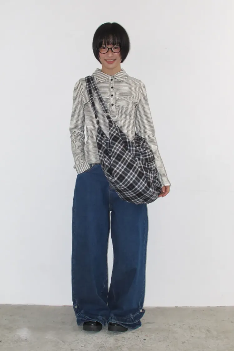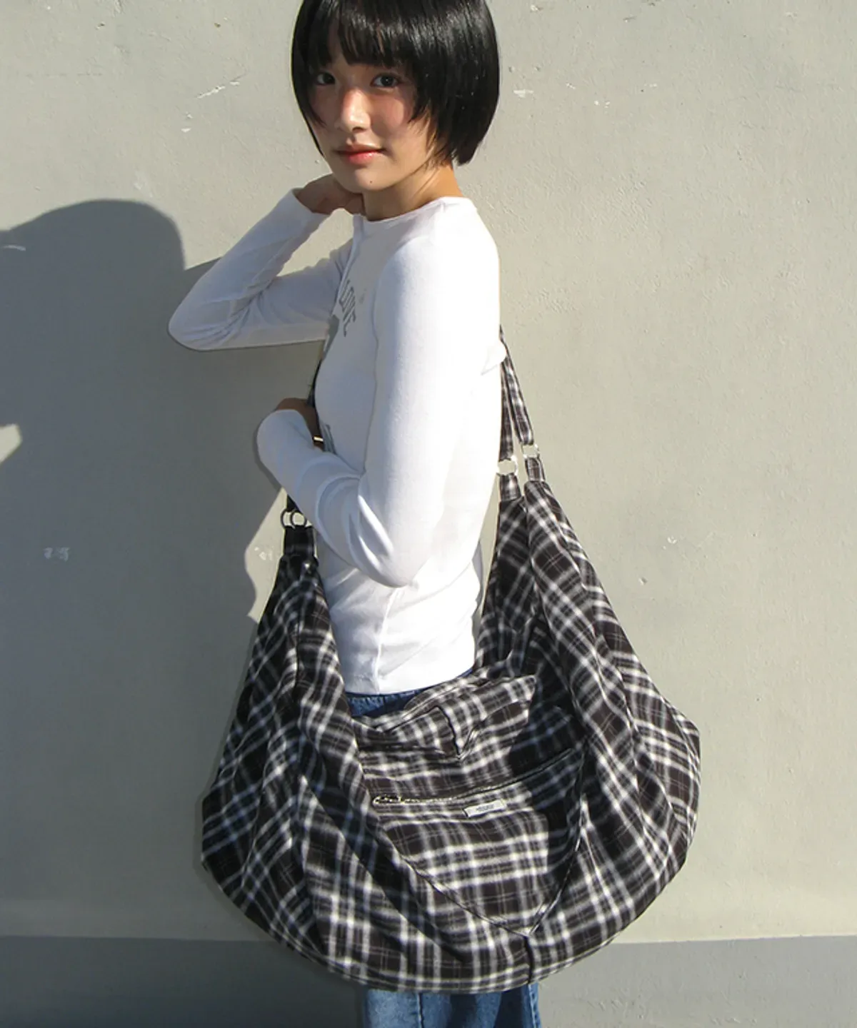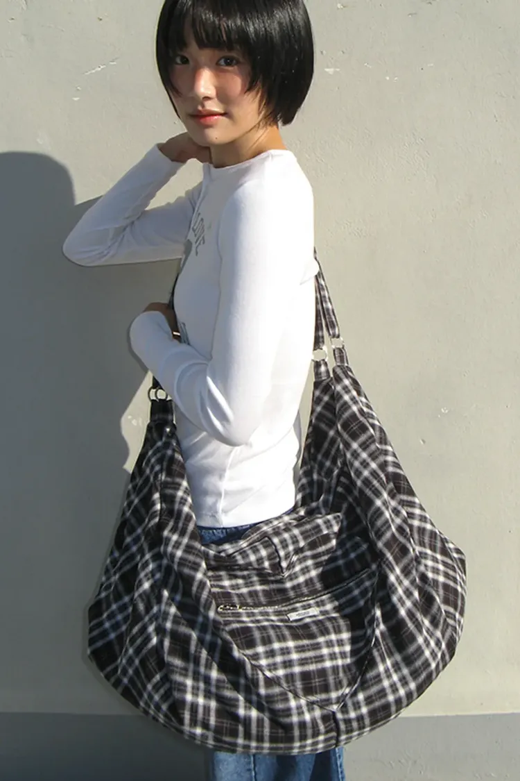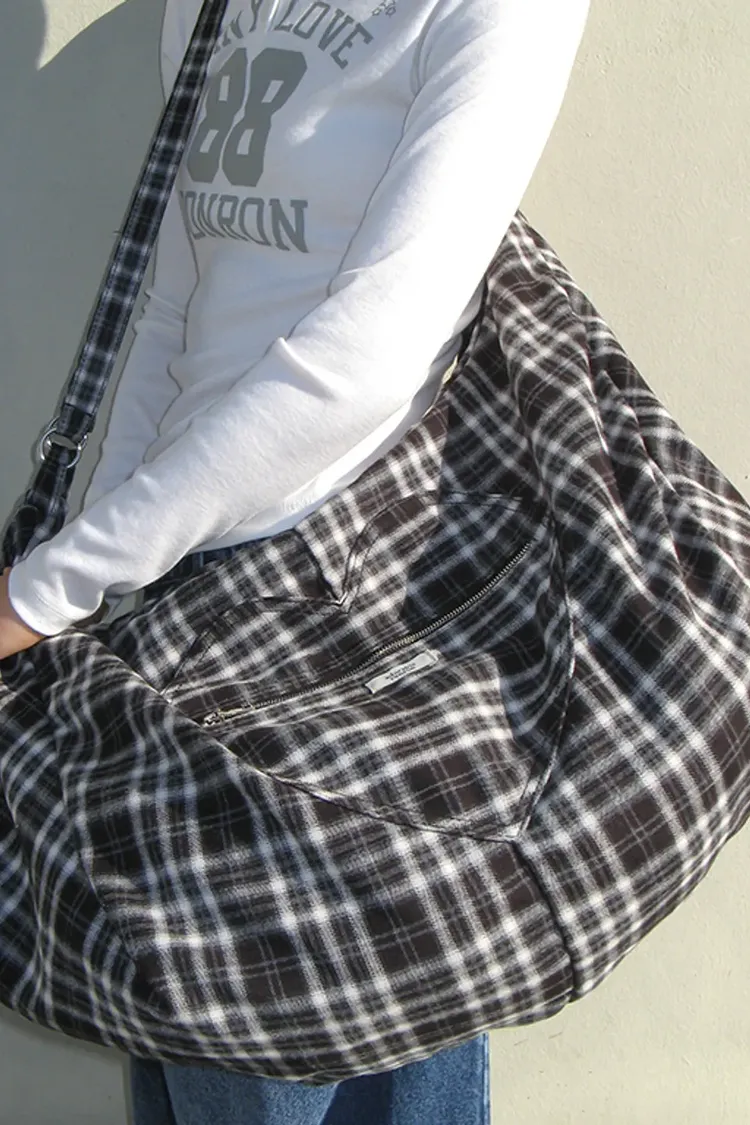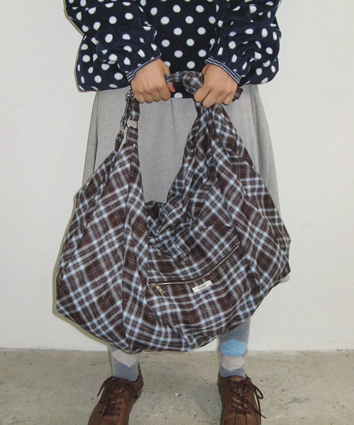 Ron037 愛心格紋兩用旅行袋 藍 黑 售價$2650