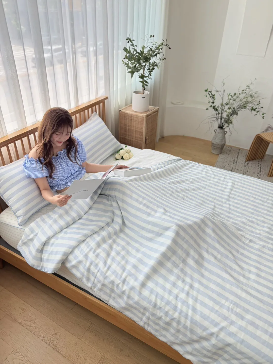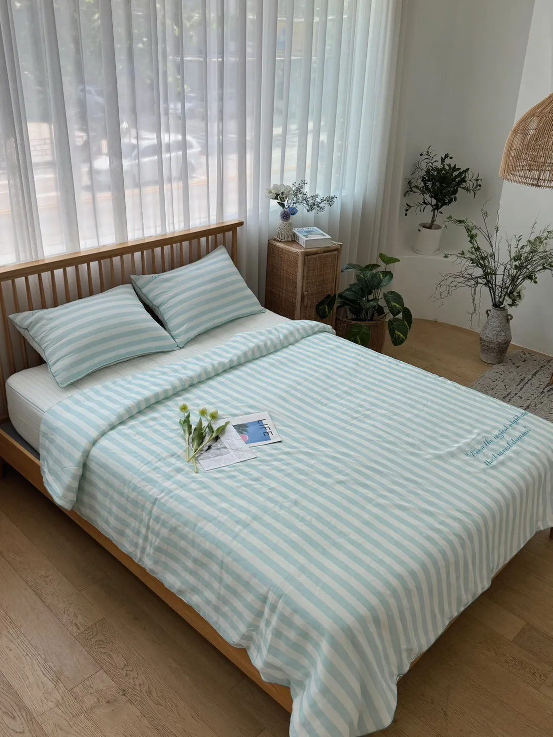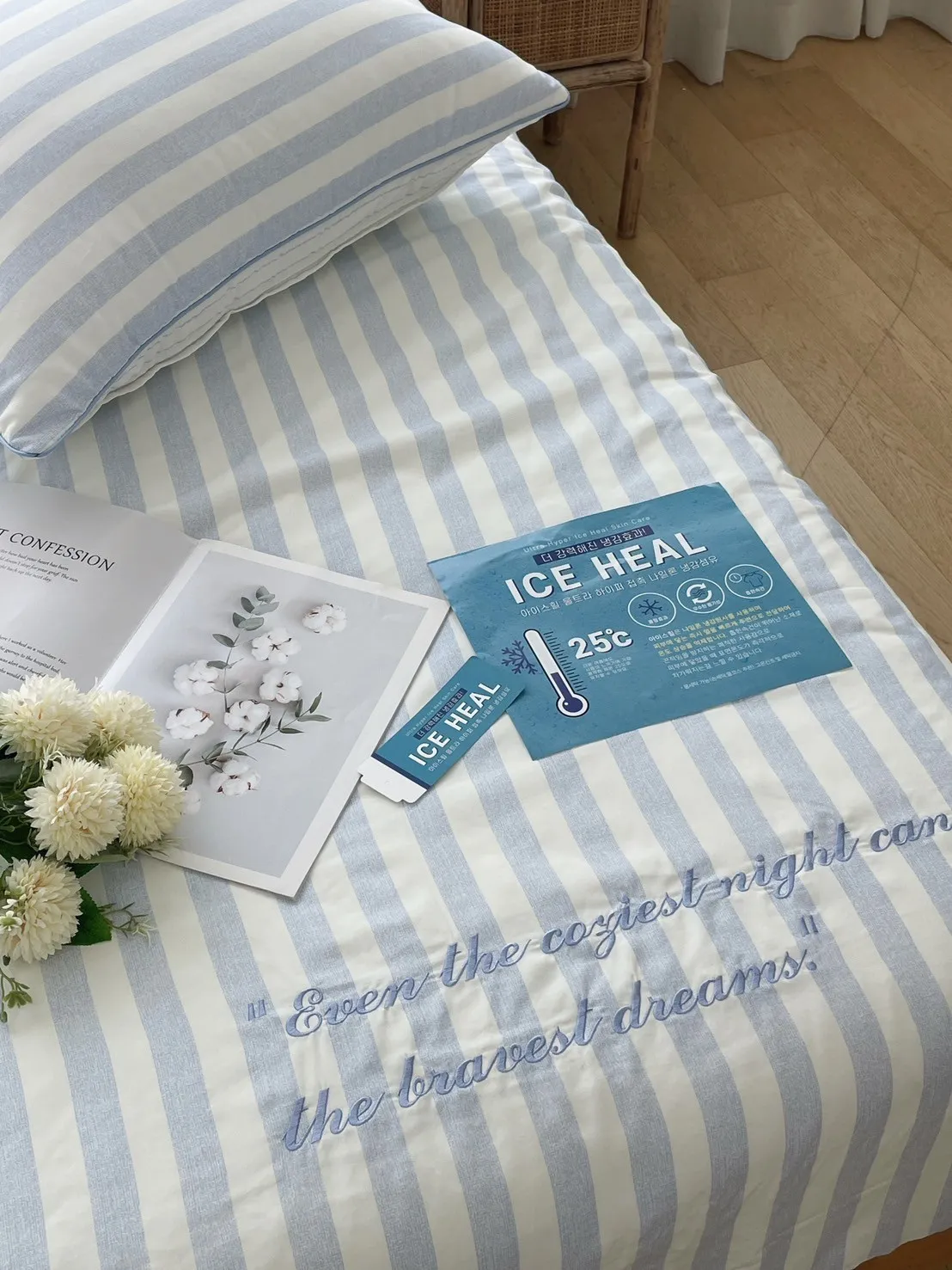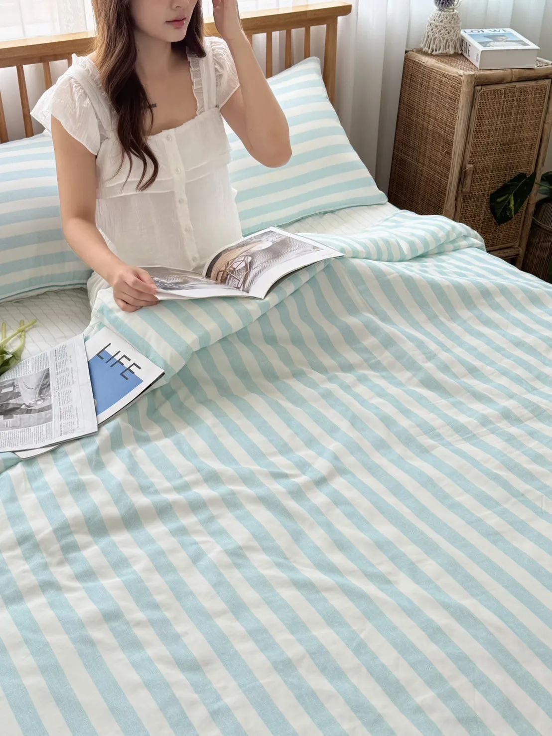 SA001涼感冰塊-7.9度韓國蠟筆條紋棉被 藍 奶茶 薰衣草 單人$1580 雙人$1980