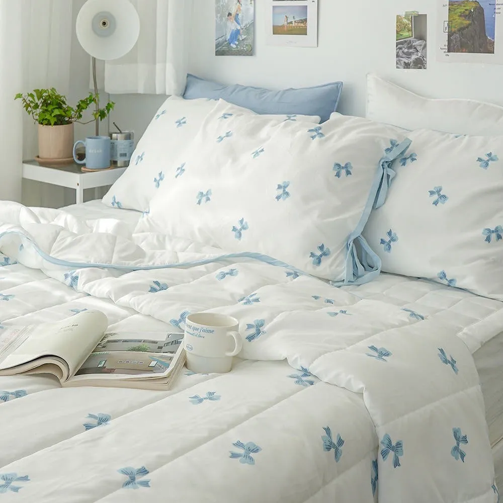 SA006冷感抗過敏莫代爾蝴蝶結棉被 藍 粉 單人$980 雙人$1440