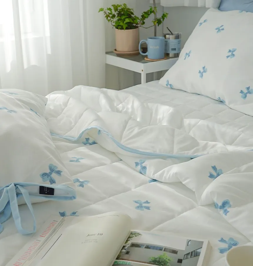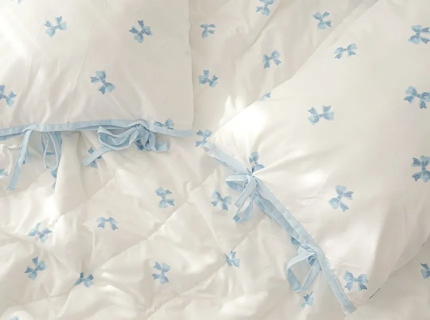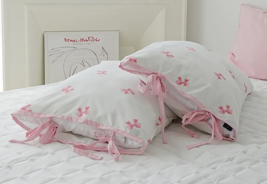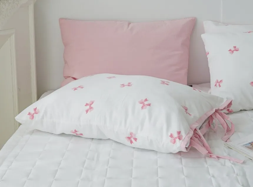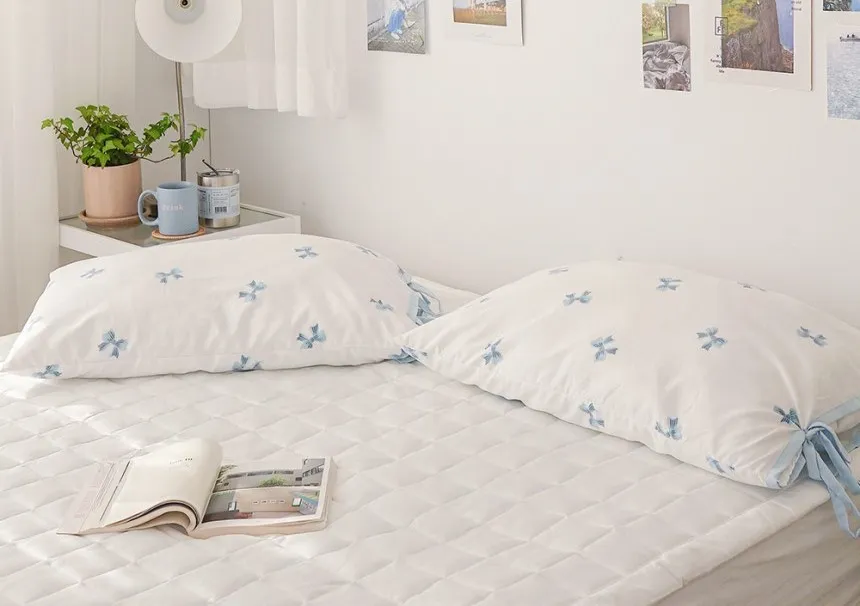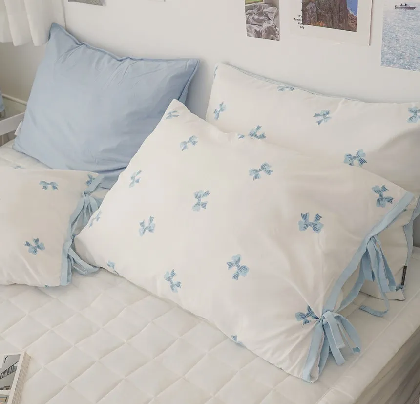 SA007冷感抗過敏莫代爾蝴蝶結枕頭套(側綁帶) 藍 粉 單個$330 兩個$560