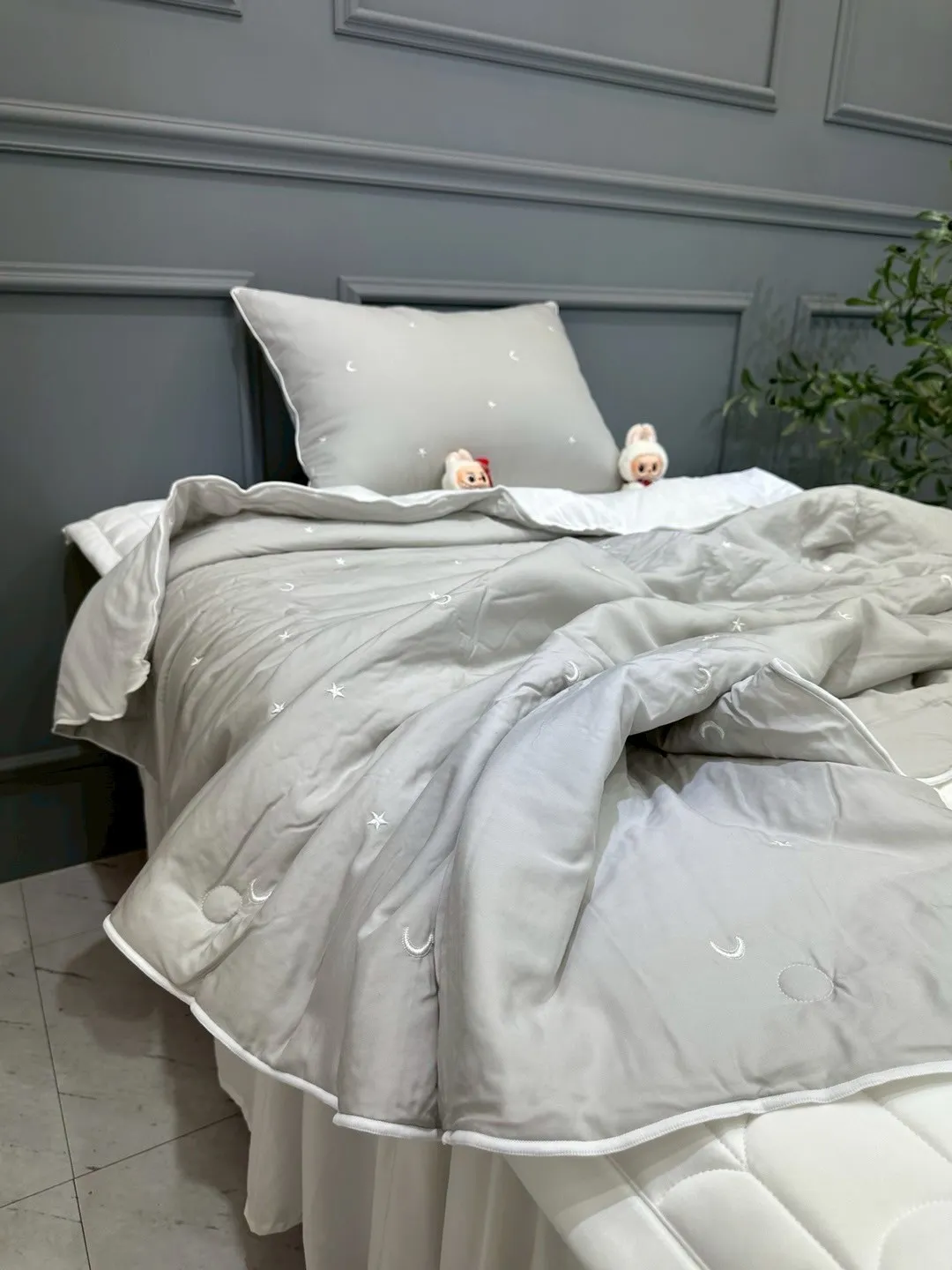 SA021涼感星星刺繡莫代爾枕頭套 白 綠 灰 單個$370 兩個$640