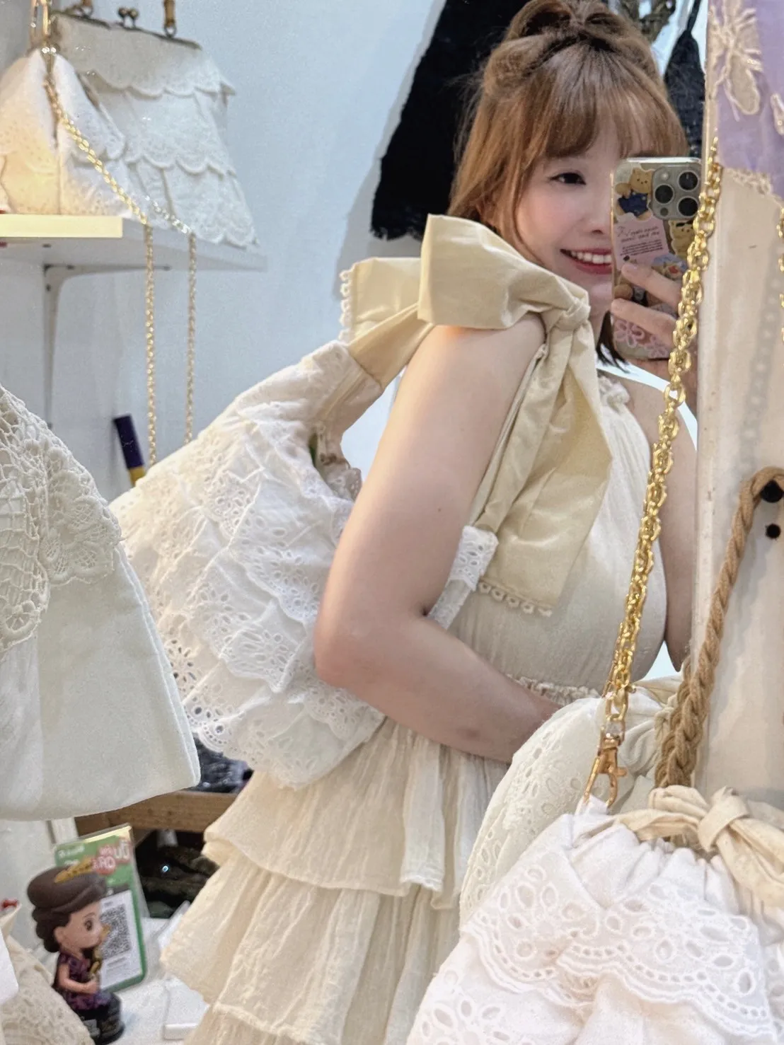SG035綁帶裙襬四層蕾絲包包(大款) 白 米 黑 官網價$690 線上價$660