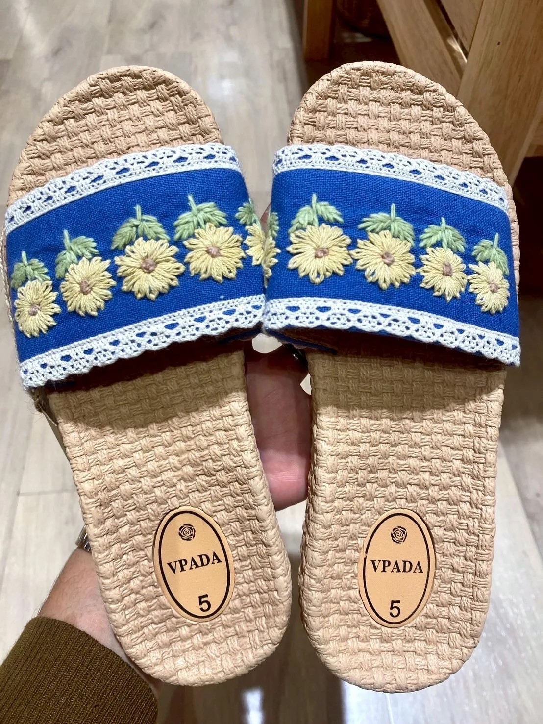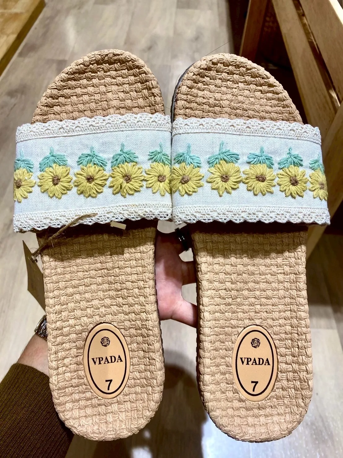 SG159精緻刺繡小花蕾絲拖鞋 米 藍 5 6 7 8 官網價$849 永恆甜甜價$799