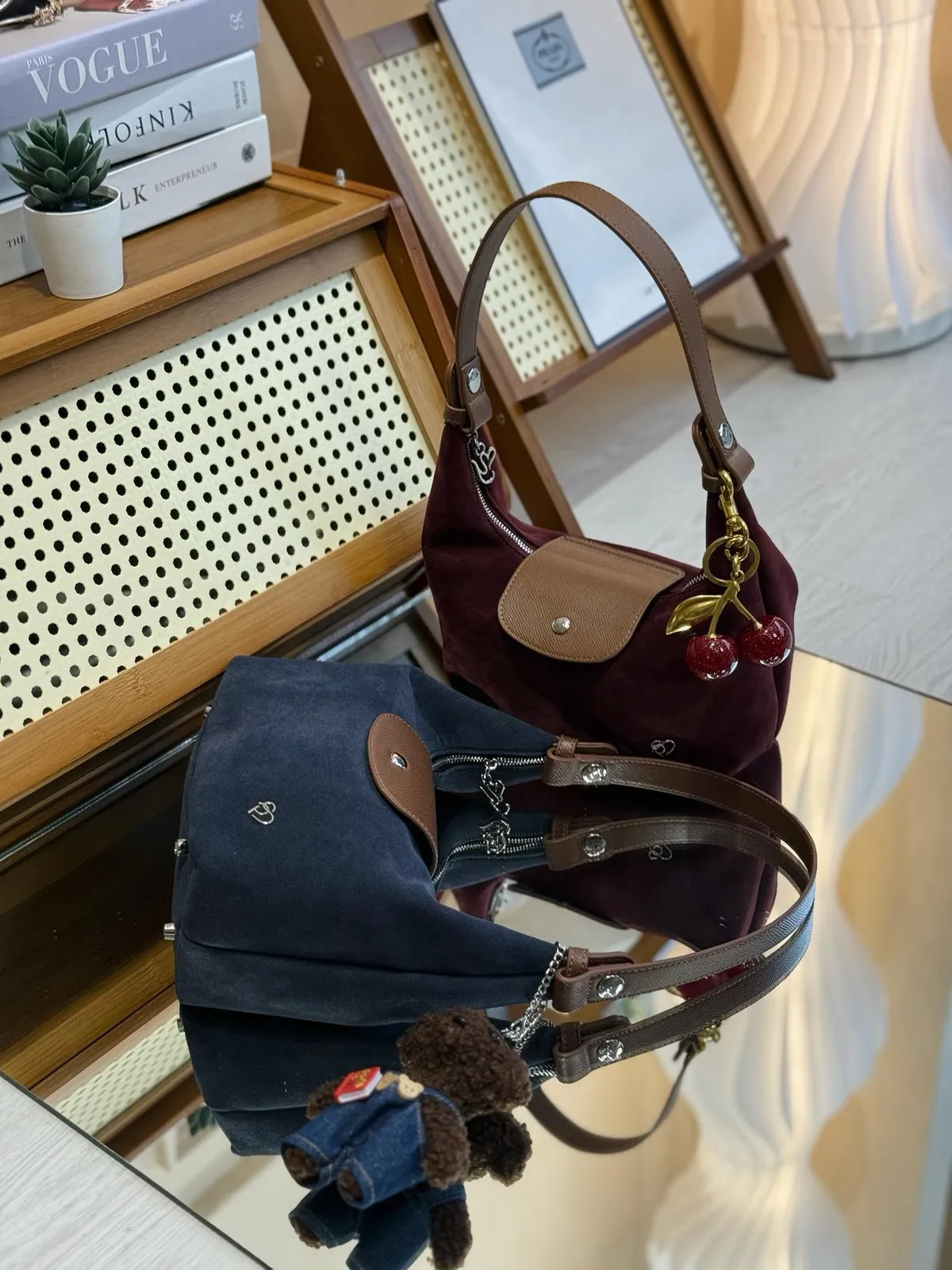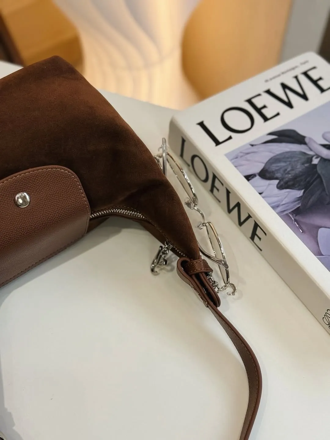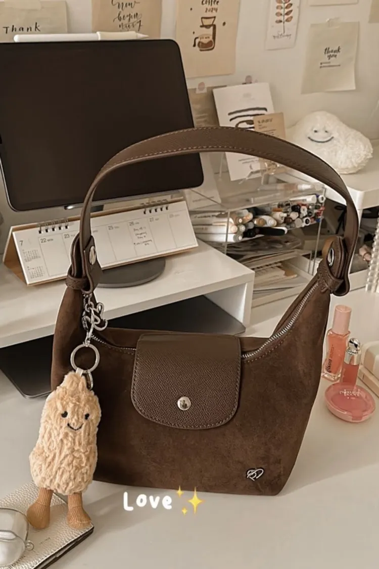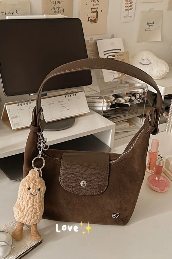 麂皮 拉鍊磁吸釦 金屬品牌logo 底部支撐金屬腳