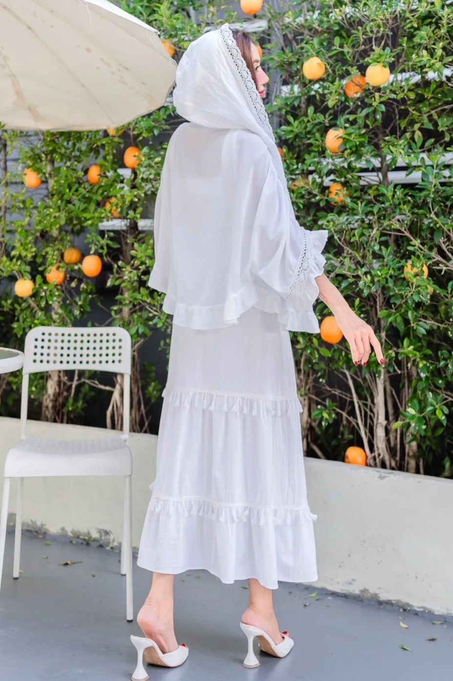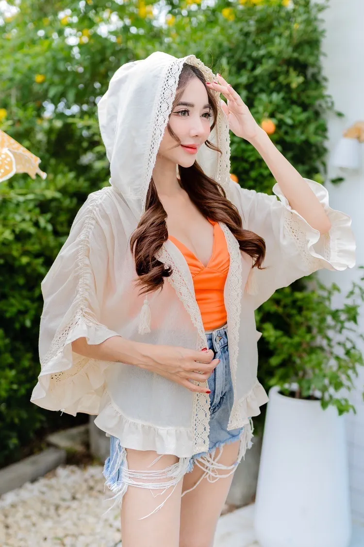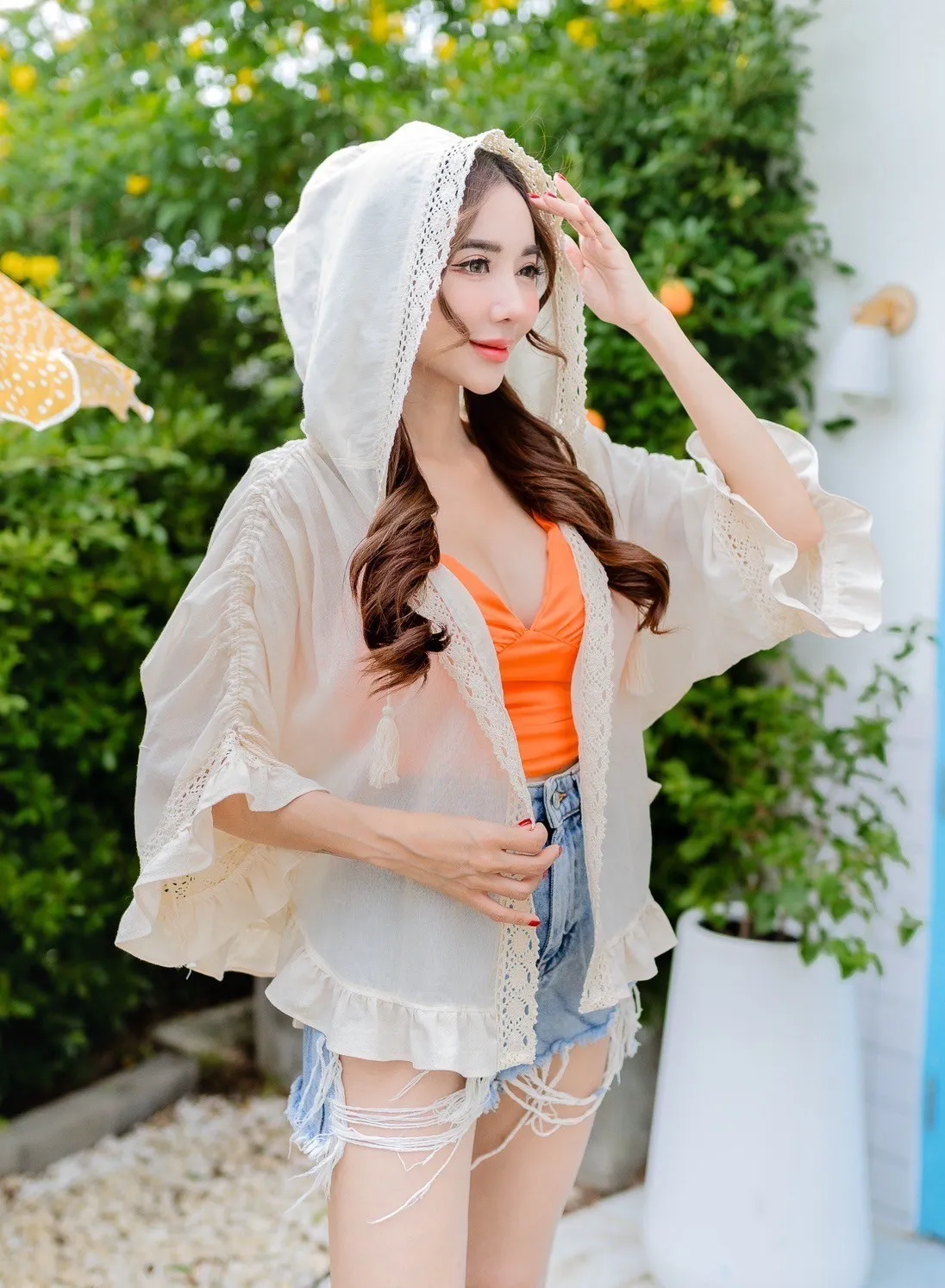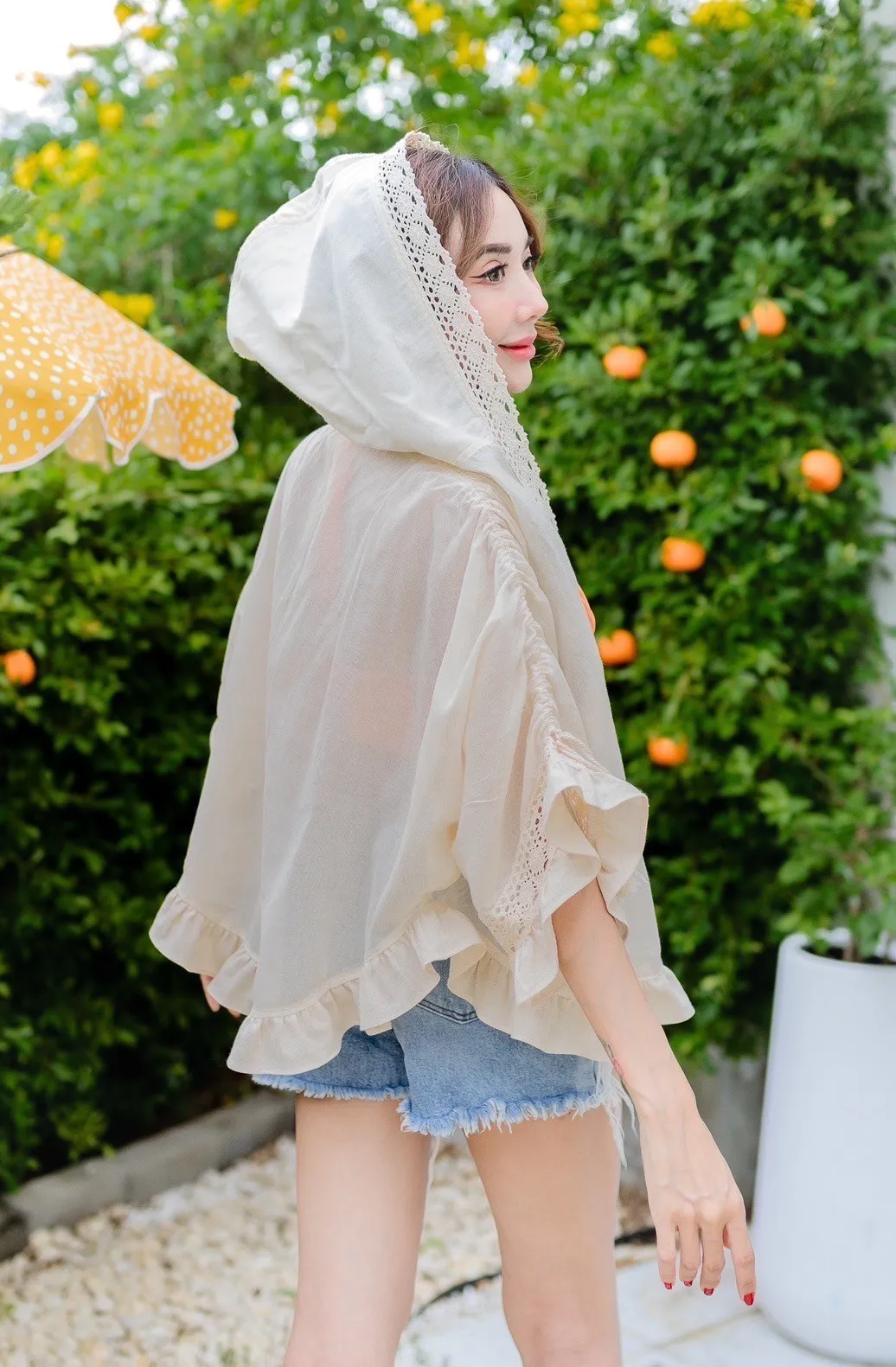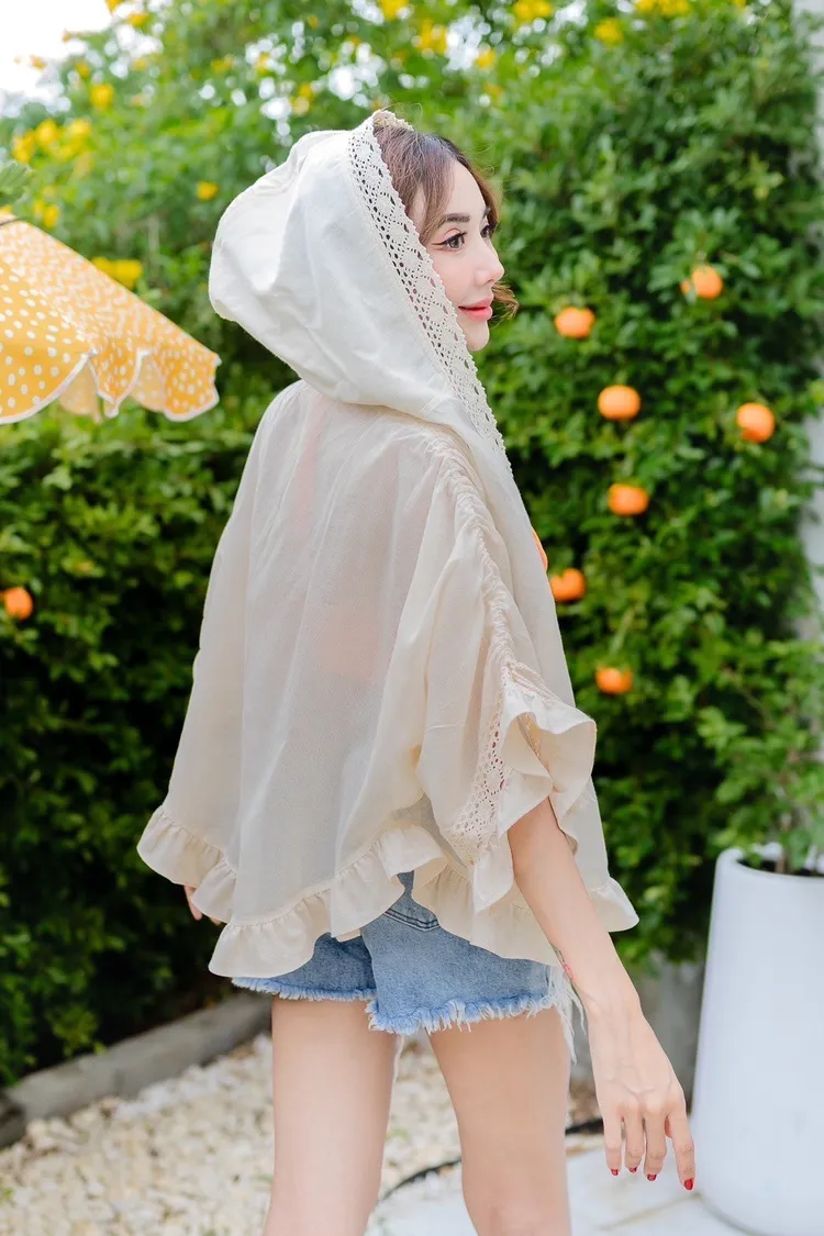 棉+亞麻 親膚舒適 精緻布蕾絲 連帽設計 荷葉下擺