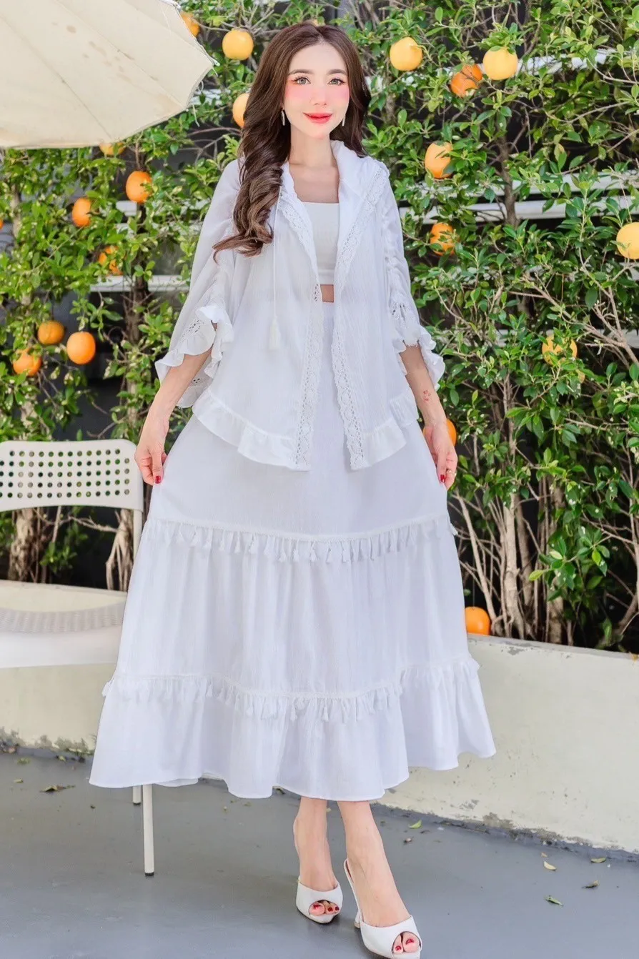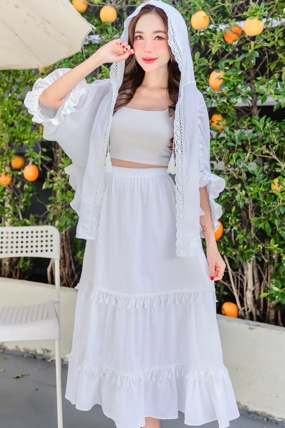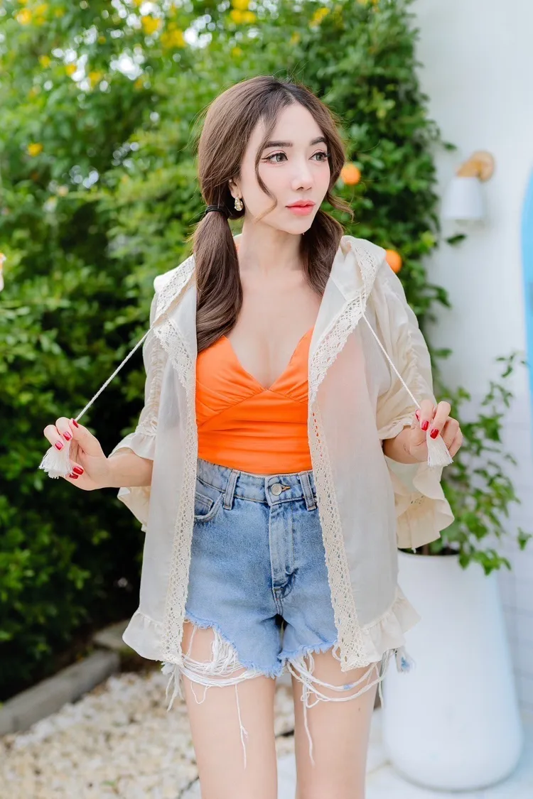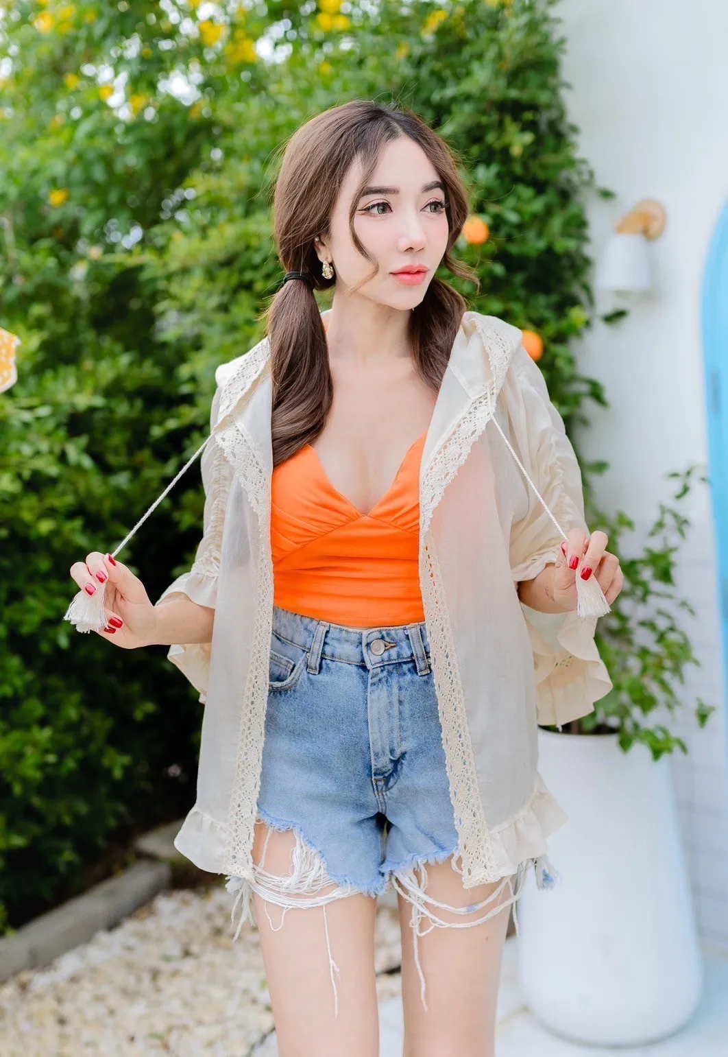 棉+亞麻 親膚舒適 精緻布蕾絲 連帽設計 荷葉下擺