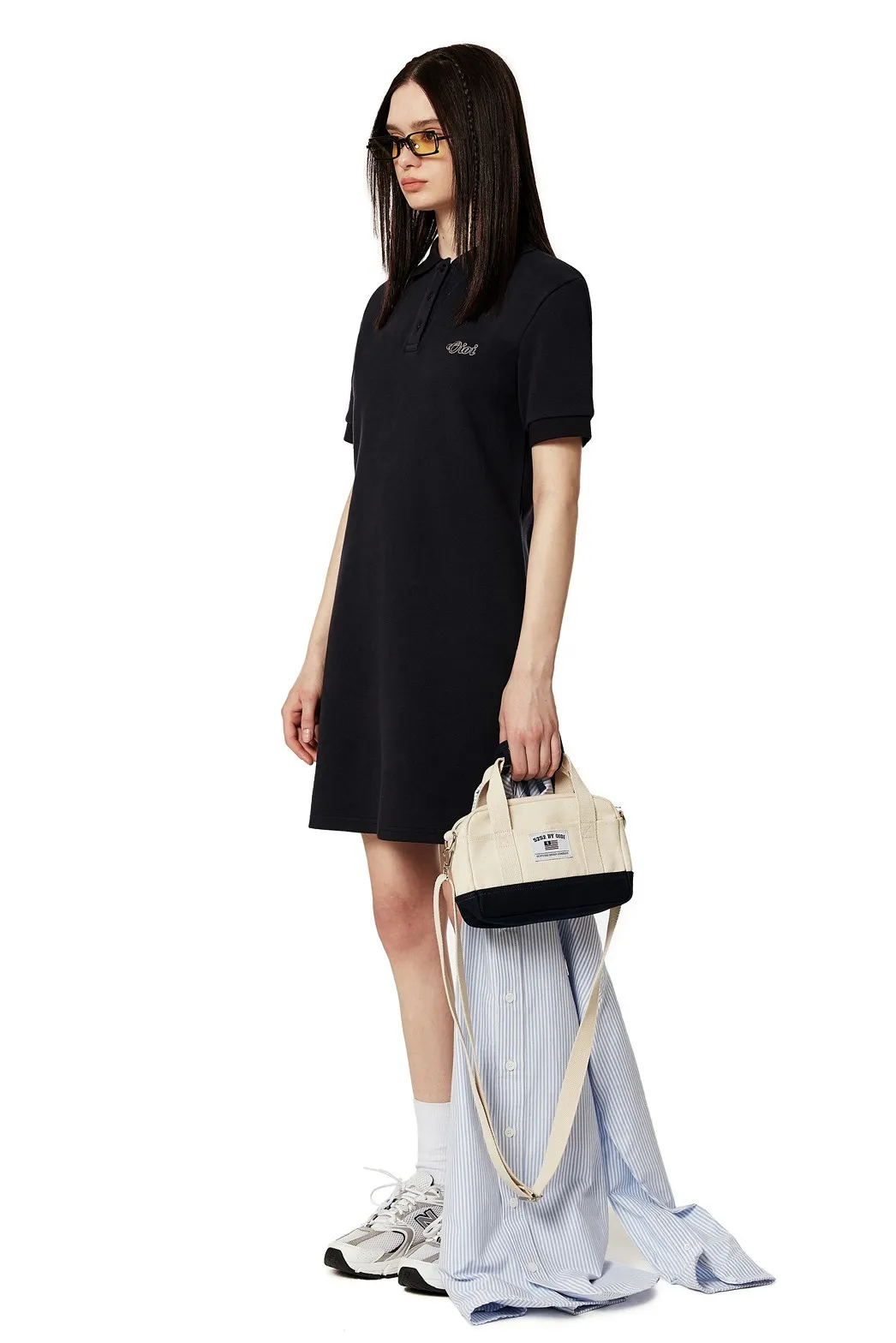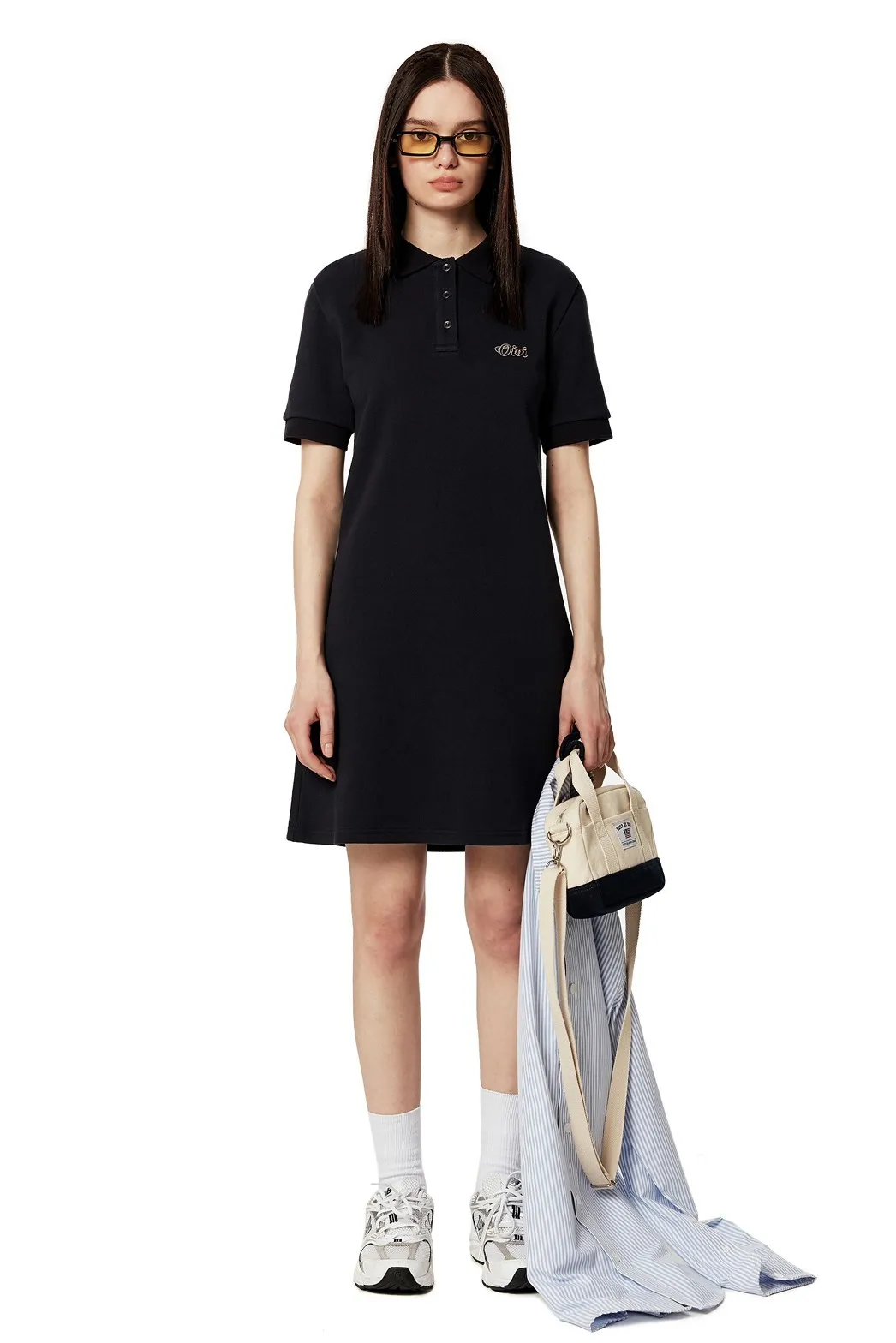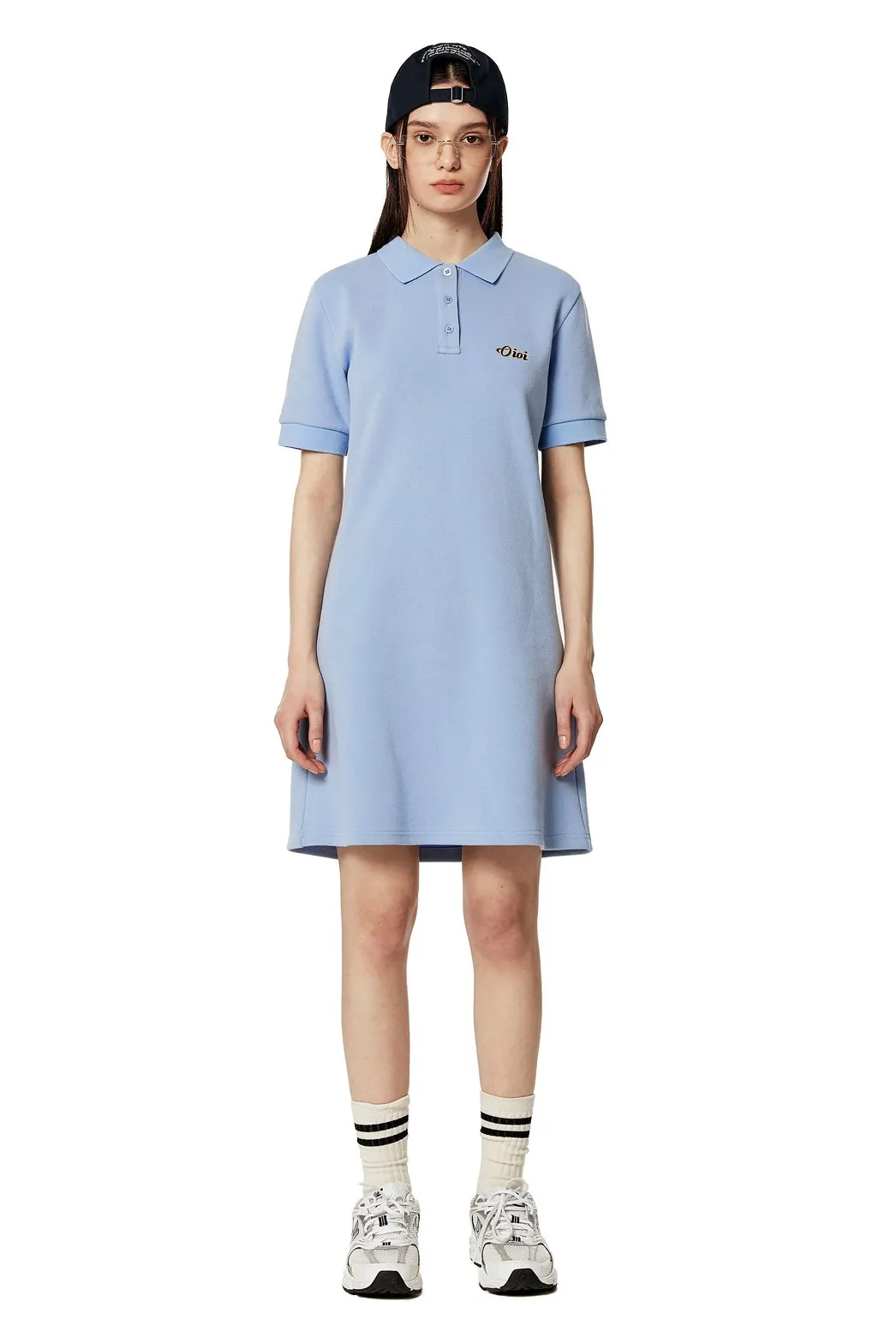 SM123高級感OIOI刺繡polo領連身裙 淺藍 深藍 XS S M $1490