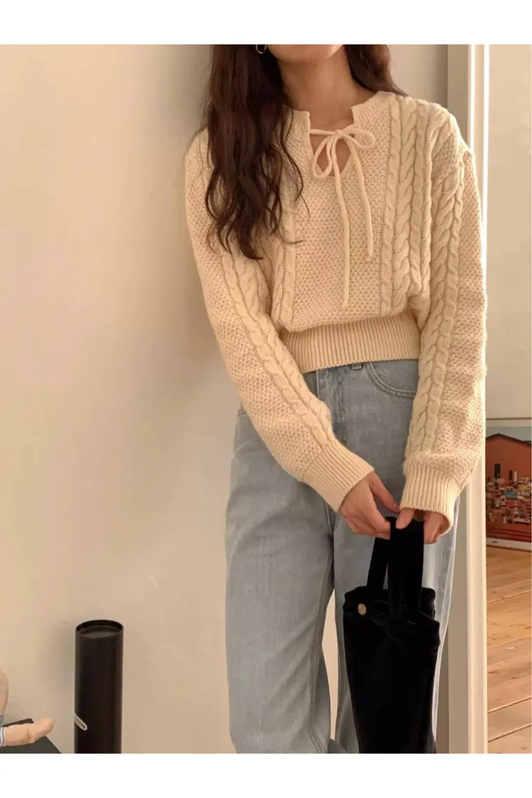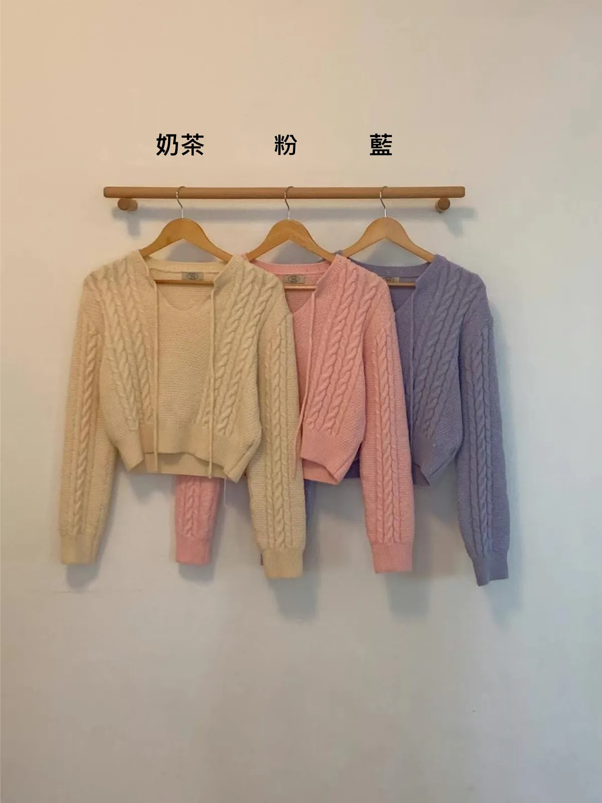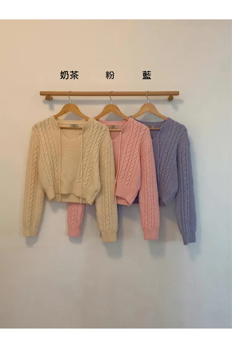 SS122新款胸綁帶側麻花針織衫 奶茶 粉 藍 官網價$890 線上價$860
