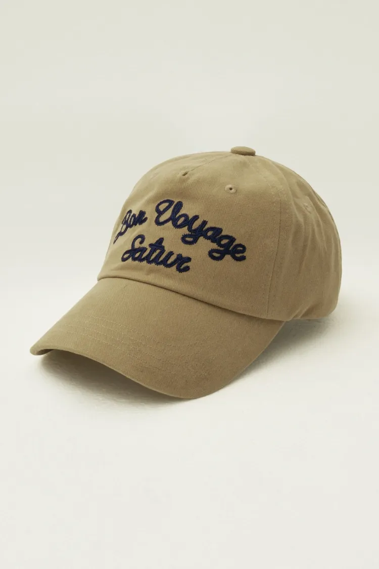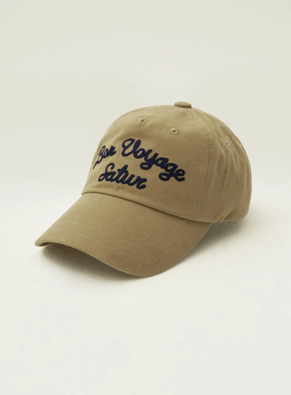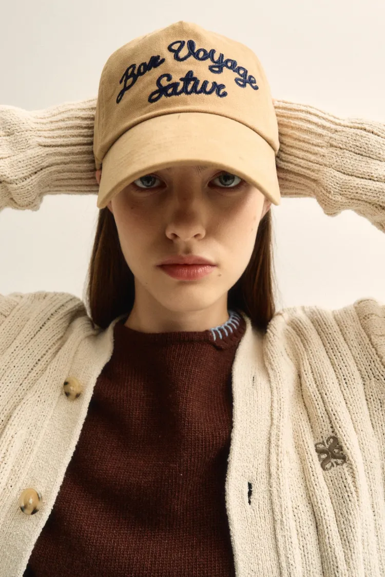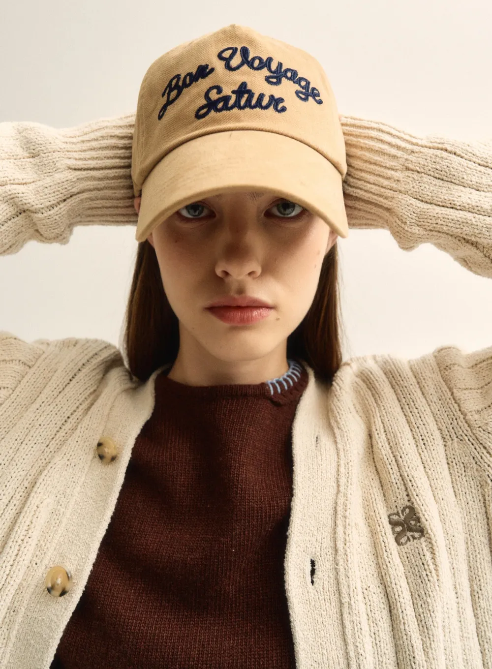 Satur027 Bon Voyage棒球帽 奶茶 卡其綠 原價$1550 特價$1080柔軟復古的材質五片式拼接設計,打造休閒時尚的輪廓帽冠前部飾有「Bon Voyage」鏈條刺繡圖案可調式扣環,配戴舒適整體厚度設計,打造更纖細的臉型布料:外層布料:100%純棉 / 襯裡:65%滌綸,35%純棉FREE 周長58高15帽簷寬8帽簷上長25為防止產品變形或損壞,請務必手洗以下顏色為,奶茶色 以下顏色為,卡其綠
