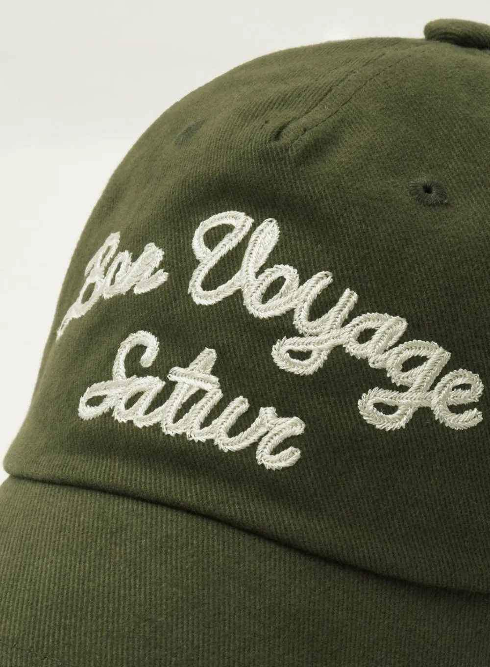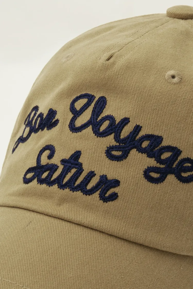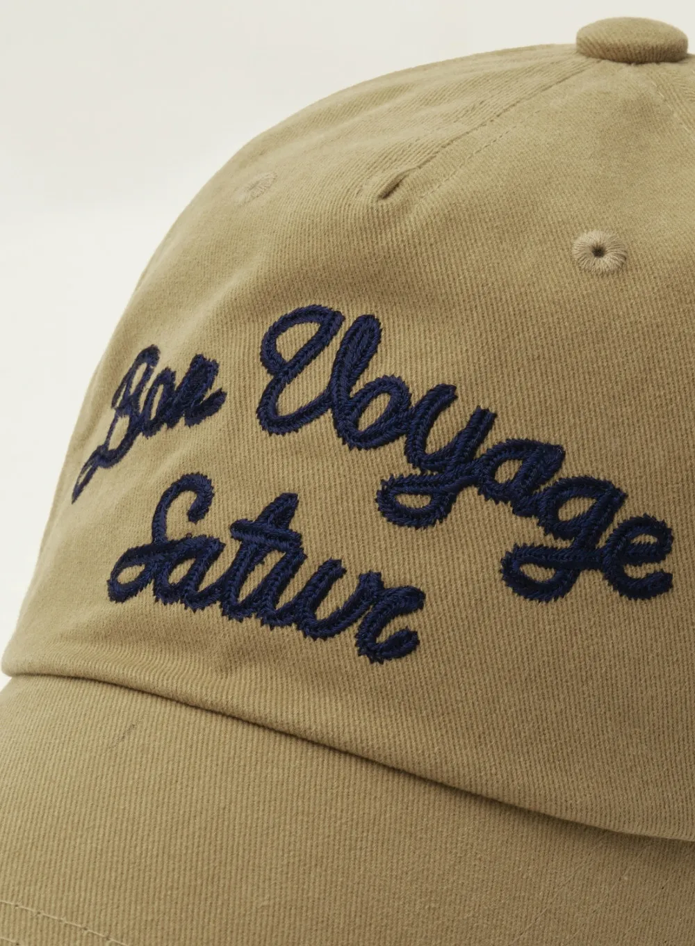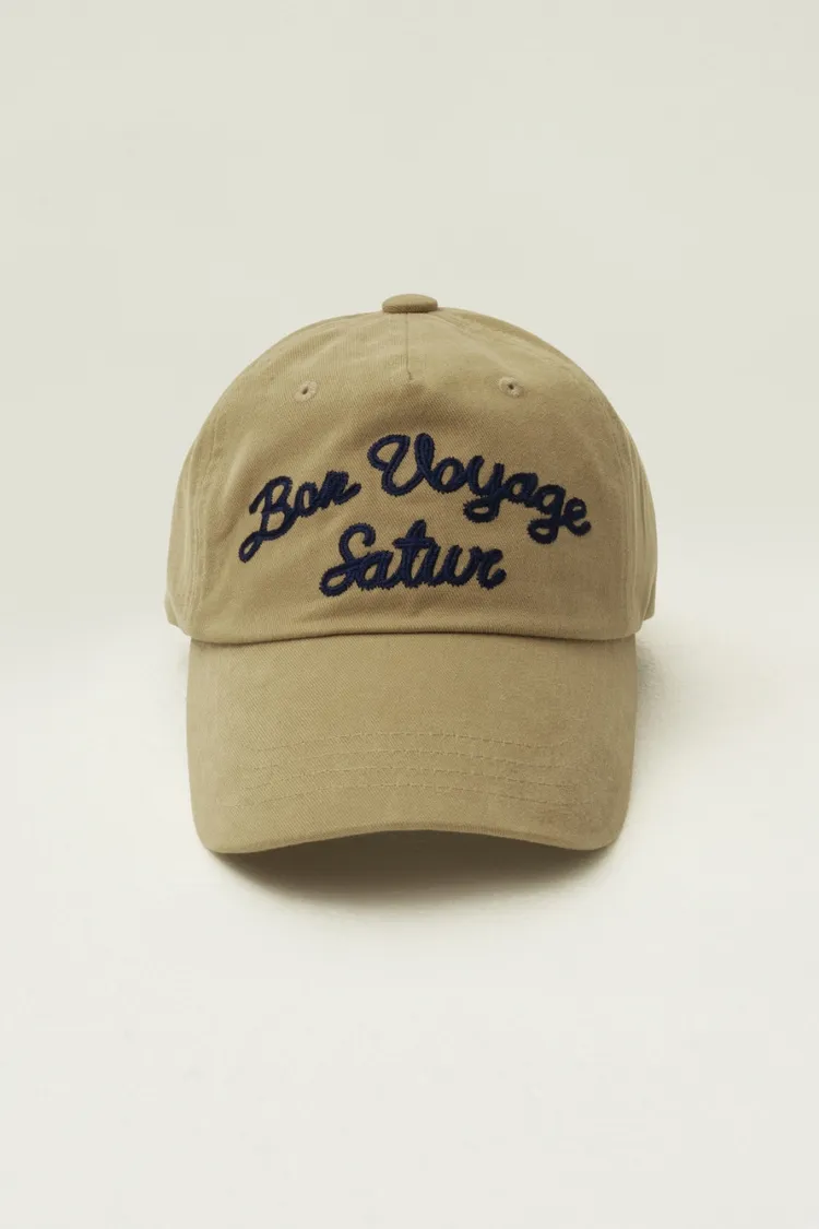 Satur027 Bon Voyage棒球帽 奶茶 卡其綠 原價$1550 特價$1080柔軟復古的材質五片式拼接設計,打造休閒時尚的輪廓帽冠前部飾有「Bon Voyage」鏈條刺繡圖案可調式扣環,配戴舒適整體厚度設計,打造更纖細的臉型布料:外層布料:100%純棉 / 襯裡:65%滌綸,35%純棉FREE 周長58高15帽簷寬8帽簷上長25為防止產品變形或損壞,請務必手洗以下顏色為,奶茶色 以下顏色為,卡其綠