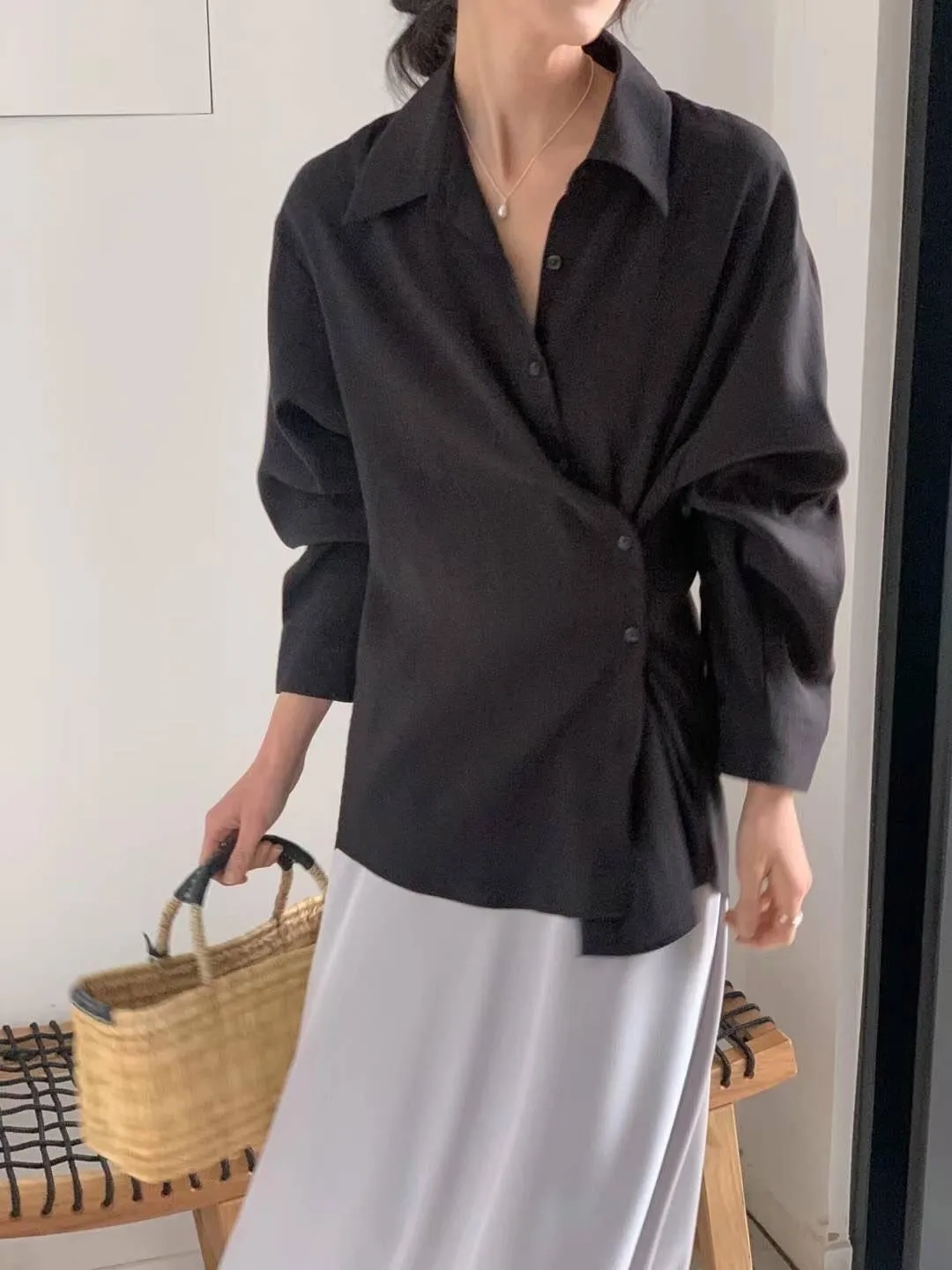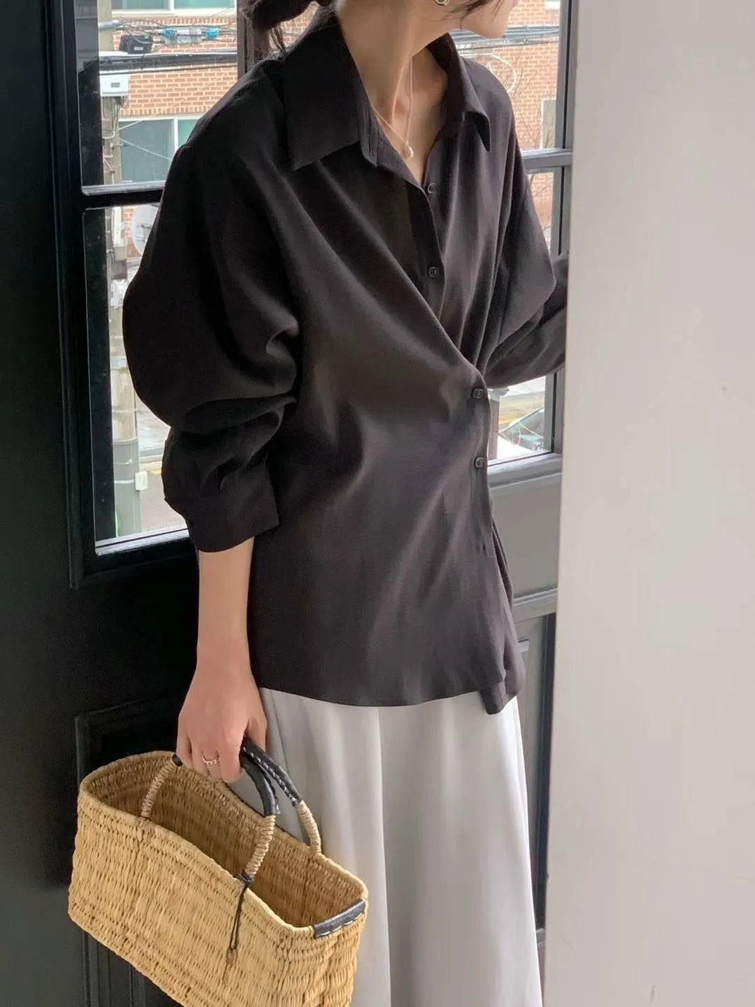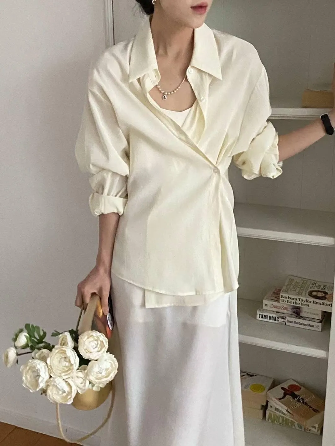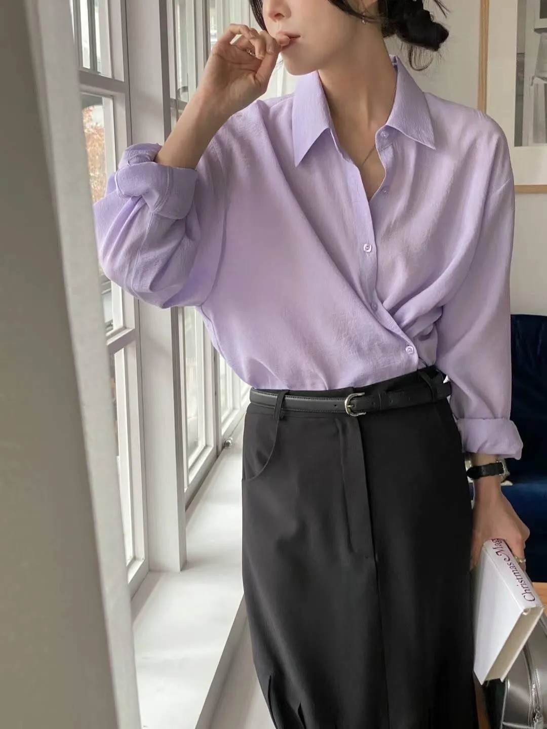 TA050春天調色盤側腰釦襯衫 米 粉 紫 藍 綠 咖 黑 灰 官網價$1120 線上價$1090