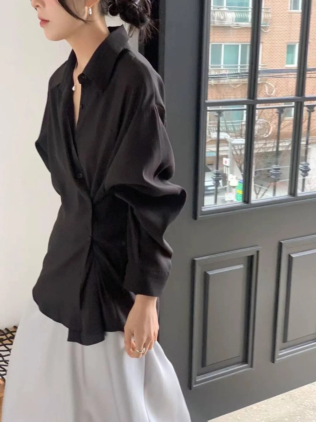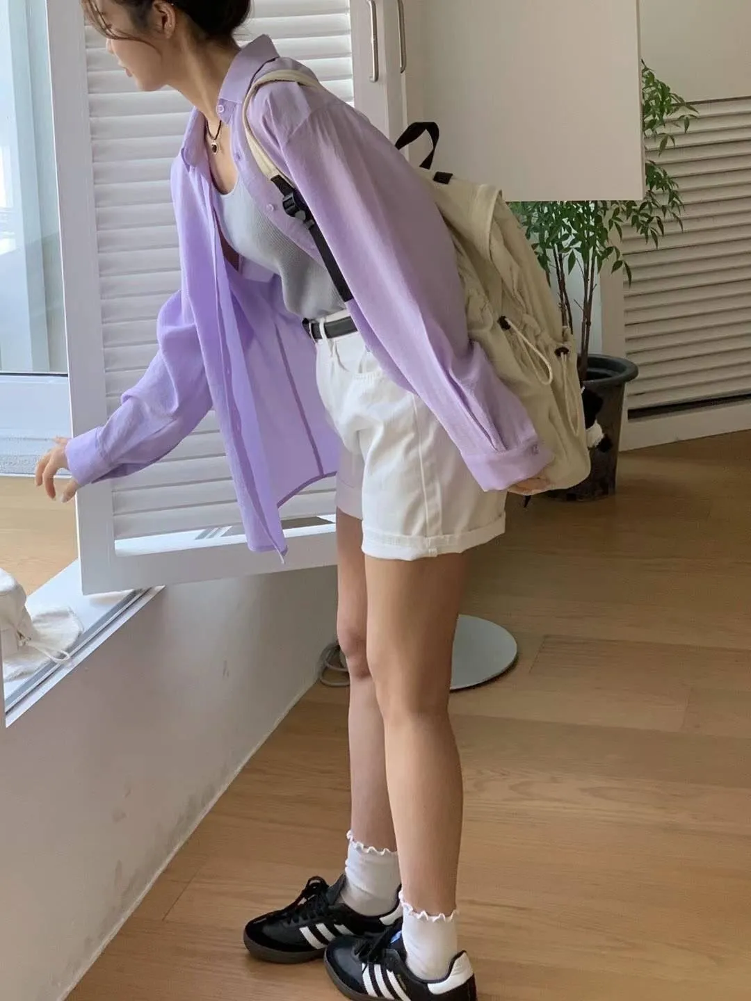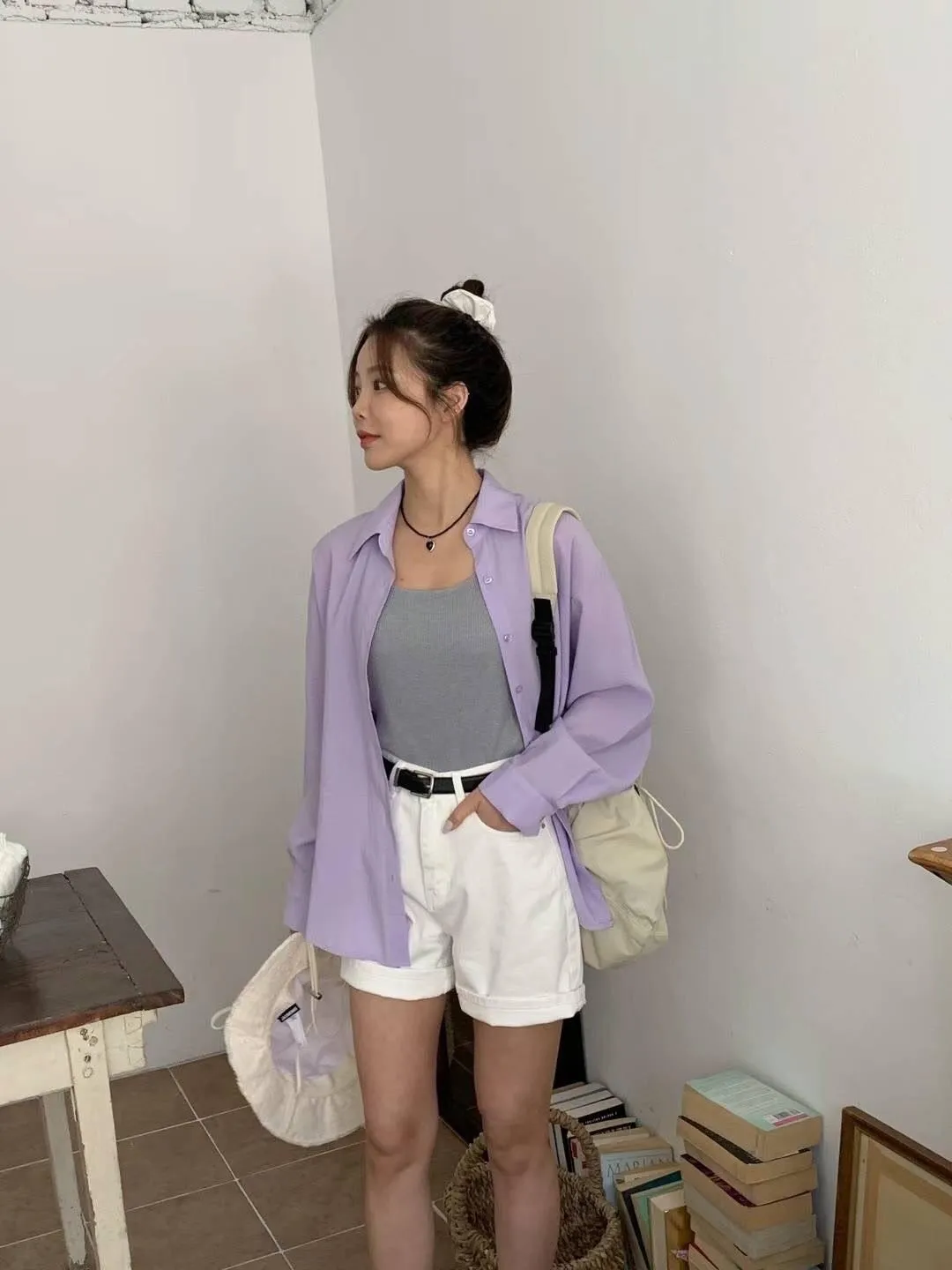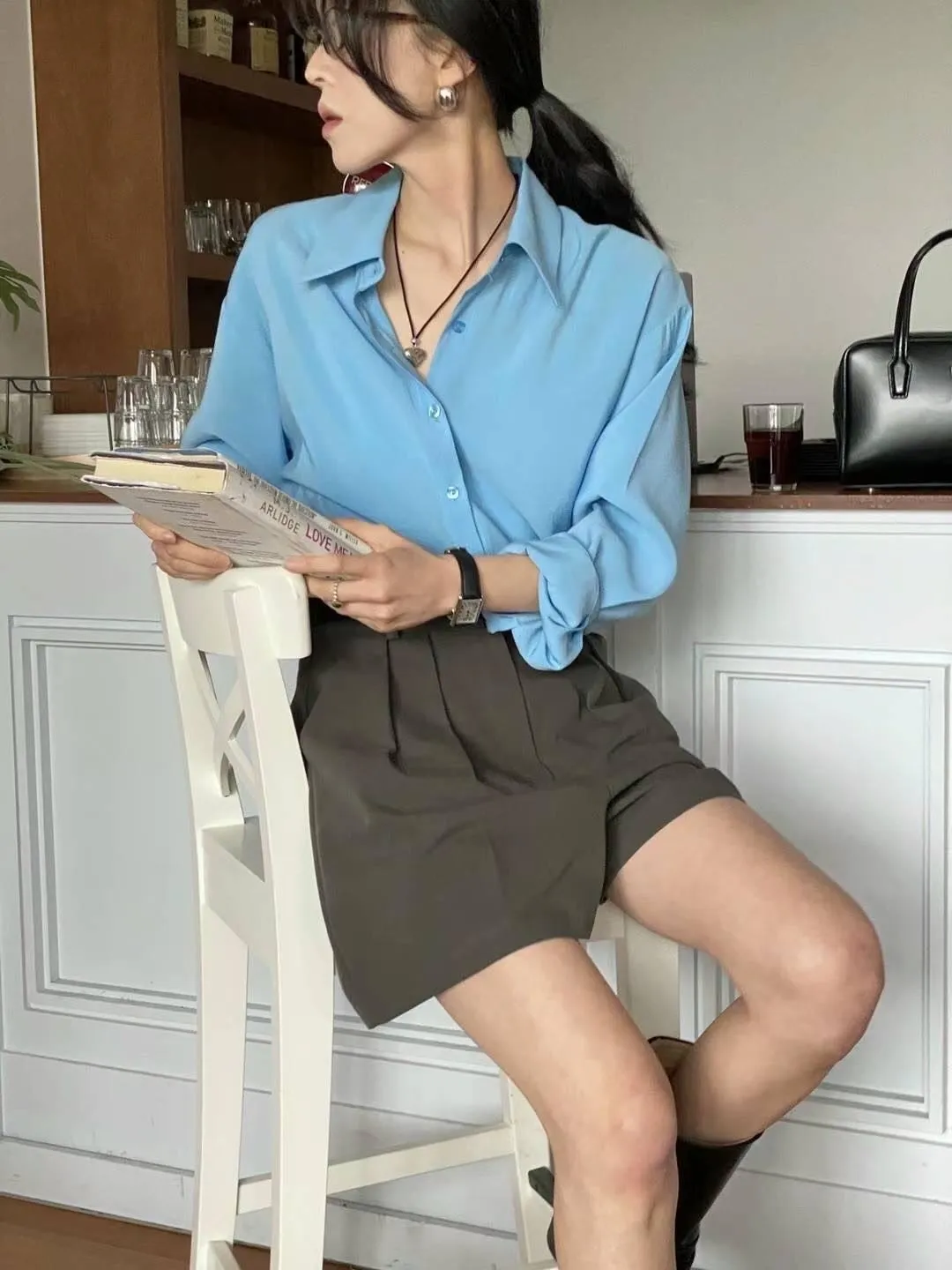TA050春天調色盤側腰釦襯衫 米 粉 紫 藍 綠 咖 黑 灰 官網價$1120 線上價$1090