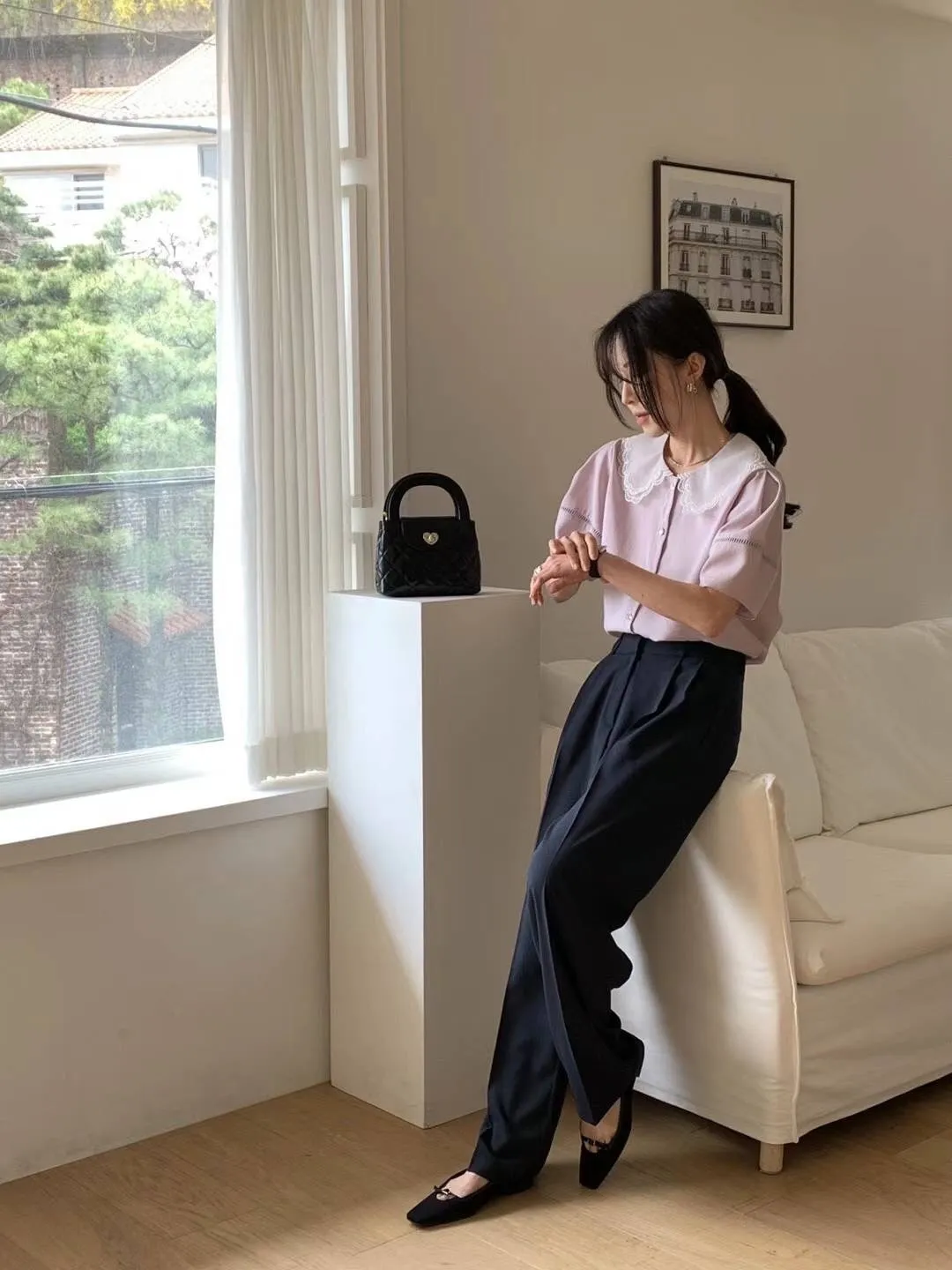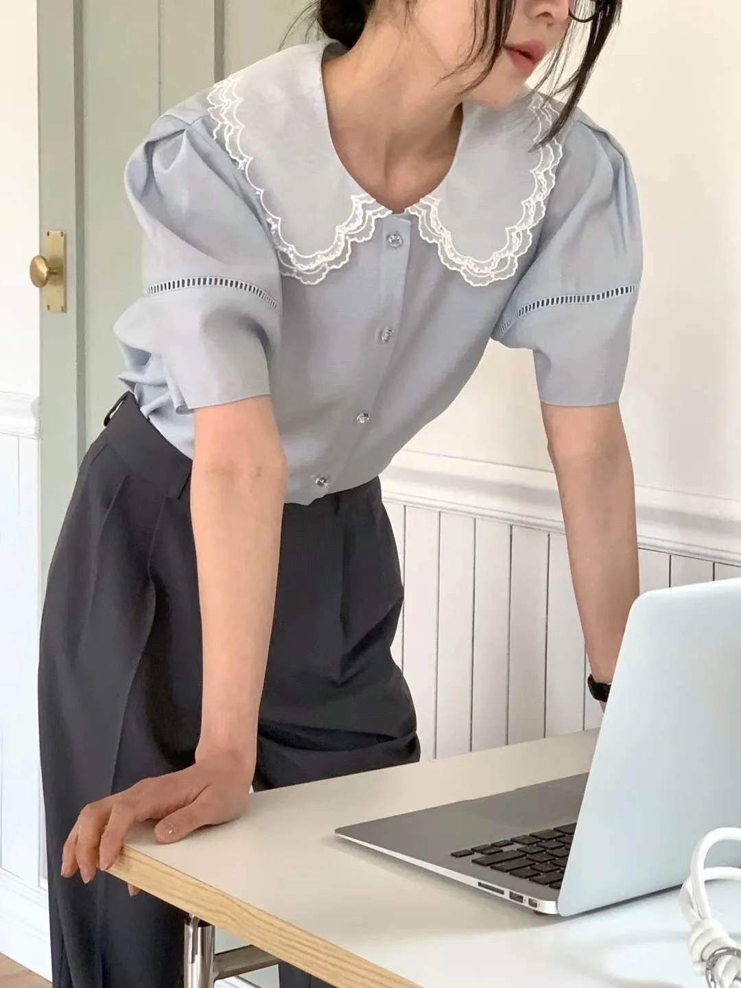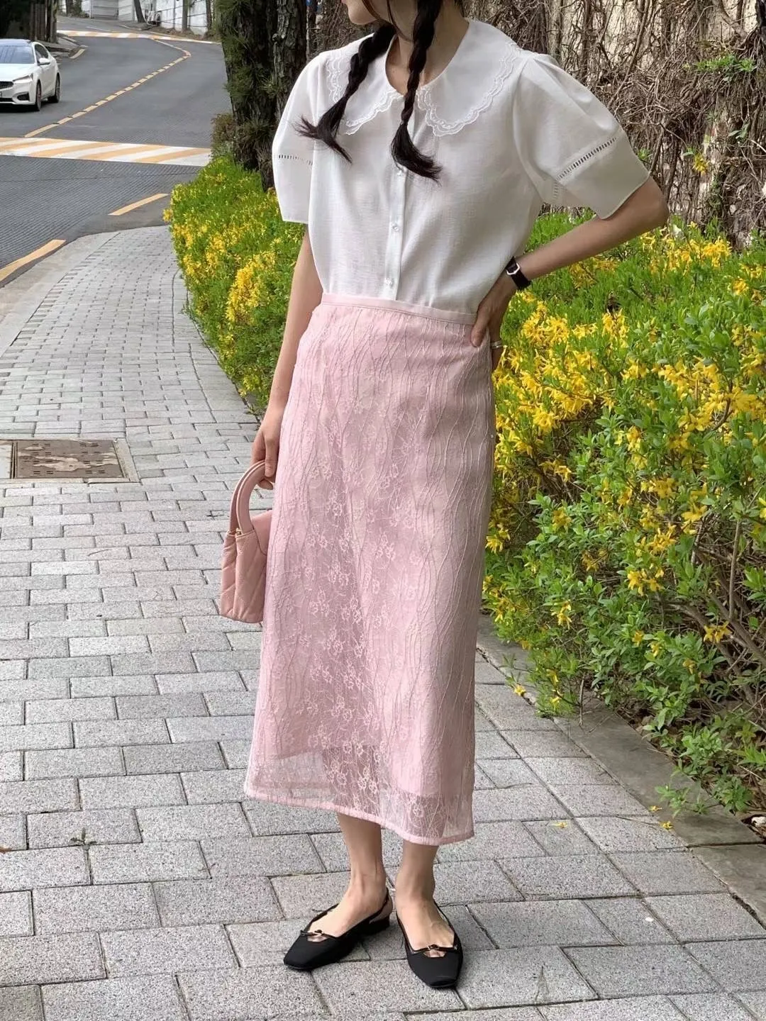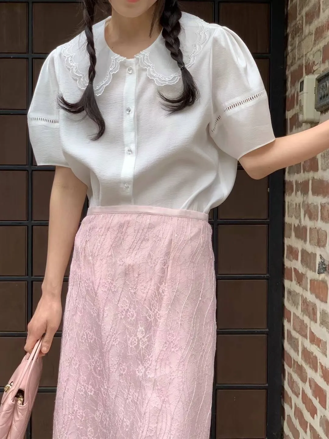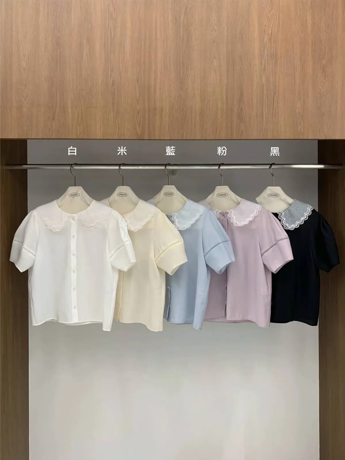 TA053天絲雙層透光領美衣 白 米 粉 黑 藍 官網價$1250 線上價$1220