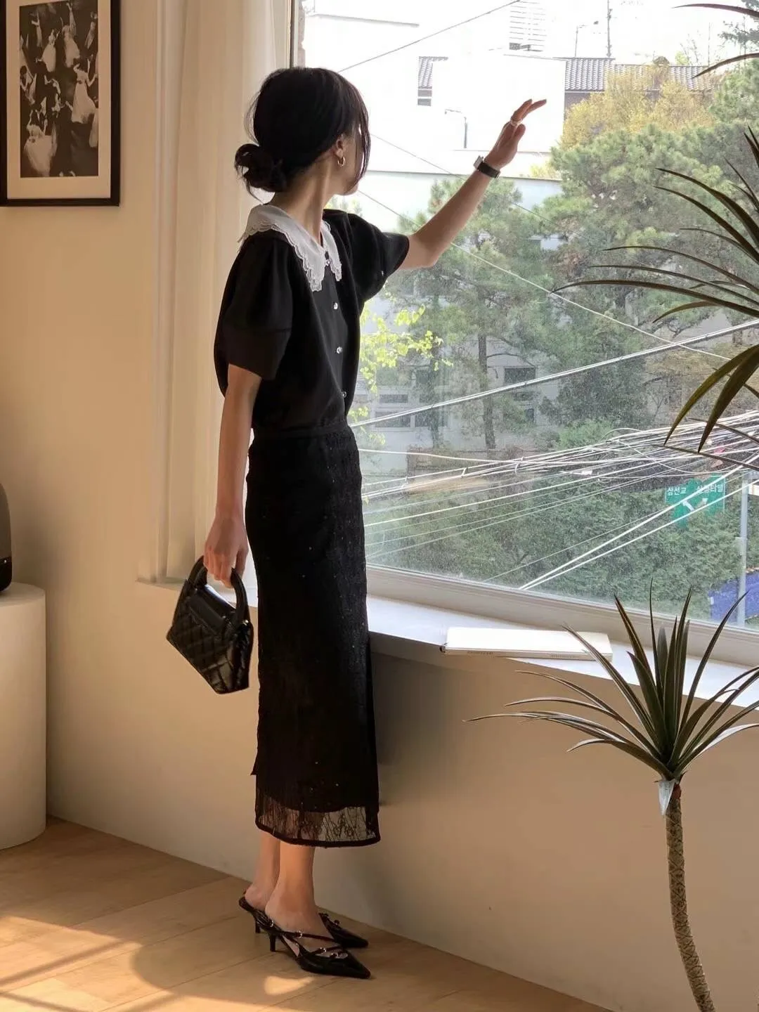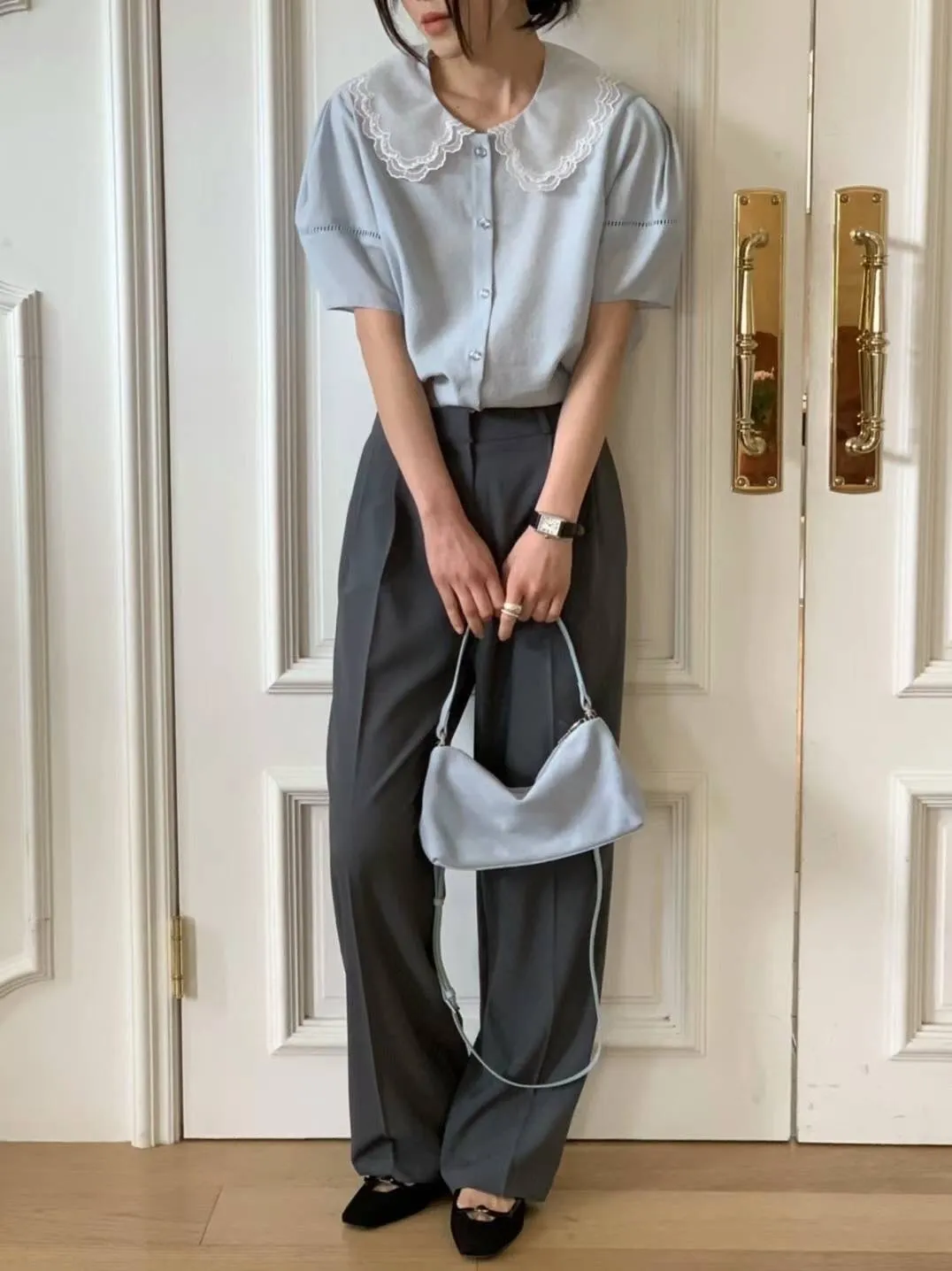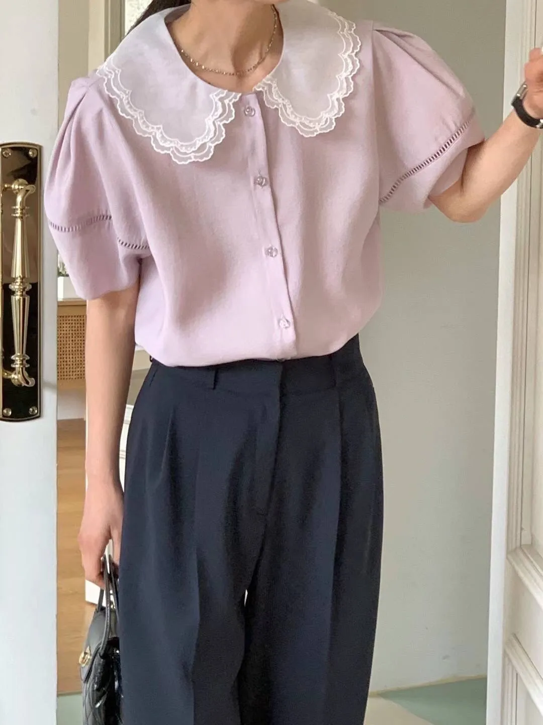 天絲+歐根紗雙層珍珠領 排釦穿脫透光冰釦 氣球手袖 敏肌略過 厚度1.2