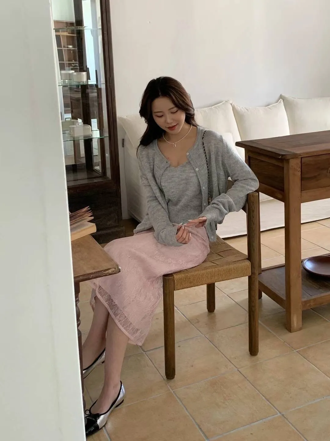 蕾絲 視覺高級感 拉鍊穿脫 有內裡 推米色跟粉色 春天顏色 後開叉