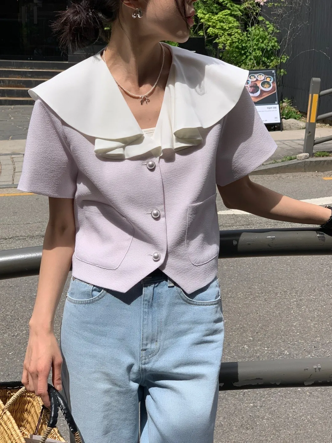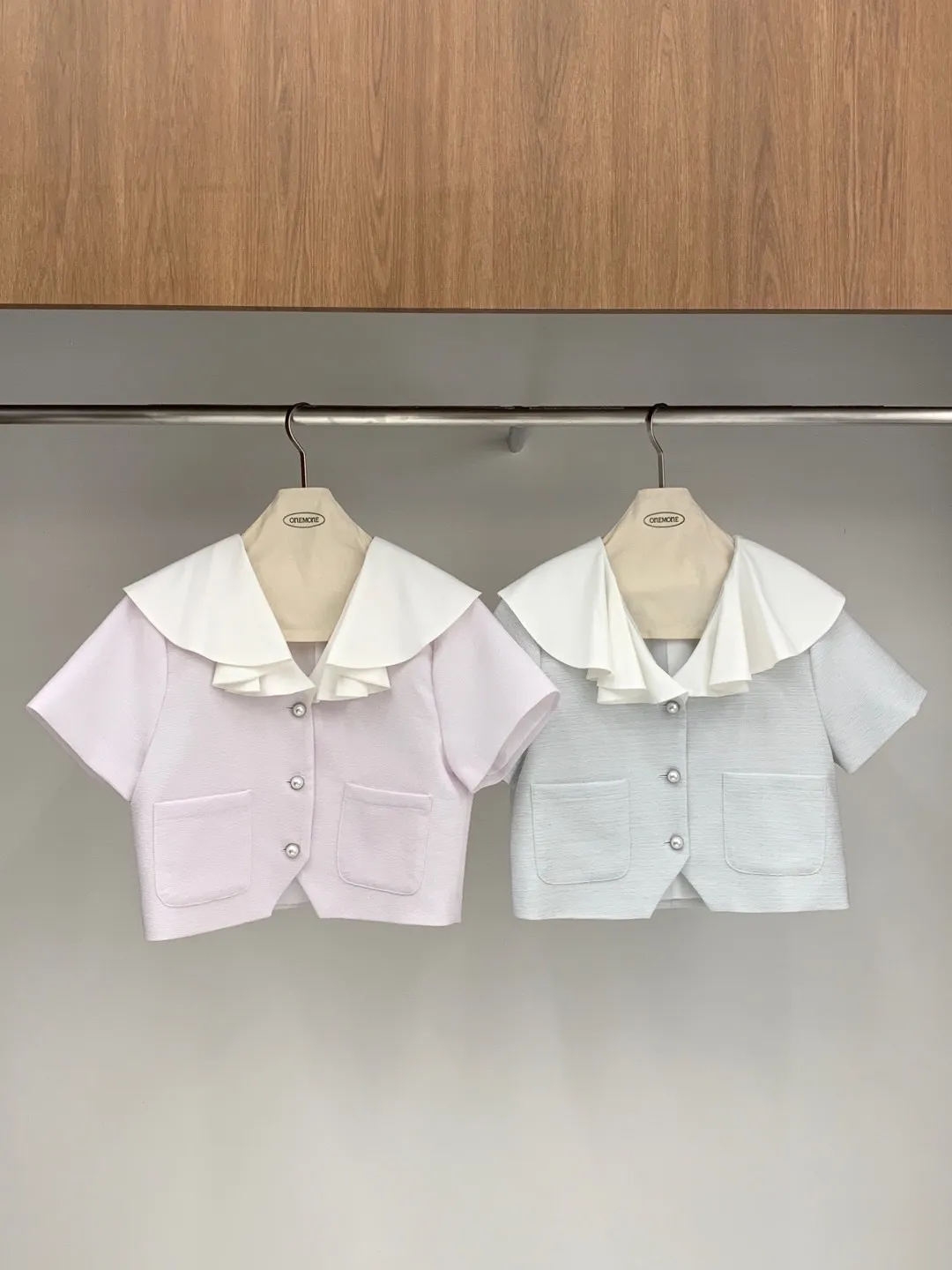 TA060新款天絲銀釦波浪翻領美衣 藍 粉 官網價$1490線上價$1460